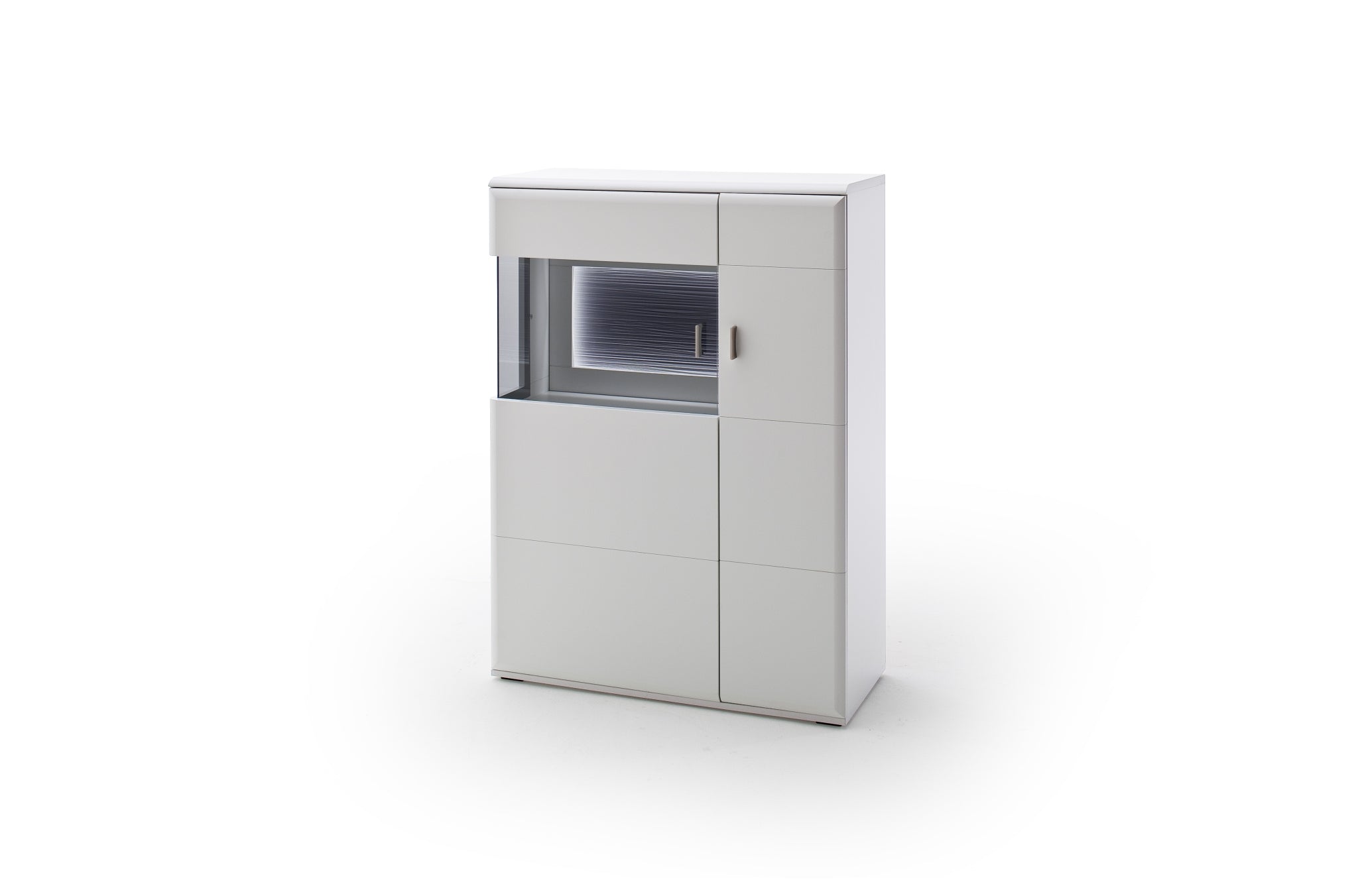 - Rückwand: sichtbar: anthrazit 3D geschroppt hinter Türen: weiß Dekor