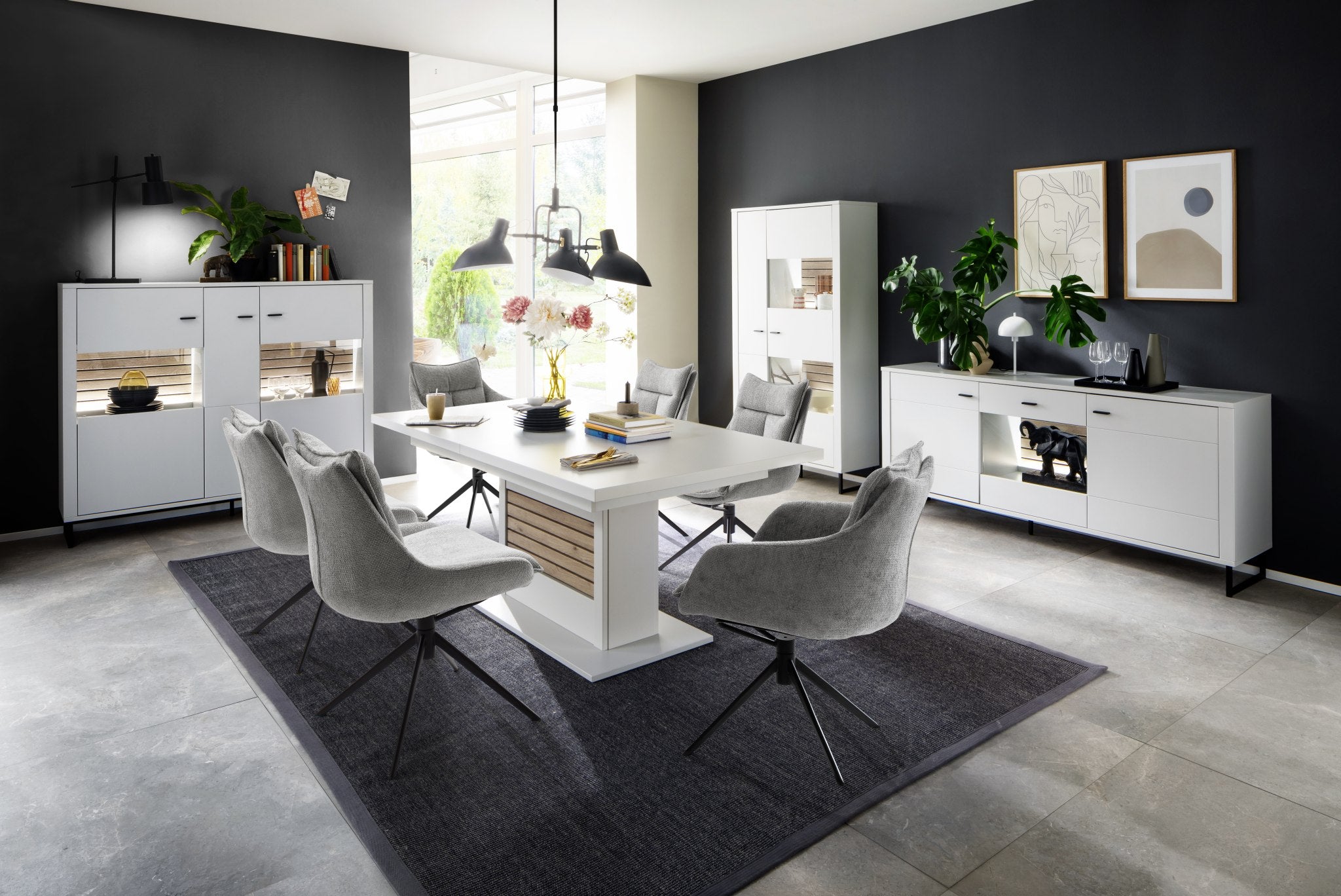 - Rückwand: hinter Türen und Schubkästen: weiß Dekor