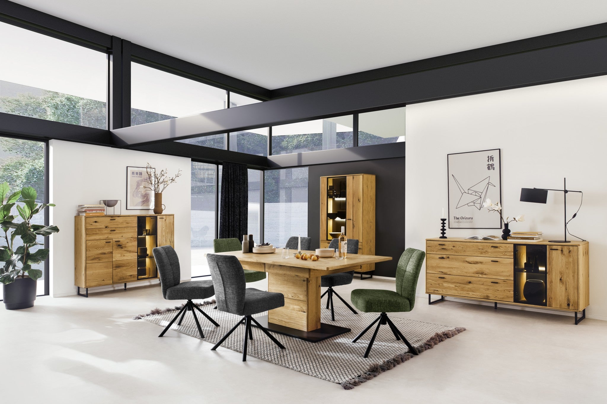 - Tischplatte: Ast-/ Balkeneiche furniert in Wildeiche geölt