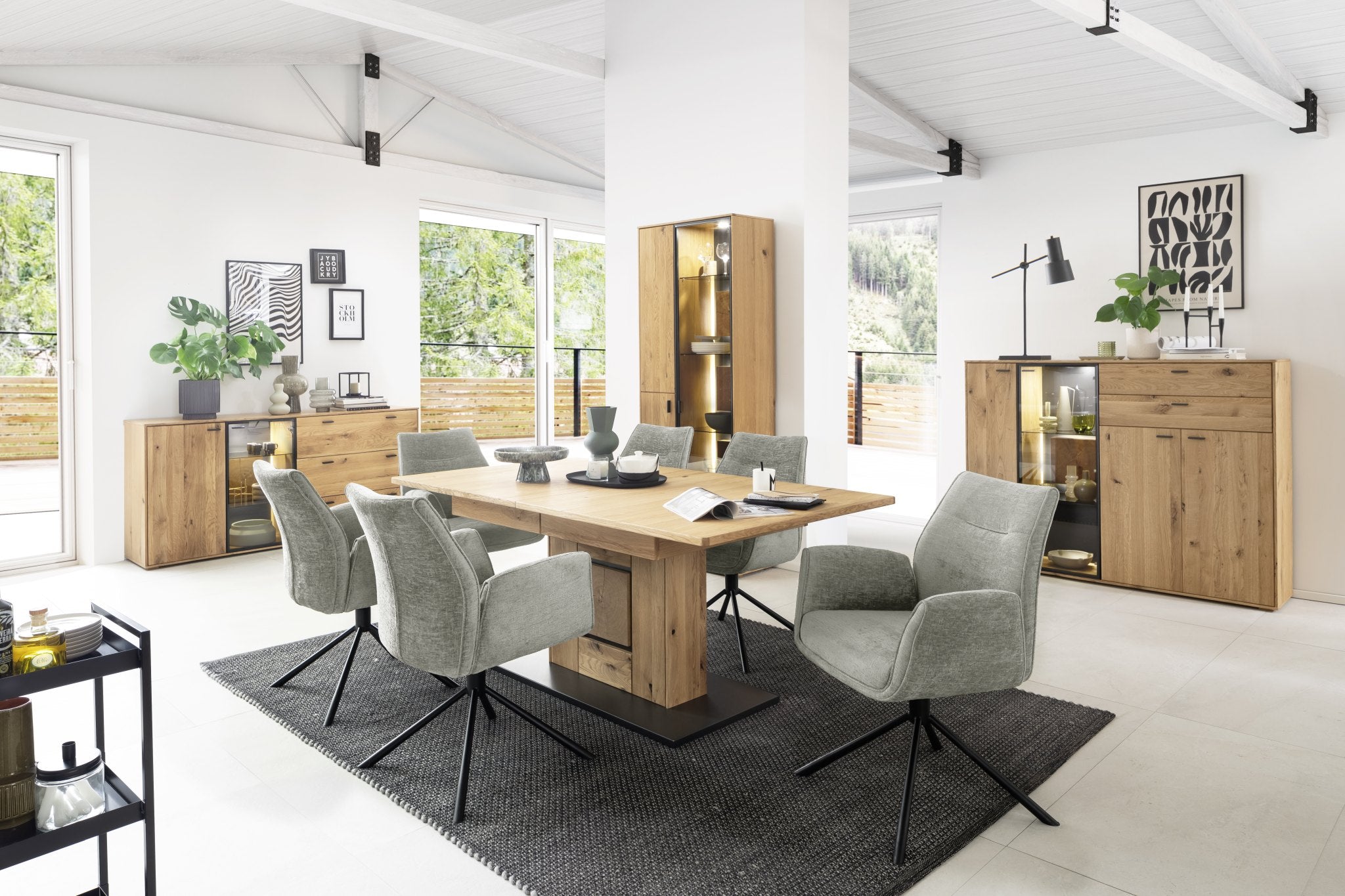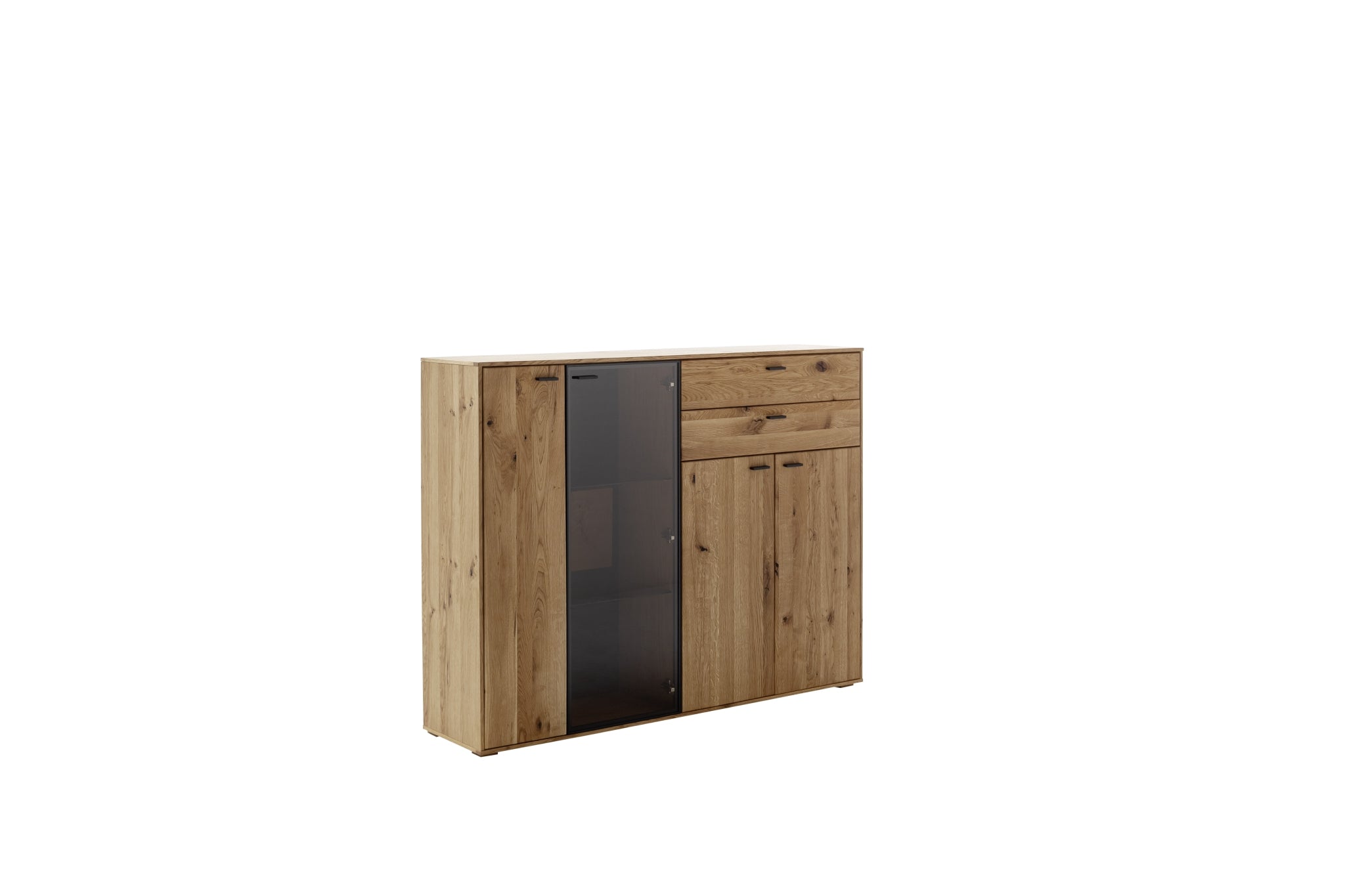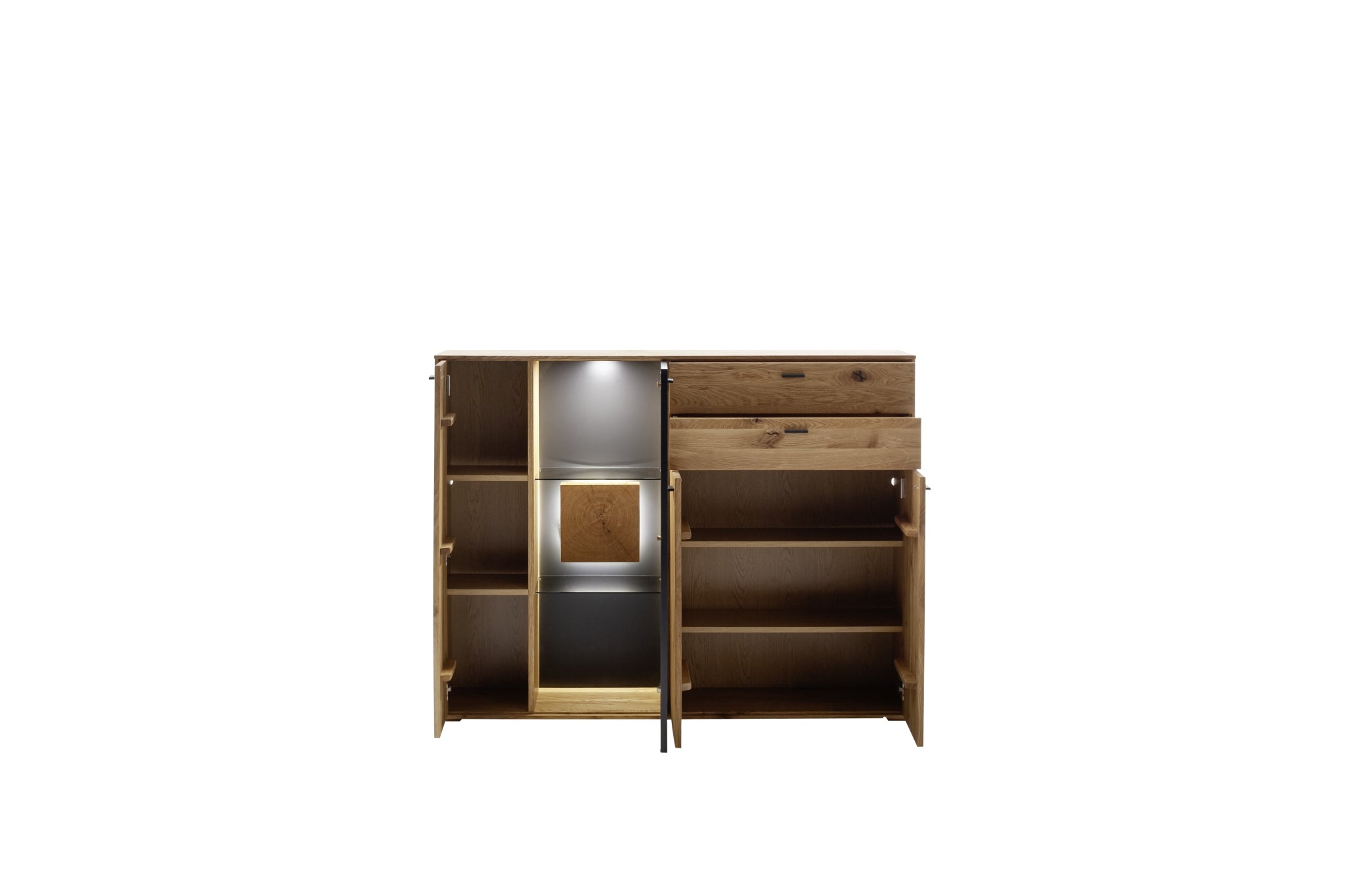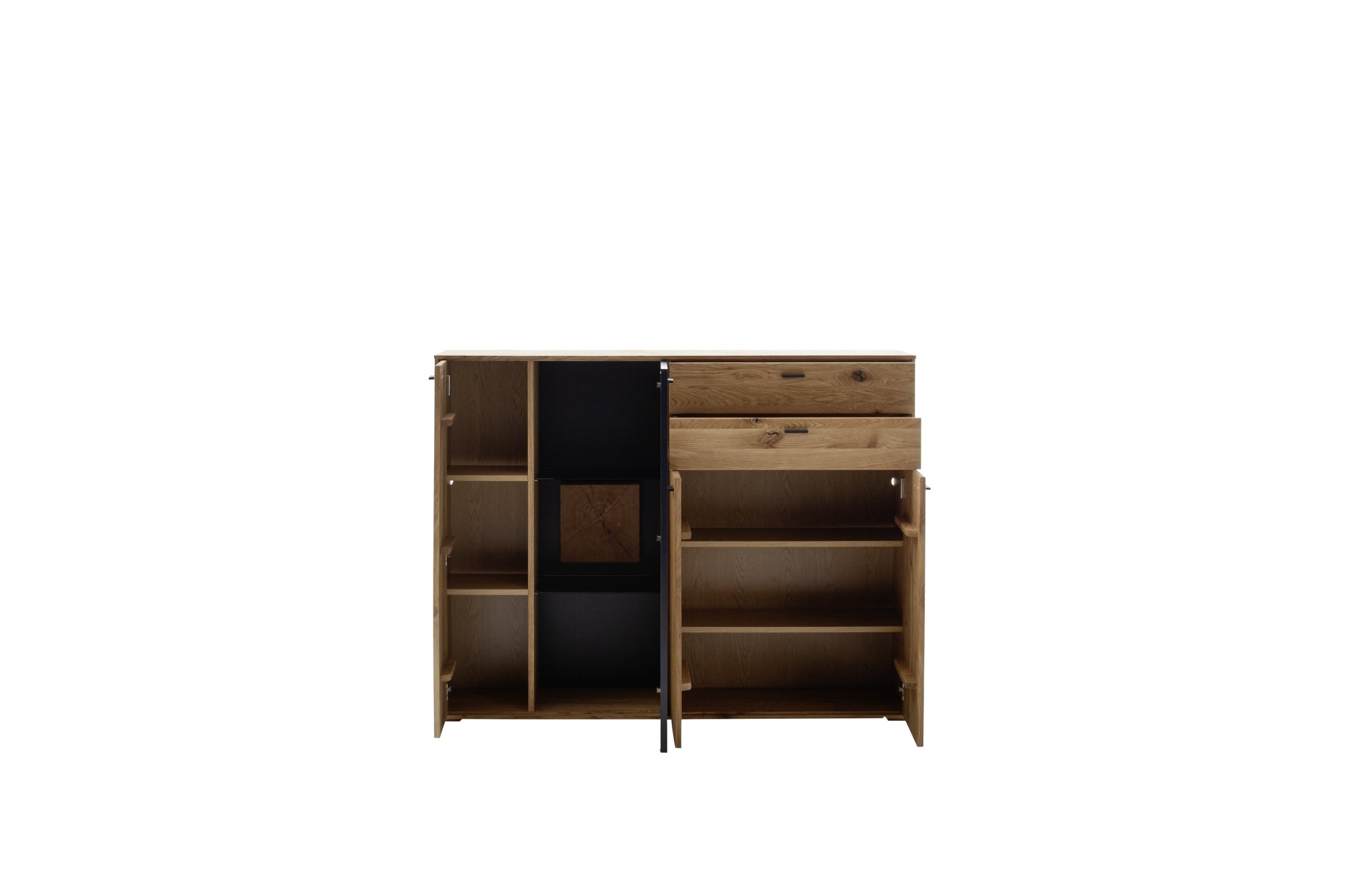 - Korpus: Ast-/ Balkeneiche furniert, Wildeiche geölt, innen Wildeiche Melamin Nachbildung