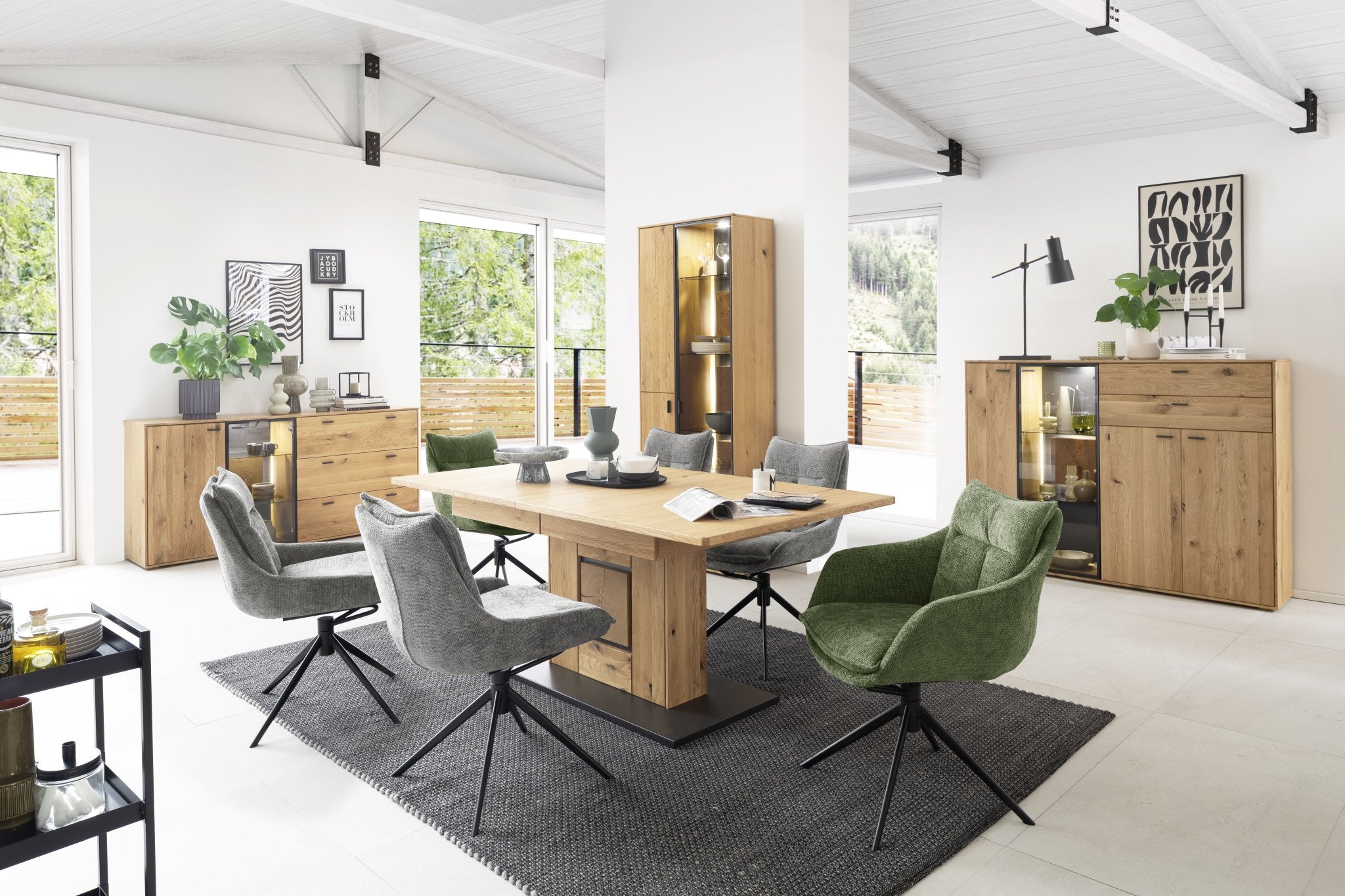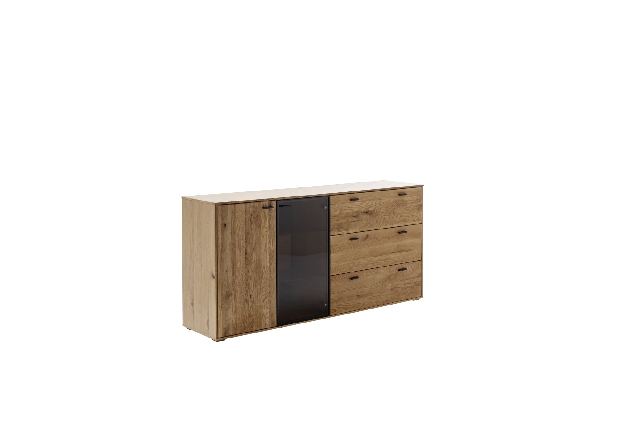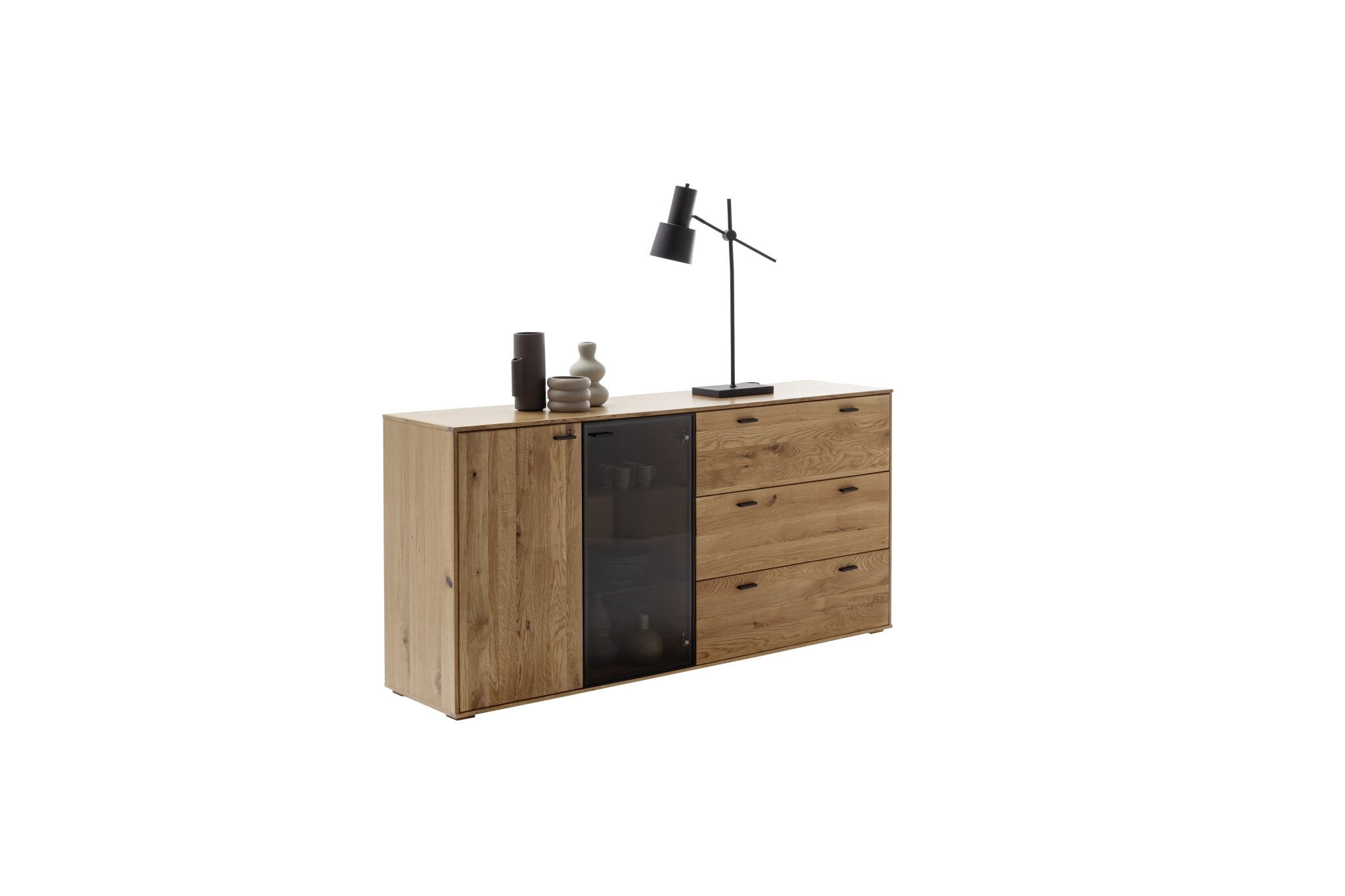 - Korpus: Ast-/ Balkeneiche furniert, Wildeiche geölt, innen Wildeiche Melamin Nachbildung