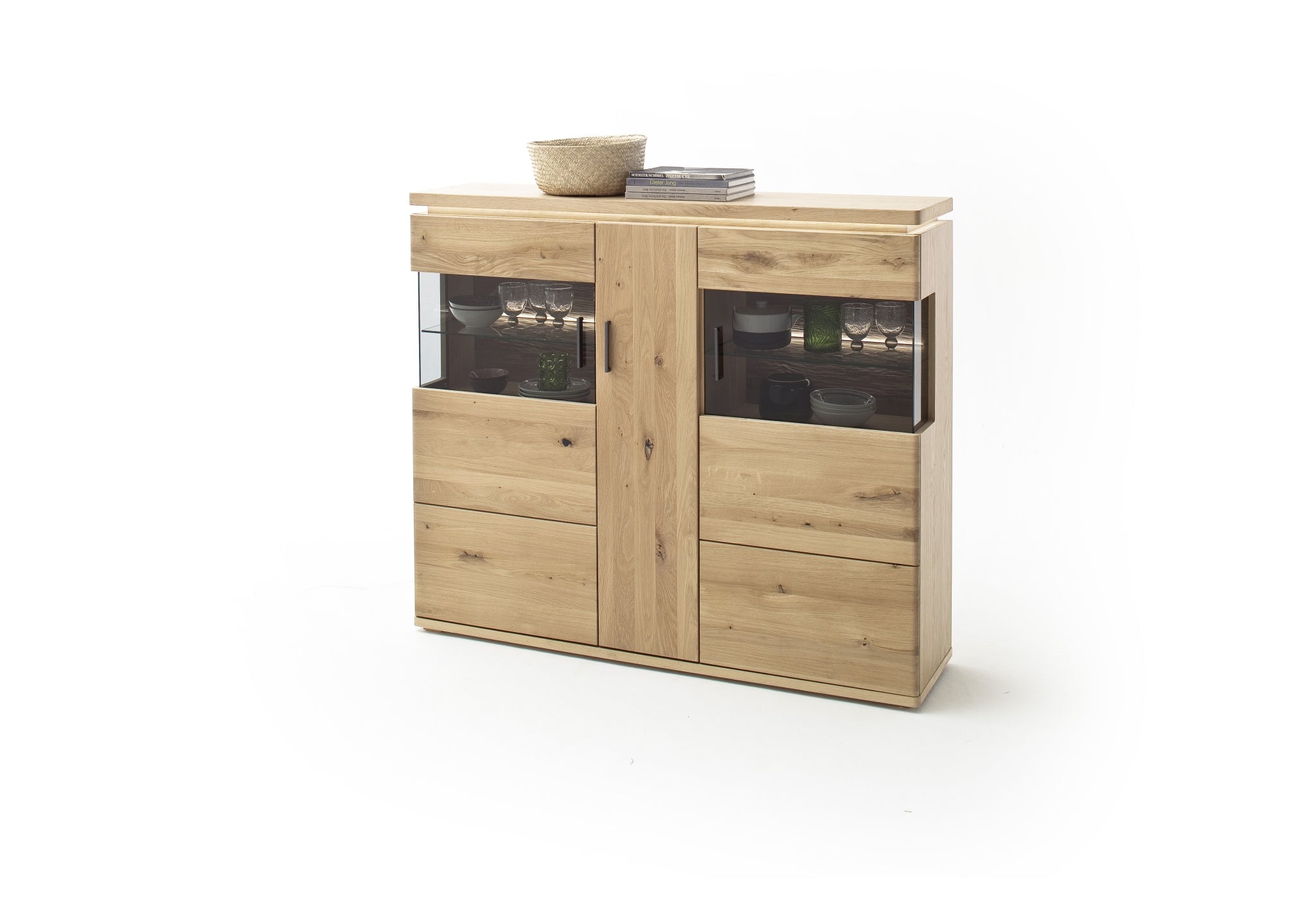 - Rückwand: sichtbar: 3D Balkeneiche Nachbildung geschroppt hinter Türen & Schubkästen: Balkeneiche Nachbildung