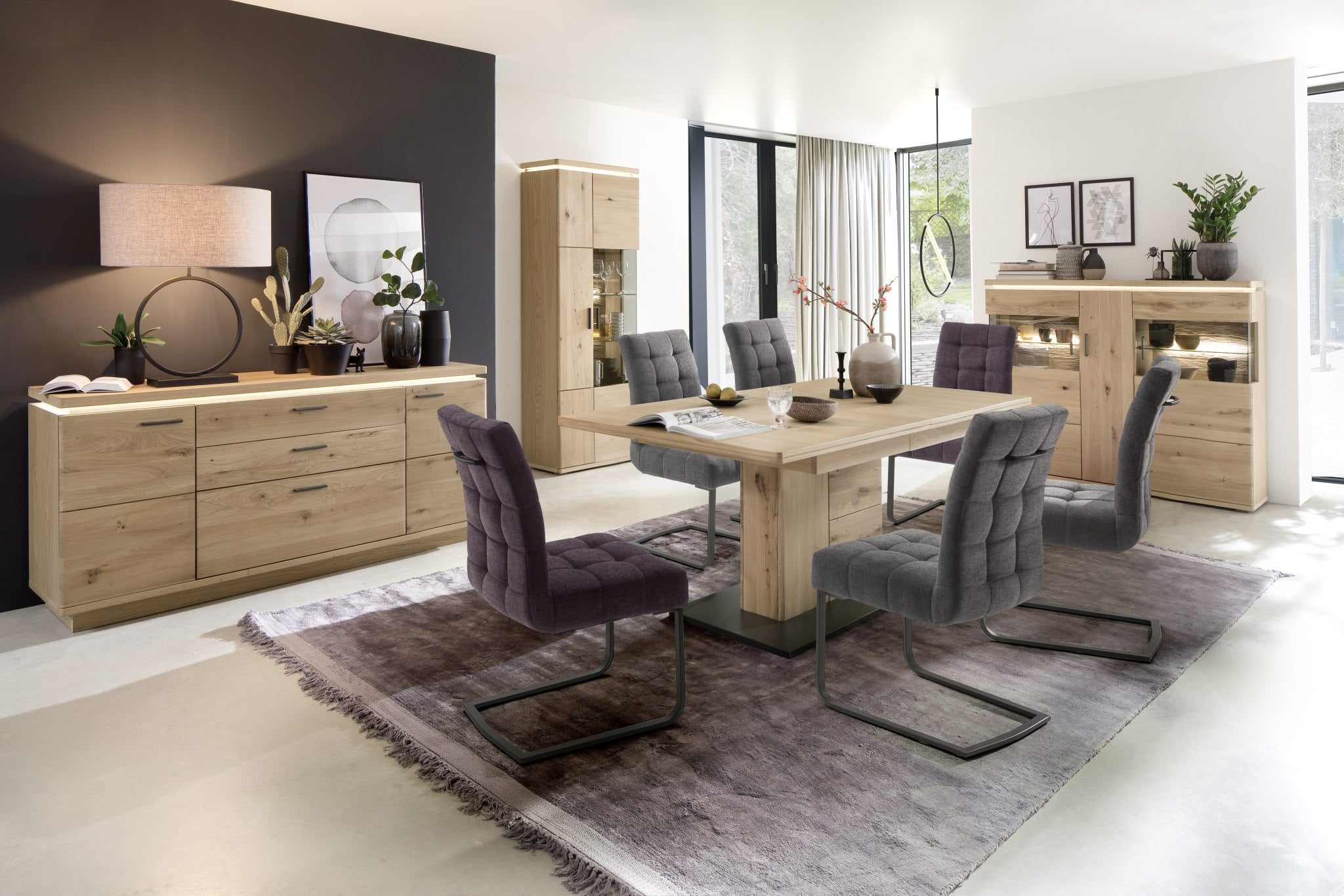 - Rückwand: sichtbar: 3D Balkeneiche Nachbildung geschroppt hinter Türen & Schubkästen: Balkeneiche Nachbildung