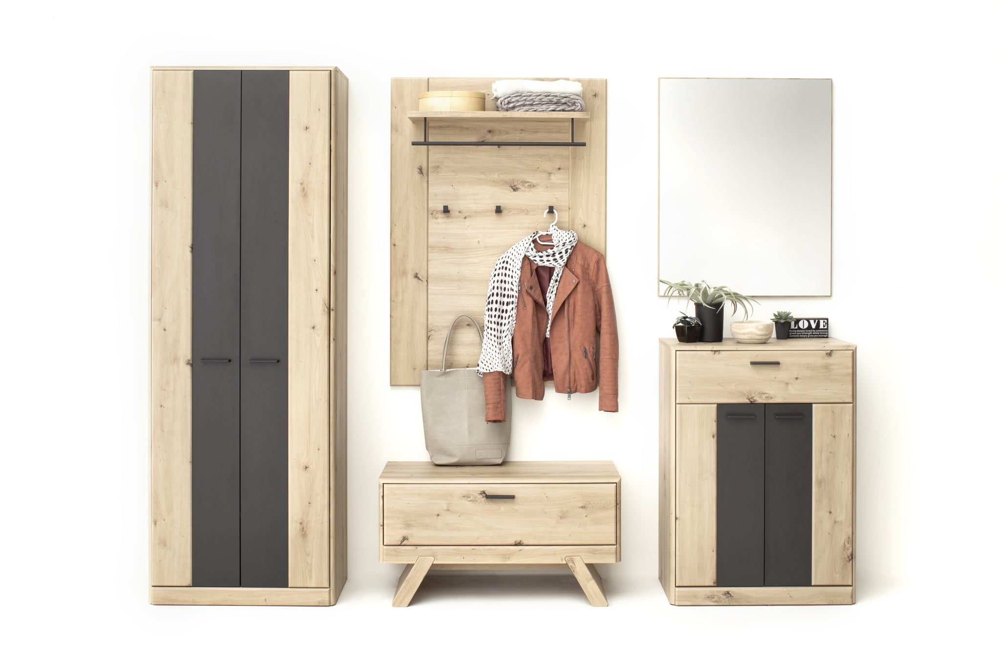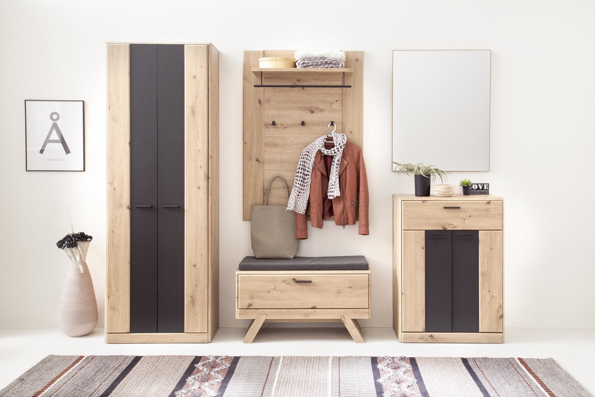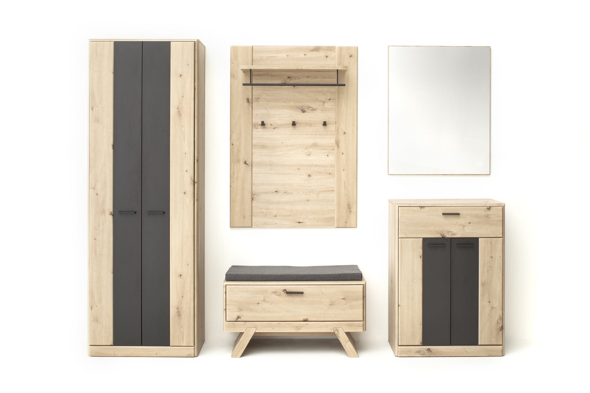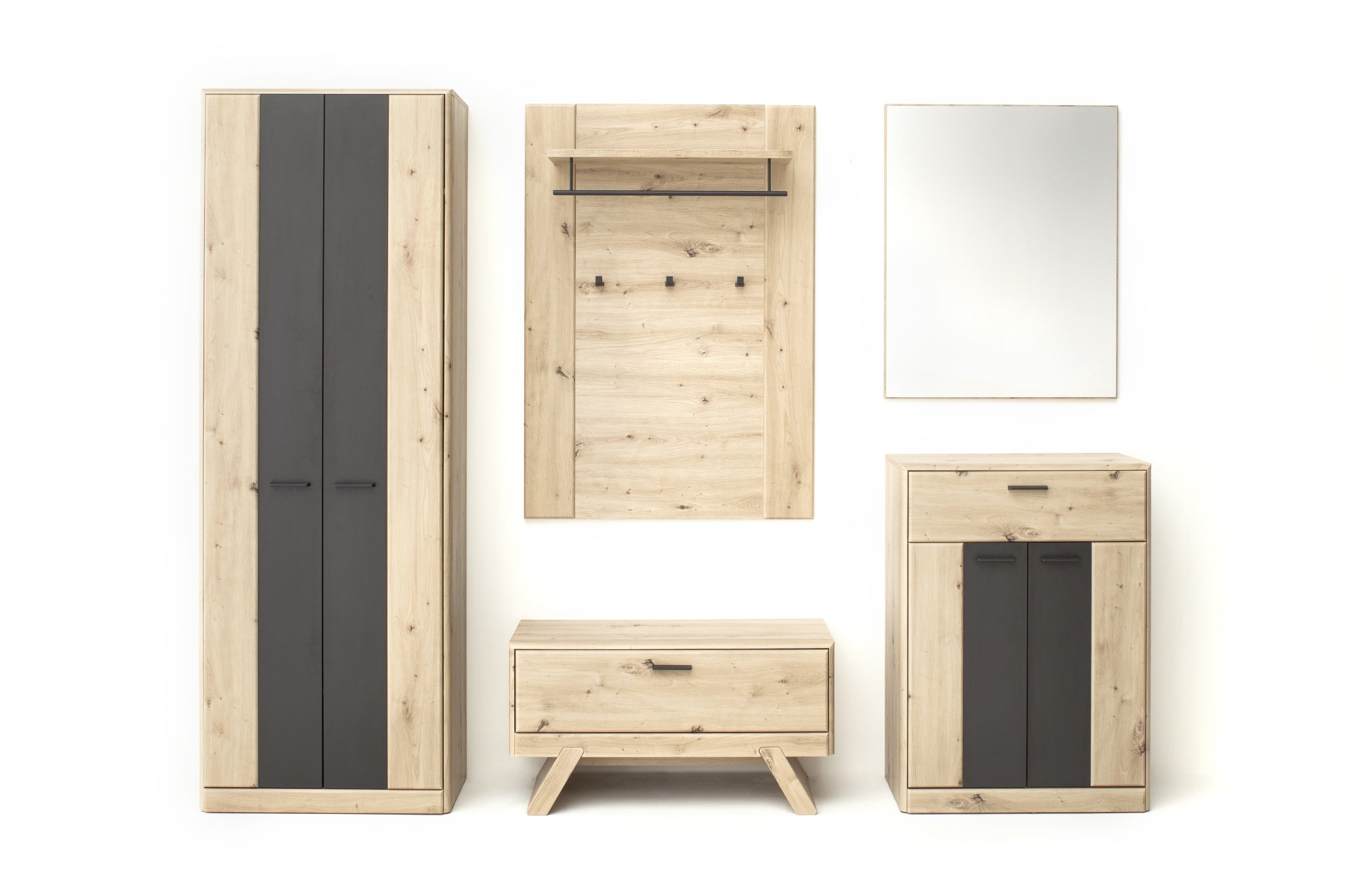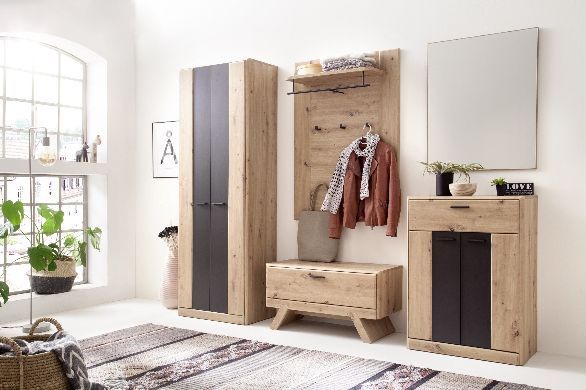 hinter Türen & Schubkästen: Balkeneiche Nachbildung - Griffe: Metall schwarz