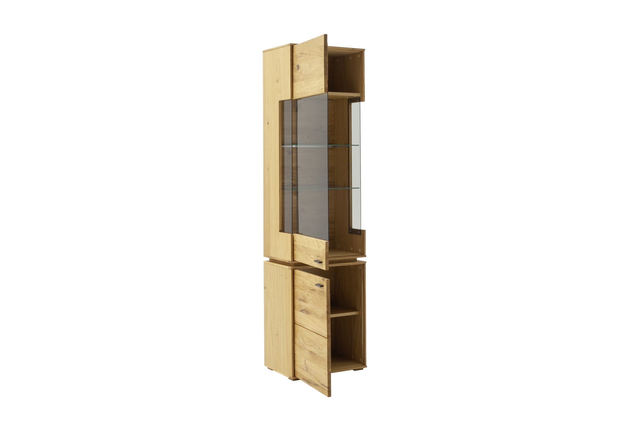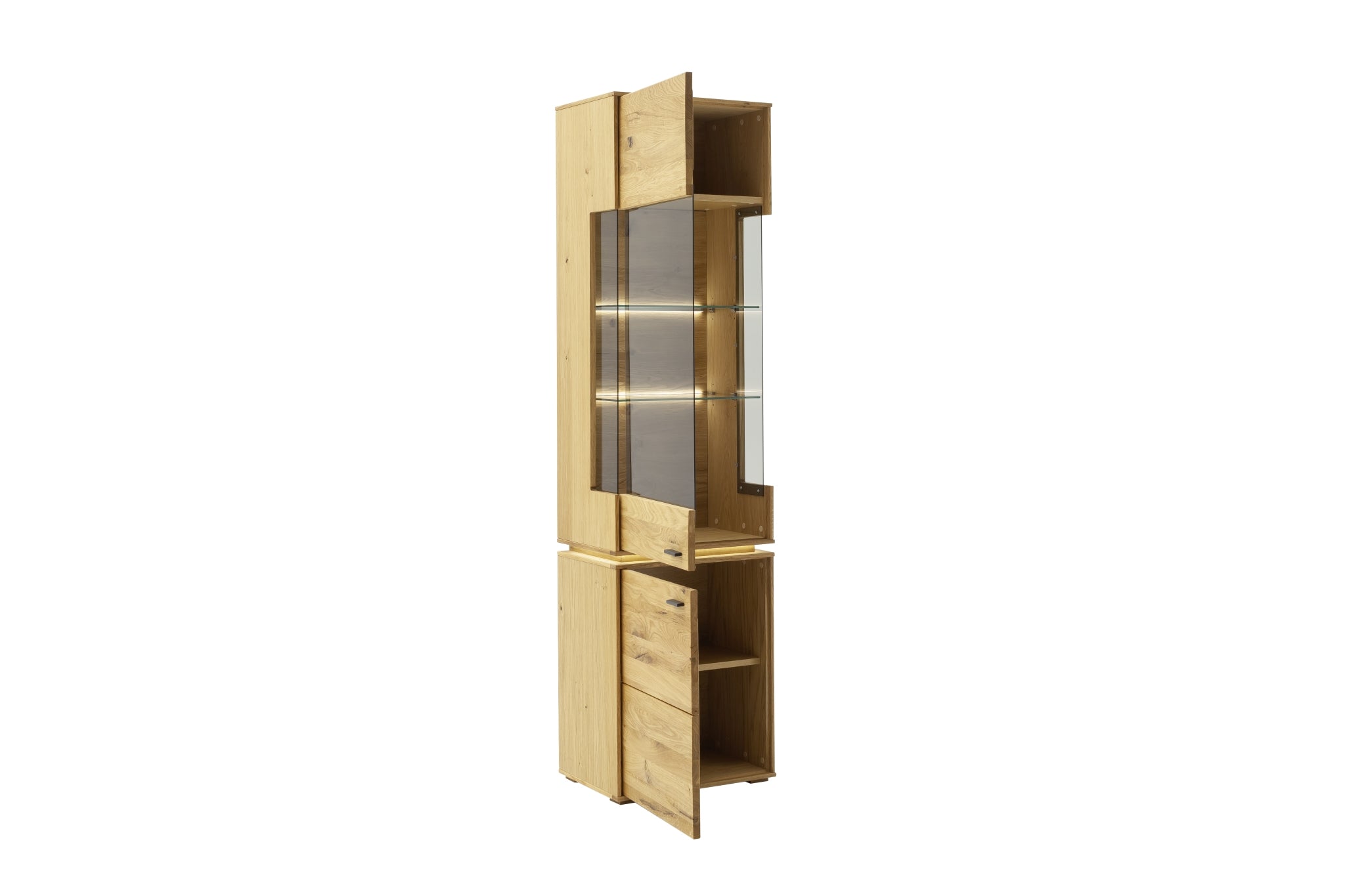 - Rückwand: sichtbar: Asteiche furniert, Oberfläche geölt hinter Türen & Schubkästen: Wildeiche Nachbildung