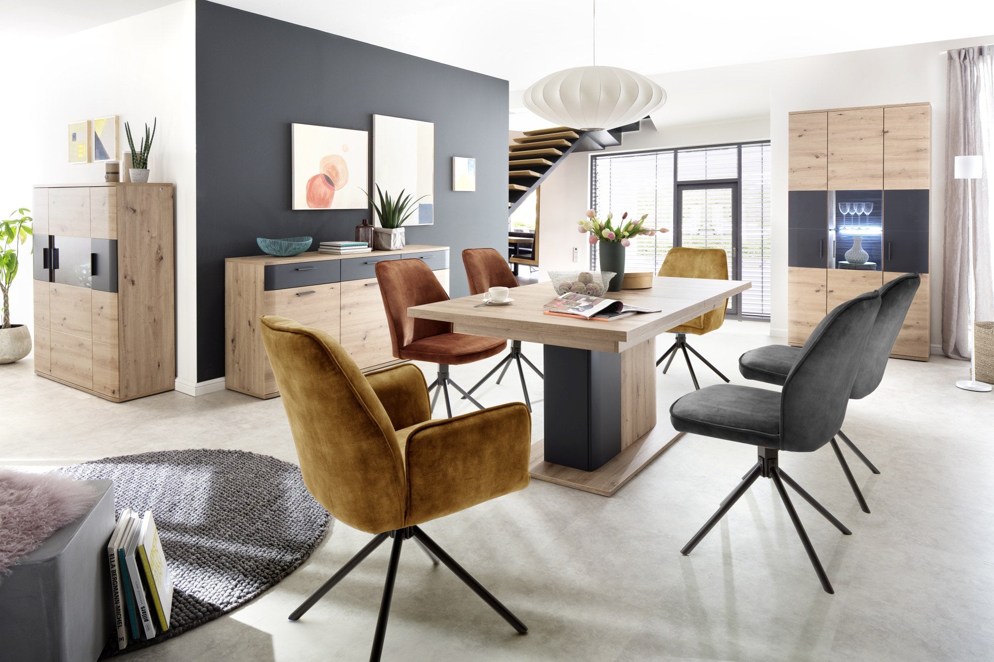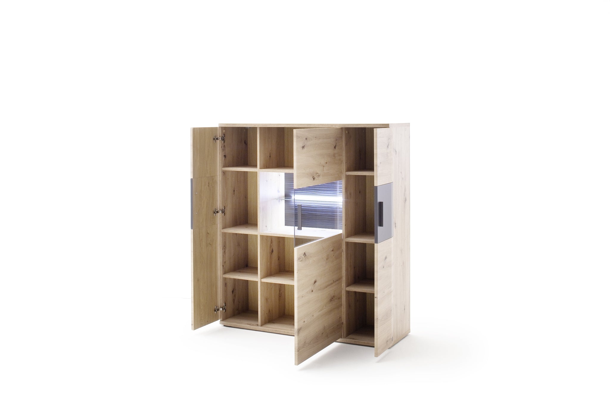 - Rückwand: sichtbar: 3D anthrazit geschroppt hinter Türen: Eiche Nachbildung