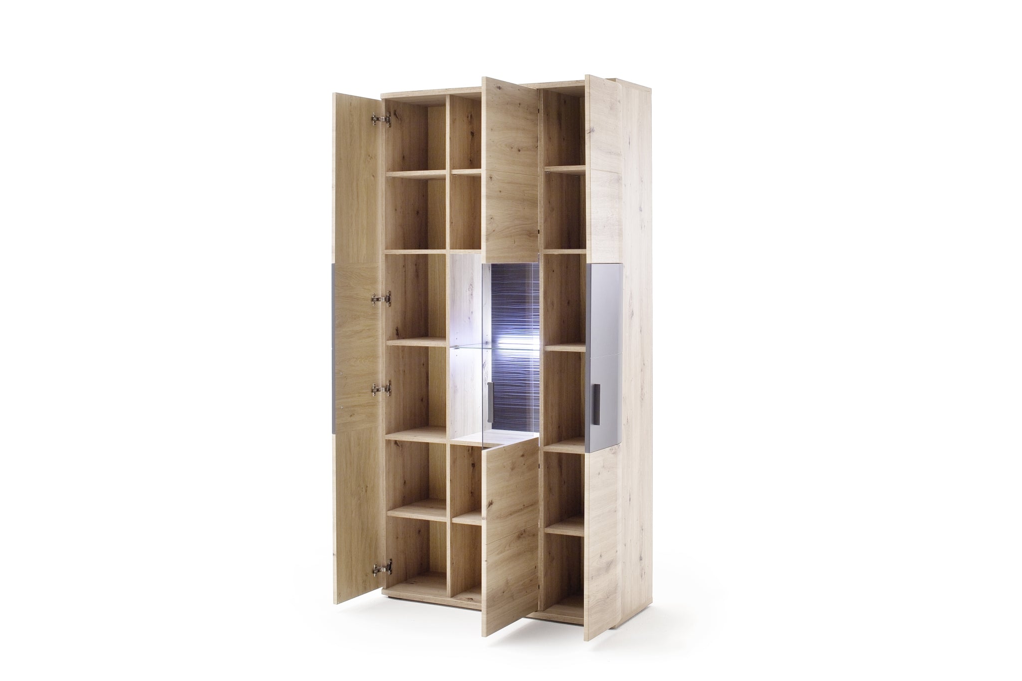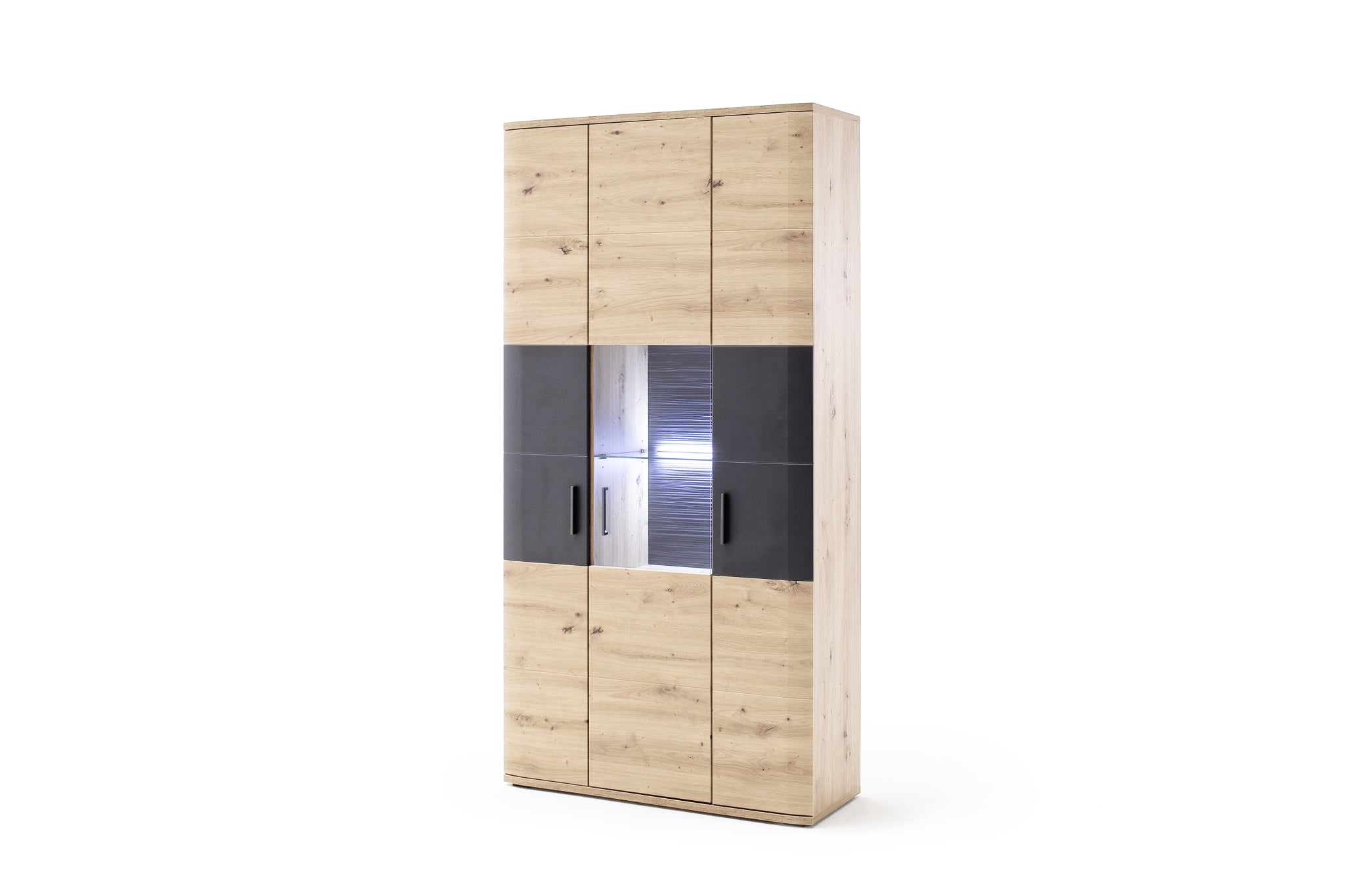 - Rückwand: sichtbar: 3D anthrazit geschroppt hinter Türen: Eiche Nachbildung