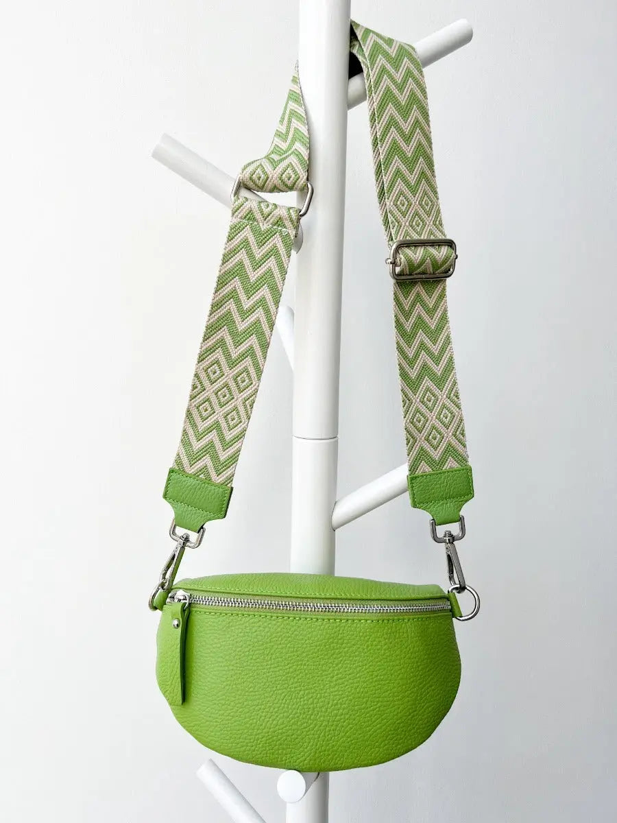 Stylisch & praktisch unterwegs. Die Crossbody Bag wird lässig am Körper getragen und somit sind beide Hände frei für die wichtigen Dinge des Lebens. Und wenn es mal bunter sein soll, sind viele passende Wechselgurte separat erhältlich. Auf den Fotos ist die Tasche in S abgebildet. Maße & Material: Material Tasche & Riemen: Leder Farbe Tasche: lila mit silbernen Details Strapazierfähige Metallkarabiner in silber Lederriemen längenverstellbar: 70 – 130 cm Maße Tasche S: 23 cm x 14 cm x 7 cm Maße Tasche M: 26 cm x 16 cm x 8 cm Lieferumfang: Tasche mit Lederriemen ohne Wechselgurt