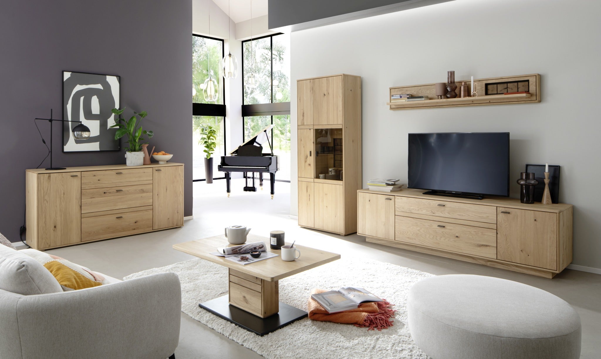 - Korpus: Ast-/ Balkeneiche furniert in Kristalleiche geölt