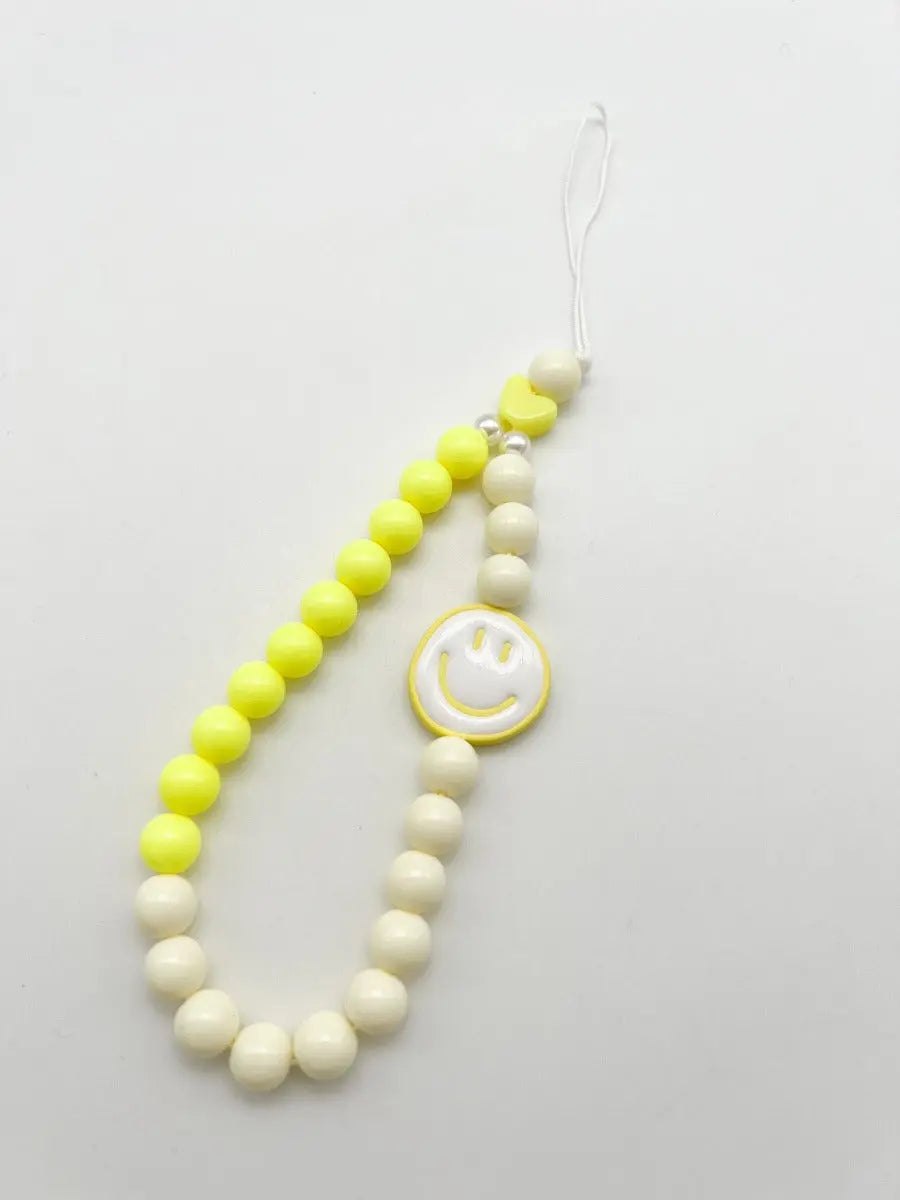 Die MOU MOU MUNICH Handykettchen sind kleine nette Accessoires um Dein Handy zu stylen, aber auch super praktisch um Dein Handy immer im Griff zu haben. Hänge dafür einfach die Schlaufe um Dein Handgelenk. Die bunten Kettchen mit einer SMILEY Perle machen einfach gute Laune und können auch an den Schlüssel oder die Tasche angehängt werden. Bitte achte darauf, dass Deine Handyhülle eine Aussparung hat. Bei Handyhüllen mit Ösen kann man die Kettchen auch an die Ösen hängen. Maße & Material: Farbe: gelb beige Kette aus gefärbten Kunststoffperlen mit Nylon Schlaufe Länge: ca. 20 cm inkl. Schlaufe Durchmesser Perlen: ca. 10mm Lieferumfang: Handyanhänger ohne Hülle