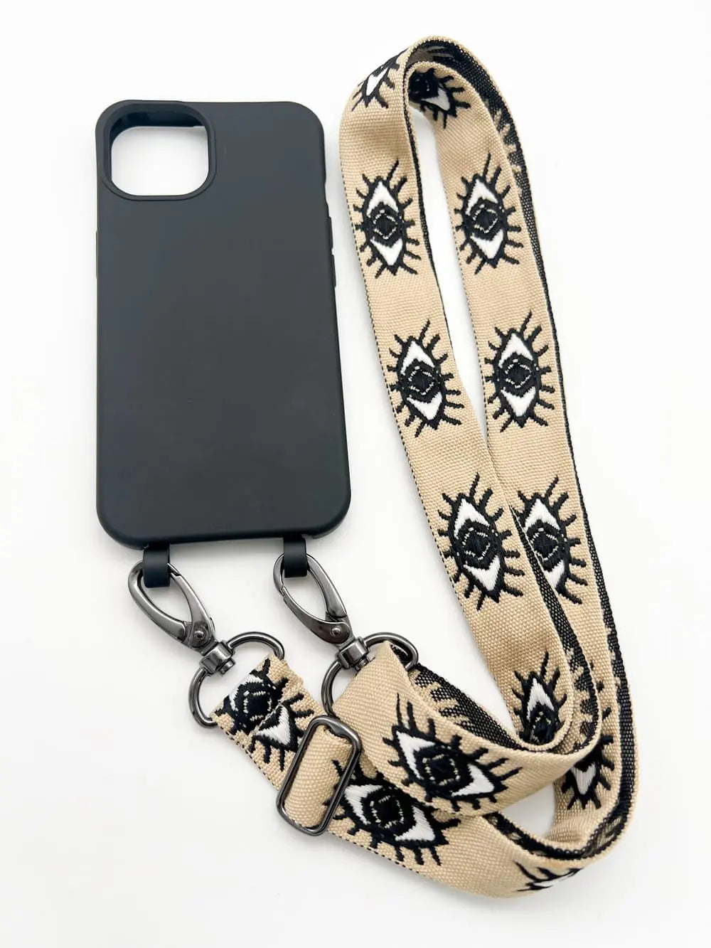 MOU MOU MUNICH macht Schluss mit dem Einheitslook der Handyketten!Das handmade MOU MOU MUNICH EYES Handyband verleiht Deinem Look im Handumdrehen das gewisse Etwas. Hänge einfach Deine eigene Handyhülle in die Karabiner oder entdecke unsere modularen 2in1 Hüllen. FREIE HÄNDE und Dein Handy ist dennoch stets griffbereit. HANDMADE & LÄNGENVERSTELLBARE Gurte, die von uns aus hochwertigen Bändern in München genäht werden. BAND AUSTAUSCHBAR & FLEXIBEL IN DER LÄNGE Dank der Karabiner am Band kannst Du es einfach in jede Handyhülle einsetzen. Band aus hochwertigem gewebtem Material Strapazierfähige Metallkarabiner Länge (verstellbar): 77 cm – 143 cm Breite: 2,5 cm Lieferumfang: Band mit Karabinern