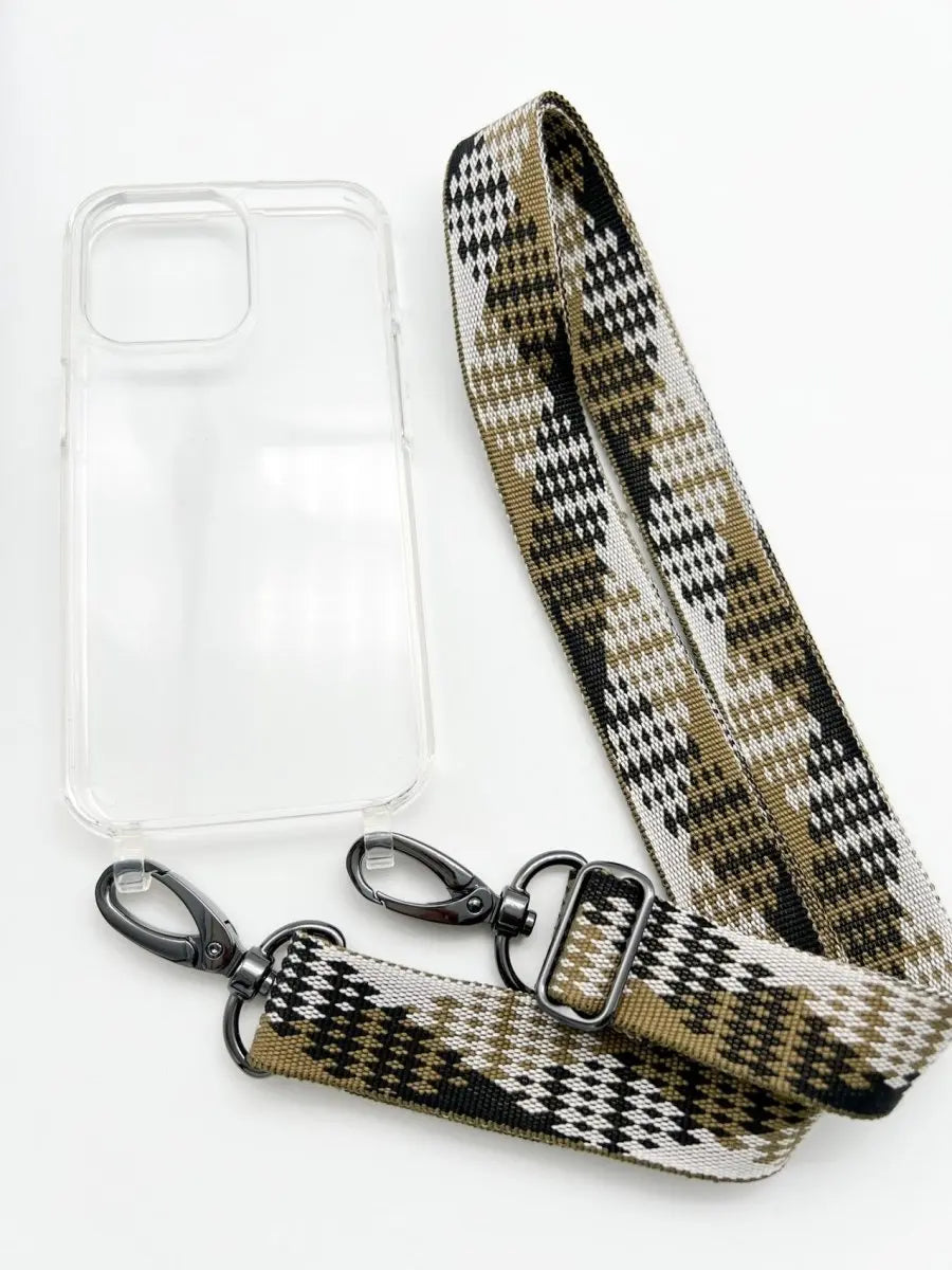 MOU MOU MUNICH macht Schluss mit dem Einheitslook der Handyketten! Ein Handgriff und Ihr entscheidet zwischen schlichter Kordel, coolem Gurt oder stylischer Holzperlenkette! INDIVIDUELL GESTALTBAR dank der wählbaren zusätzlichen Kette. Die Bänder sind von uns in München handgemacht und somit echte Unikate! BESTER SCHUTZ für das Handy durch die hochwertige und stoßfeste Hülle. Sie ist angenehm weich und liegt dennoch super in der Hand. Kompatibel mit Wireless Charging FREIE HÄNDE und Dein Handy ist dennoch stets griffbereit. Maße & Material: Farbe Handyhülle: transparent Für iPhone (teilweise mit MagSafe) und Samsung Galaxy Modelle Band: handgenäht aus Baumwolle/Polyester Länge Band (verstellbar): bis 140 cm, Breite 2,5 cm Lieferumfang: Handyhülle + Webband