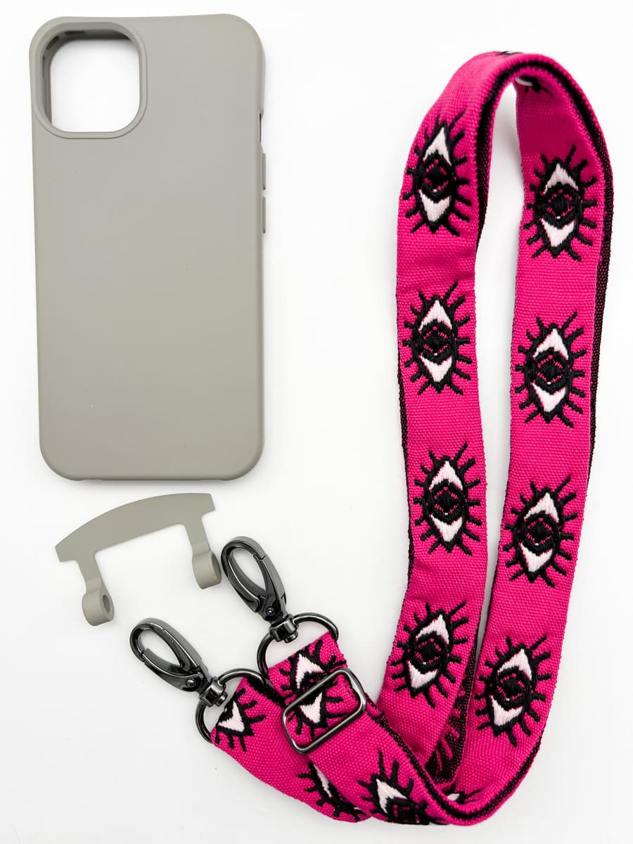MOU MOU MUNICH macht Schluss mit dem Einheitslook der Handyketten! Ein Handgriff und Ihr entscheidet zwischen schlichter Kordel, coolem Gurt oder stylischer Holzperlenkette! INDIVIDUELL GESTALTBAR dank der wählbaren zusätzlichen Kette. Die Bänder sind von uns in München handgemacht und somit echte Unikate! BESTER SCHUTZ für das Handy durch die hochwertige und stoßfeste Hülle. Sie ist angenehm weich und liegt dennoch super in der Hand. Kompatibel mit Wireless Charging FREIE HÄNDE und Dein Handy ist dennoch stets griffbereit. Maße & Material: Farbe Handyhülle: transparent Für iPhone (teilweise mit MagSafe) und Samsung Galaxy Modelle Band: handgenäht aus Baumwolle/Polyester Länge Band (verstellbar): bis 140 cm, Breite 2,5 cm Lieferumfang: Handyhülle + Webband