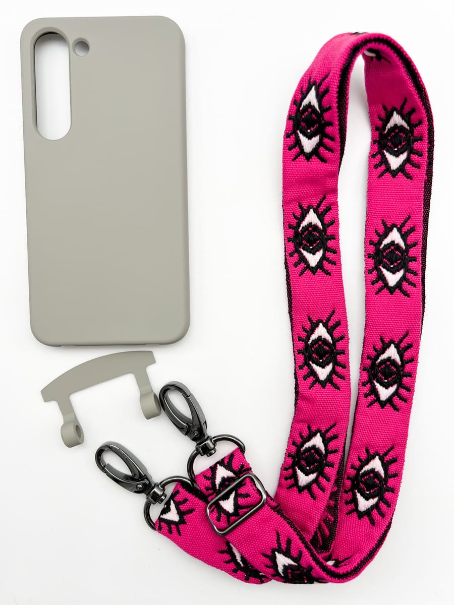 MOU MOU MUNICH macht Schluss mit dem Einheitslook der Handyketten! Ein Handgriff und Ihr entscheidet zwischen schlichter Kordel, coolem Gurt oder stylischer Holzperlenkette! Dank des modularen Designs kann die MOU MOU MUNICH 2in1 Handykette mit einem Griff entweder als Necklace Case oder ohne Kordel als Schutzhülle verwendet werden.INDIVIDUELL GESTALTBAR dank der wählbaren zusätzlichen Kette. Die Bänder sind von uns in München handgemacht und somit echte Unikate! BESTER SCHUTZ für das Handy durch die hochwertige und stoßfeste Hülle. Sie ist angenehm weich und liegt dennoch super in der Hand. Kompatibel mit Wireless Charging. FREIE HÄNDE und Dein Handy ist dennoch stets griffbereit. Ist Euer Handymodell nicht dabei? Schreibt uns eine Mail an Maße & Material: Farbe Handyhülle: rosa, grau, schwarz, berry, beige, dunkelblau oder petrol Für iPhone und Samsung Galaxy Modelle Band: handgenäht aus Baumwolle/Polyester Länge Band (verstellbar): bis 140 cm, Breite 2,5 cm Lieferumfang: Handyhülle + Verbindungsstück + Handyband Bitte beachten: bei den Samsung Galaxy Hüllen ist aufgrund des offenen Bodens keine Aussparung für den SPen vorhanden. Das ist bei Hüllen mit abnehmbaren Modulen nicht möglich