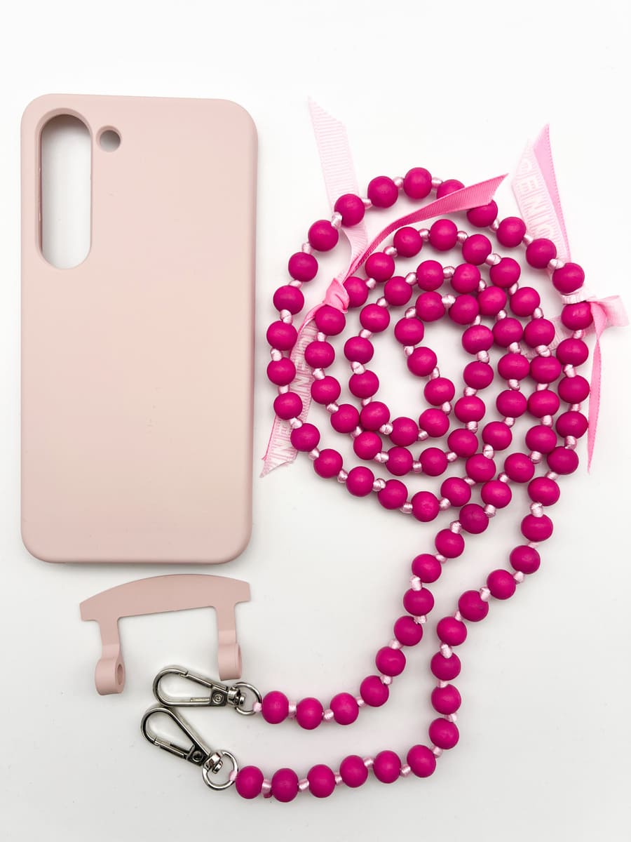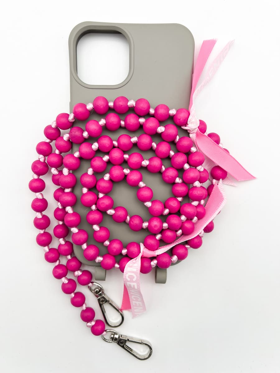 MOU MOU MUNICH macht Schluss mit dem Einheitslook der Handyketten! Ein Handgriff und Ihr entscheidet zwischen schlichter Kordel, coolem Gurt oder stylischer Holzperlenkette! Dank des modularen Designs kann die MOU MOU MUNICH IBIZA Handykette mit 2in1 Hülle mit einem Griff entweder als Necklace Case oder ohne Kordel als Schutzhülle verwendet werden.INDIVIDUELL GESTALTBAR dank der zusätzlichen Kordel. BESTER SCHUTZ für das Handy durch die hochwertige und stoßfeste Hülle. Sie ist angenehm weich und liegt dennoch super in der Hand. Kompatibel mit Wireless Charging FREIE HÄNDE und Dein Handy ist dennoch stets griffbereit. Ist Euer Handymodell nicht dabei? Schreibt uns eine Mail an Maße & Material: Farbe Handyhülle: berry, dunkelblau, schwarz, grau, rosa oder petrol Für iPhone und Samsung Galaxy Modelle Holzperlenkette aus 10 mm Holzperlen Länge Holzperlenkette: ca. 125 cm (Länge kann variieren) Lieferumfang: Handyhülle + Verbindungsstück + Holzkette Bitte beachten: die Schleifchen sind recht lose angebracht, damit man sie leicht entfernen kann. Solltet ihr euch für die Schleifchen entscheiden, empfehlen wir sie nochmal fest zu verknoten. Bei den Samsung Galaxy Hüllen ist aufgrund des offenen Bodens keine Aussparung für den SPen vorhanden. Das ist bei Hüllen mit abnehmbaren Modulen nicht möglich