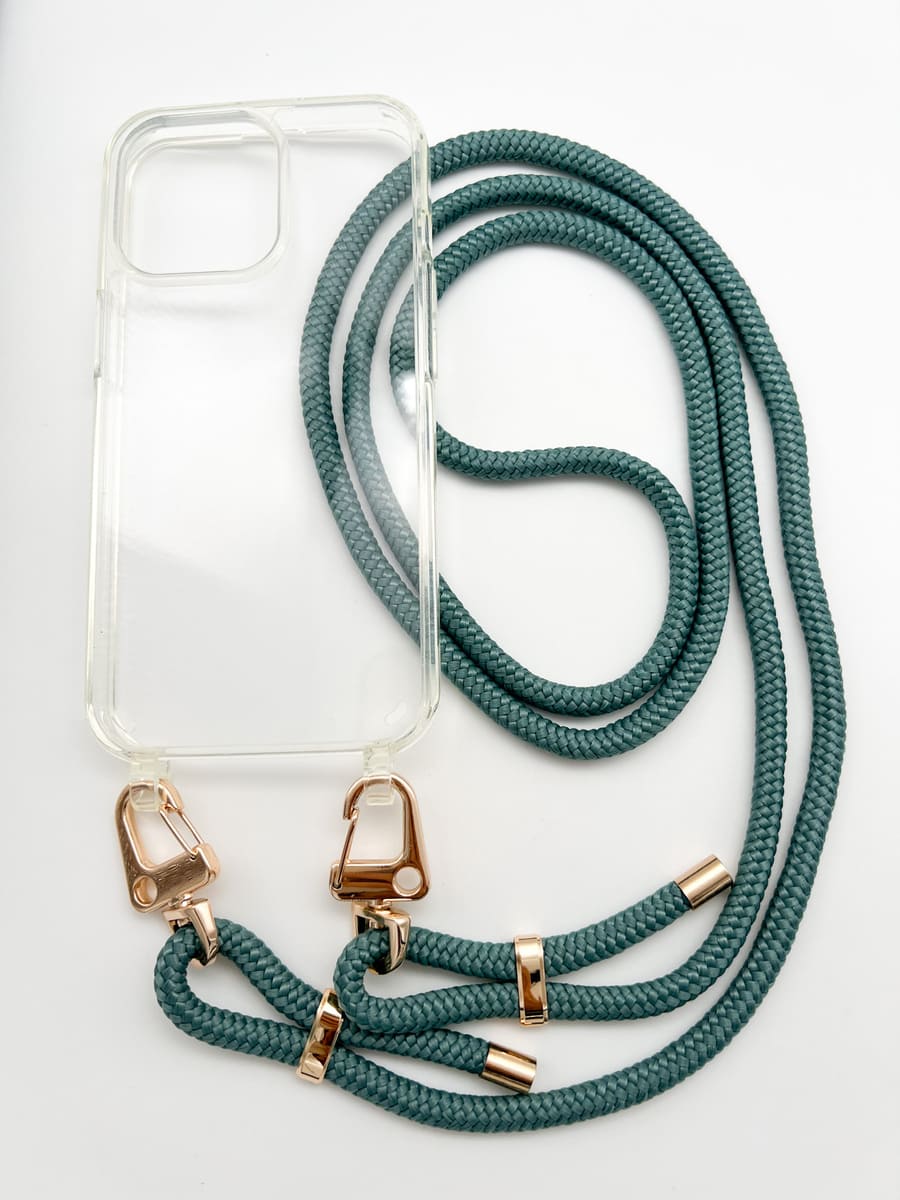 Keine Lust mehr auf die alte Handykette? Wegschmeißen muss nicht sein, tausche einfach die Kordel gegen eine neue Kordel aus! Auch als perfekte Ergänzung zu unseren 2in1 Handyhüllen.Durch die Karabiner ist die Kette blitzschnell in Deine eigene Handyhülle eingehängt und somit hast Du immer freie Hände. Maße & Material: Farbe: petrol Rund geflochtenes Band Strapazierfähige Metallkarabiner Länge größenverstellbar: ca. 160 cm Lieferumfang: Handyband ohne Hülle