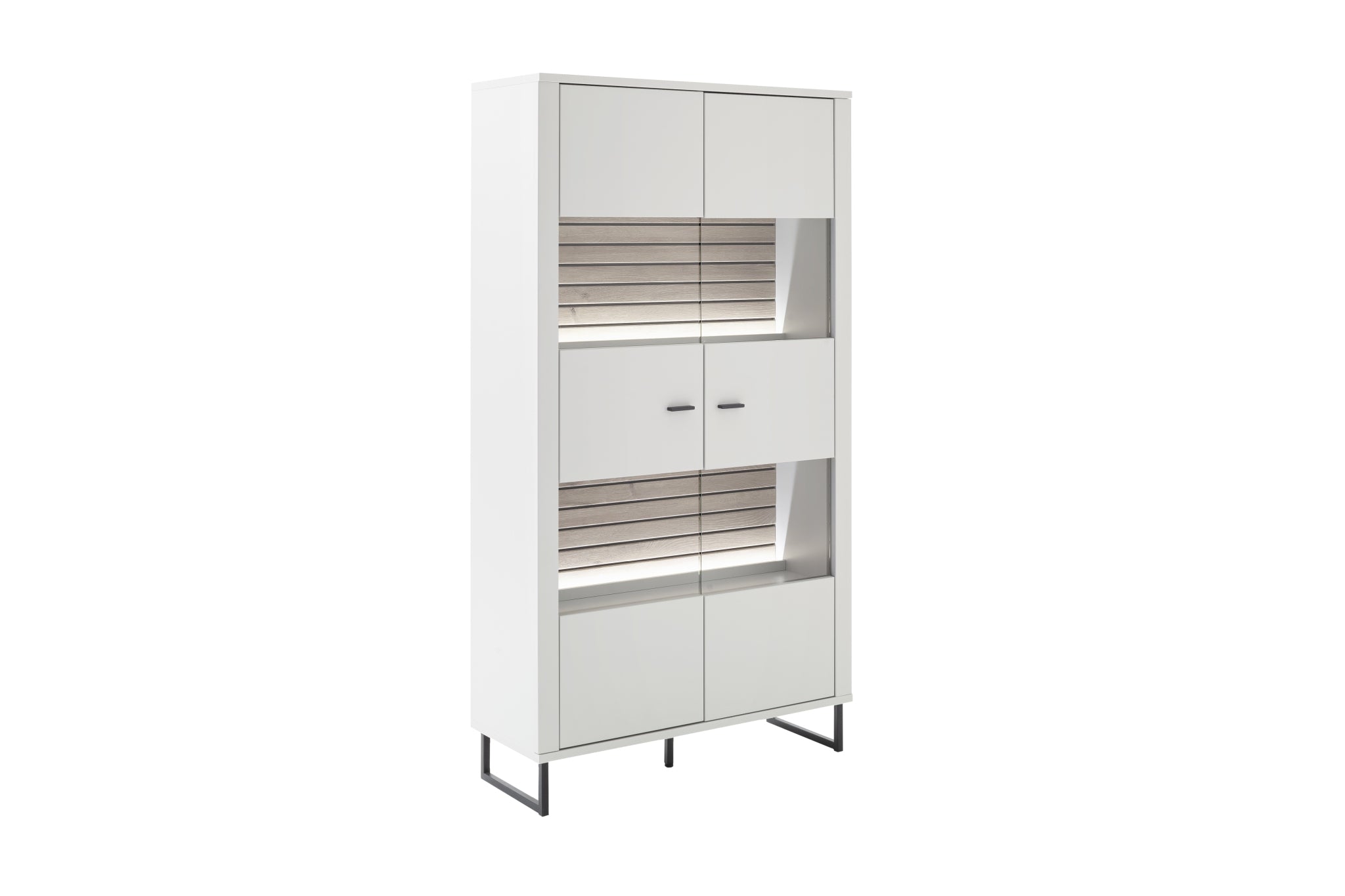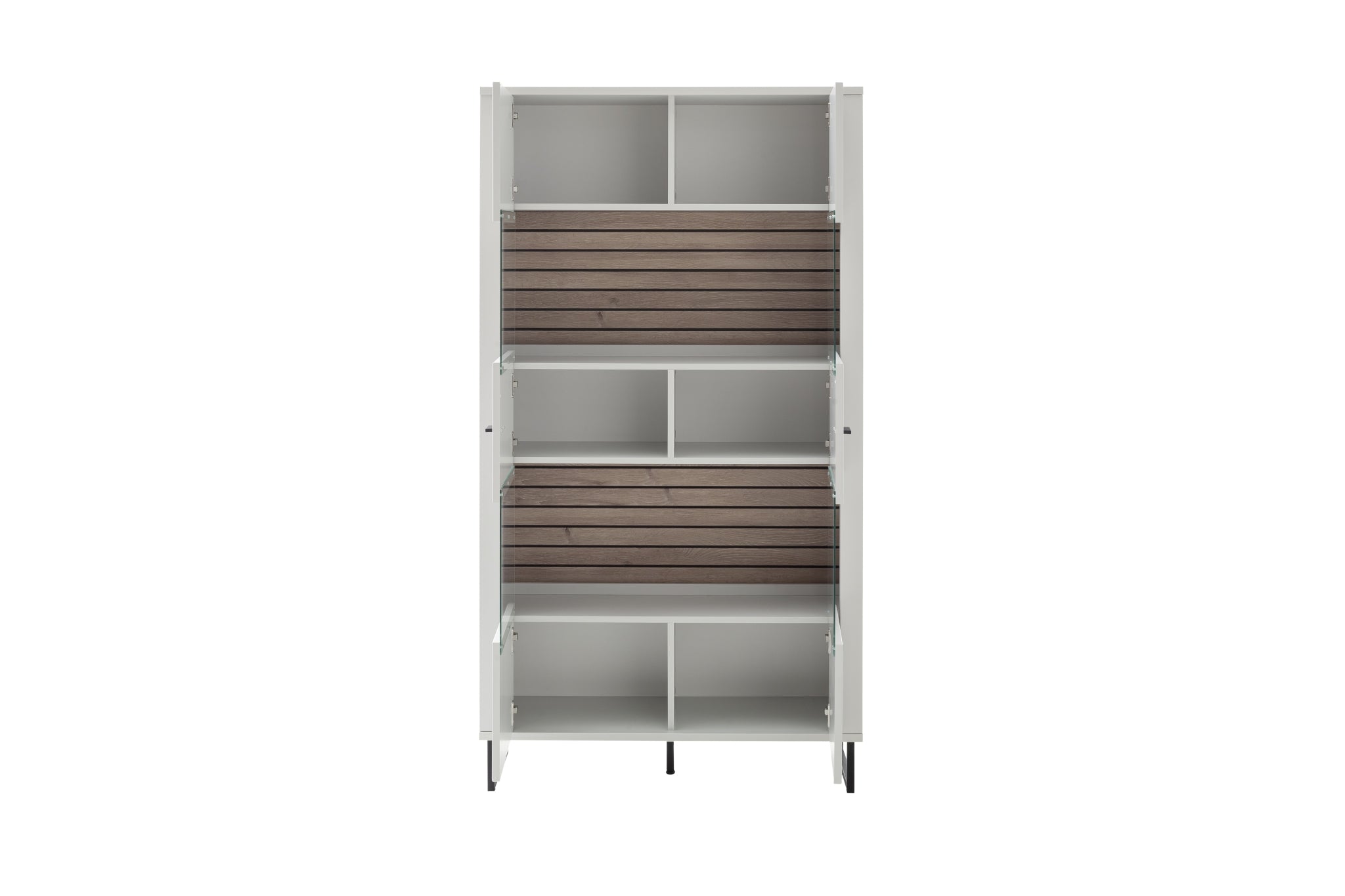 - Rückwand: sichtbar: Viking Oak Leisten ummantelt mit Schattenfuge hinter Türen: Modern white Dekor