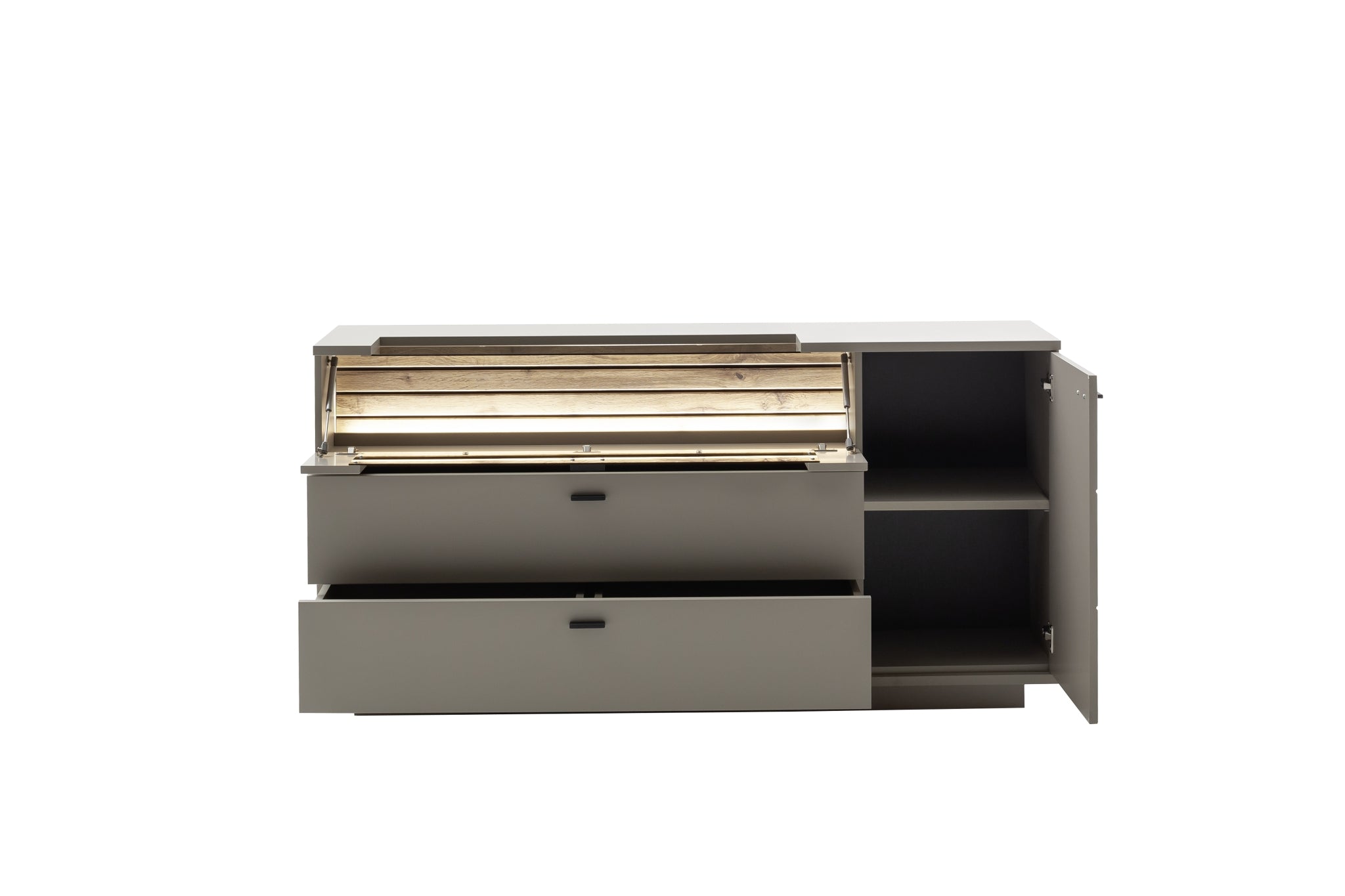 - 1 Tür / 2 Schubkästen / 1 Klappe