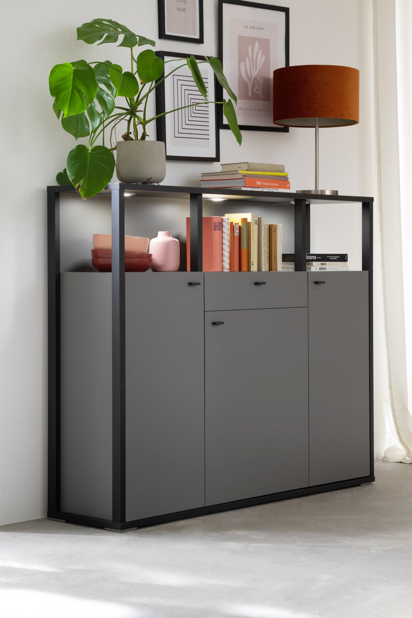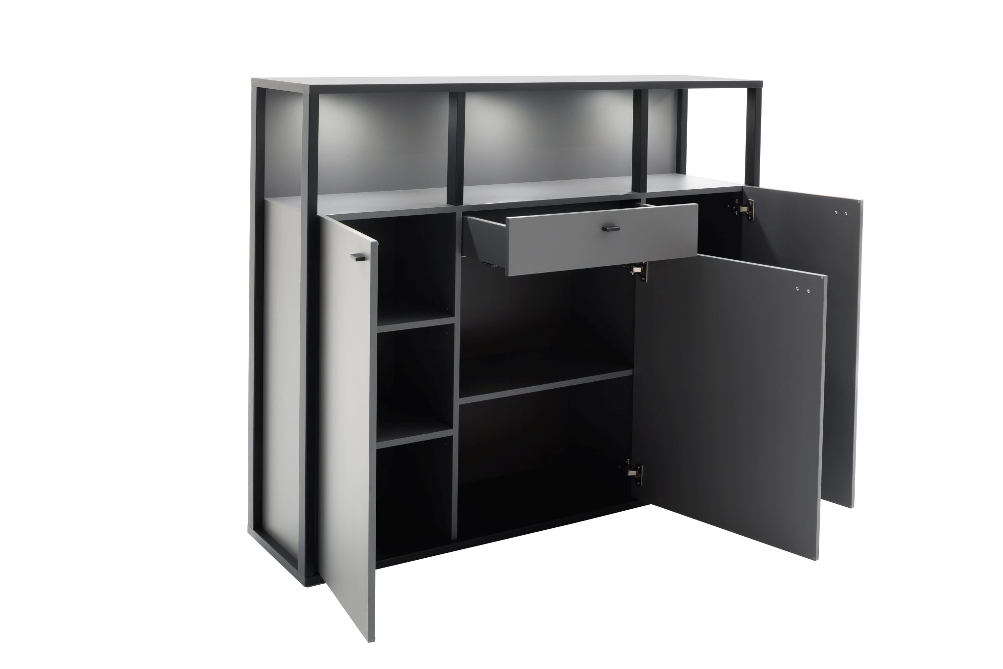 - 3 Türen / 1 Schubkasten / 3 Fächer