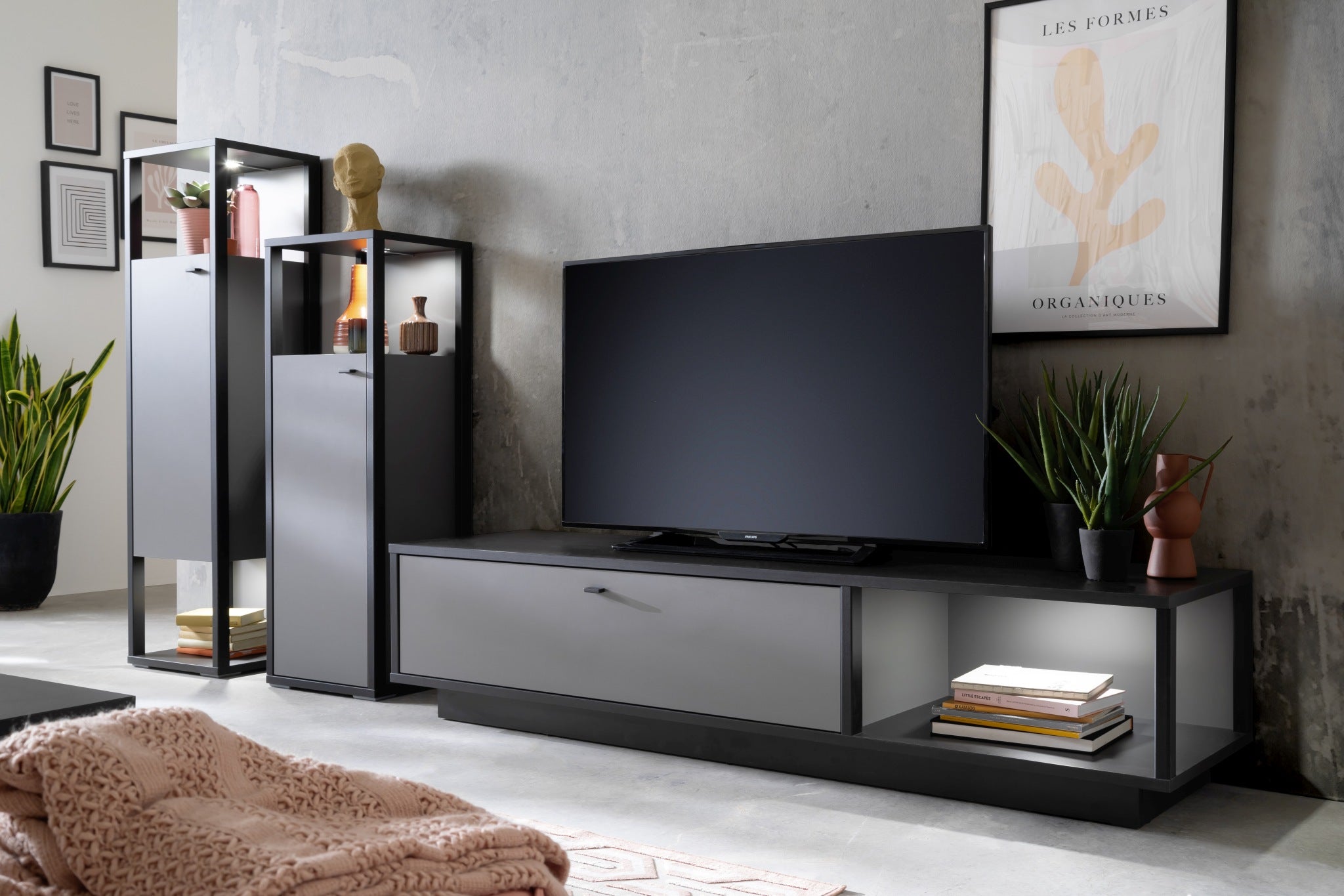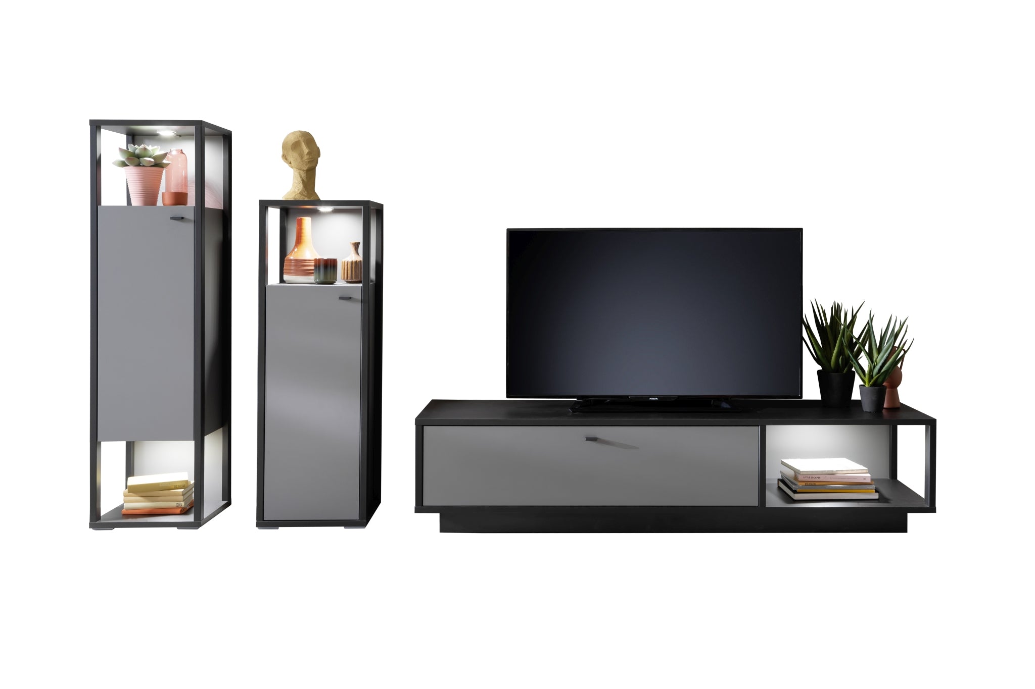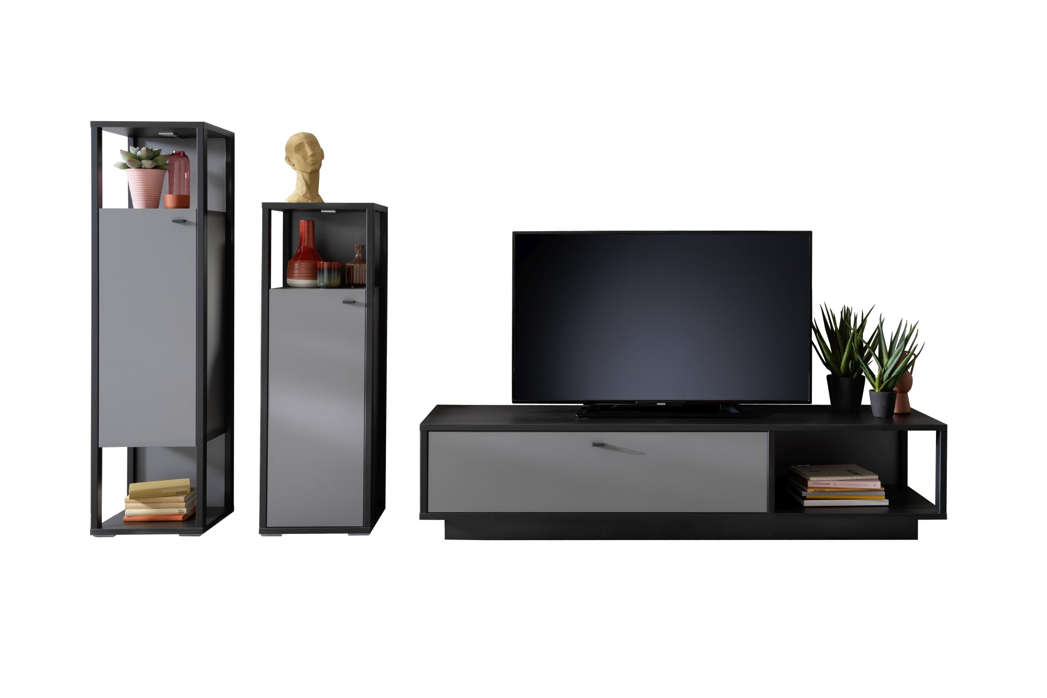 hinter Türen & Schubkästen: Royal grey Dekor - Griffe: Metall schwarzgrau