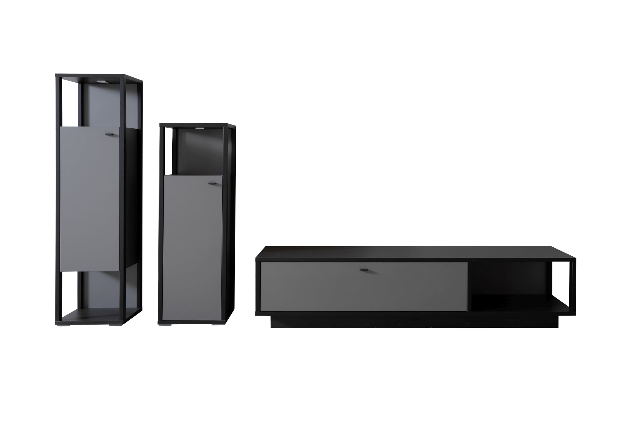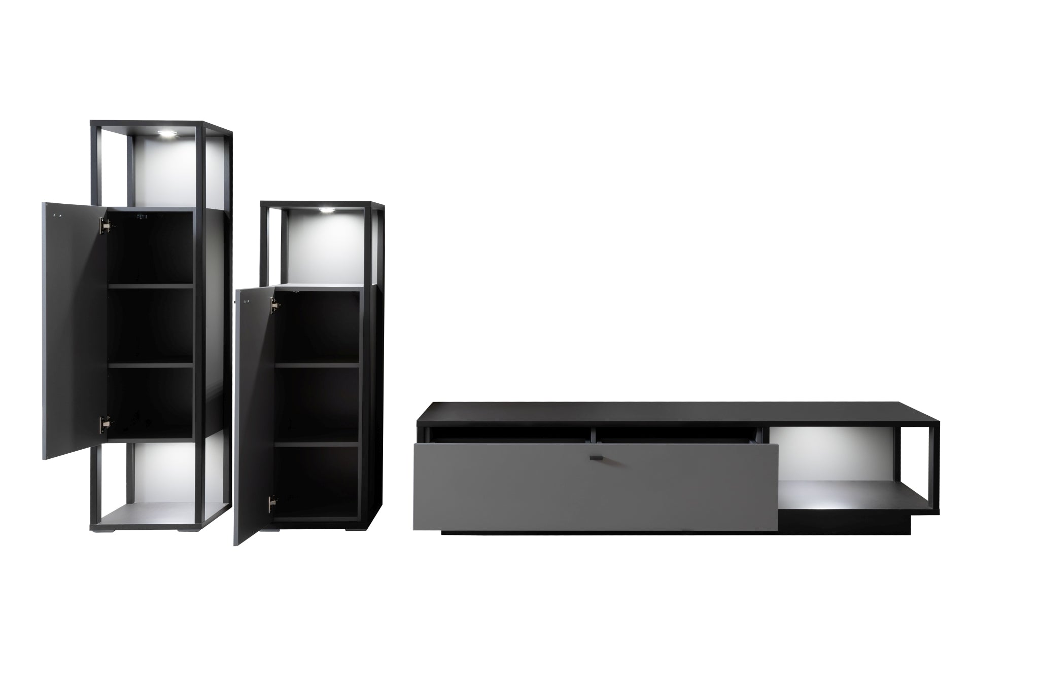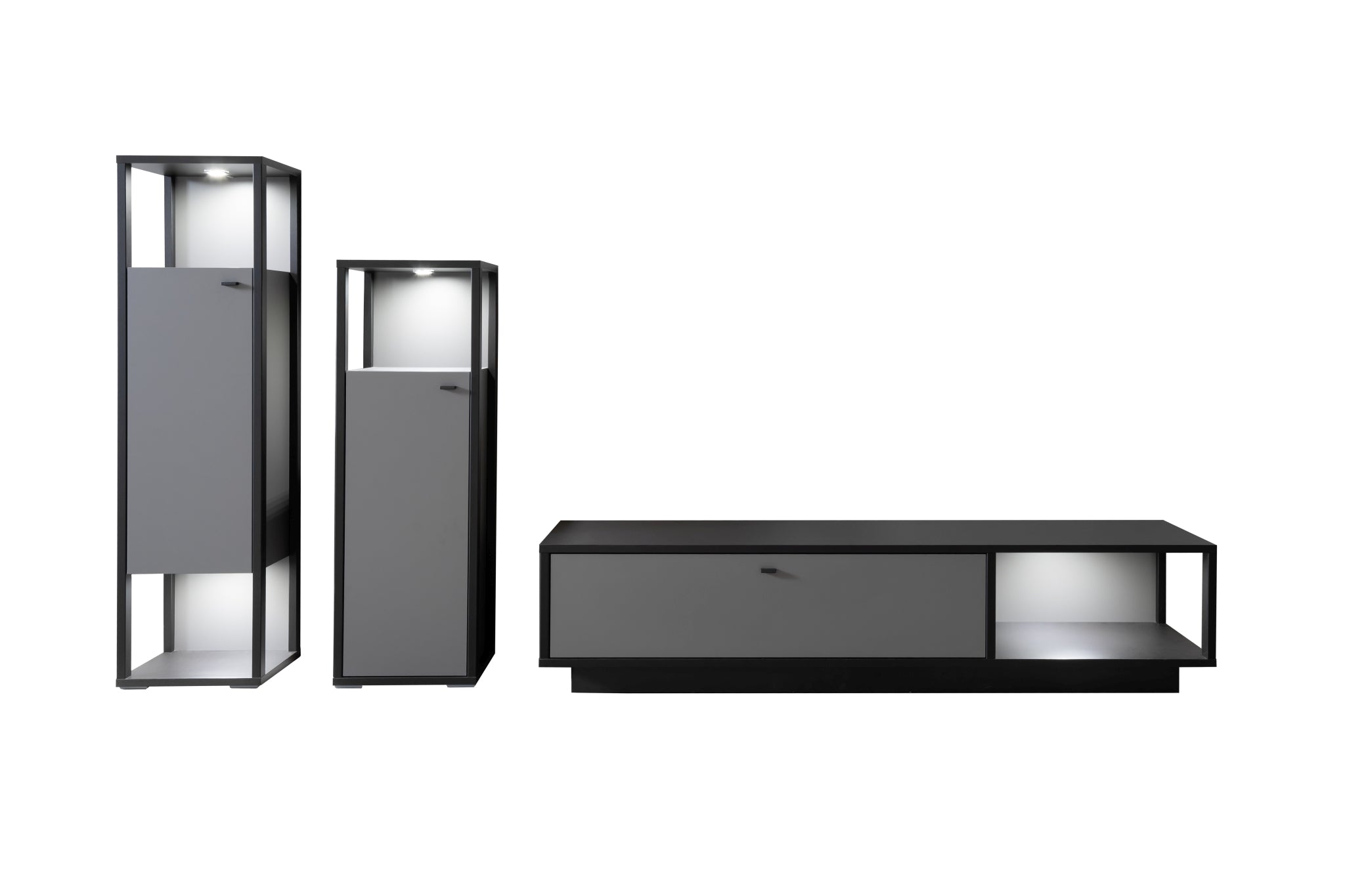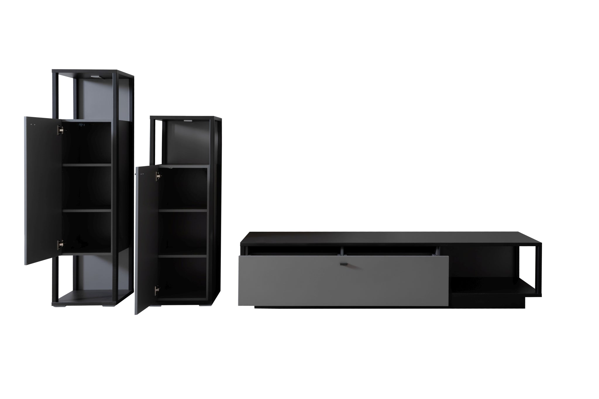 hinter Türen & Schubkästen: Royal grey Dekor - Griffe: Metall schwarzgrau