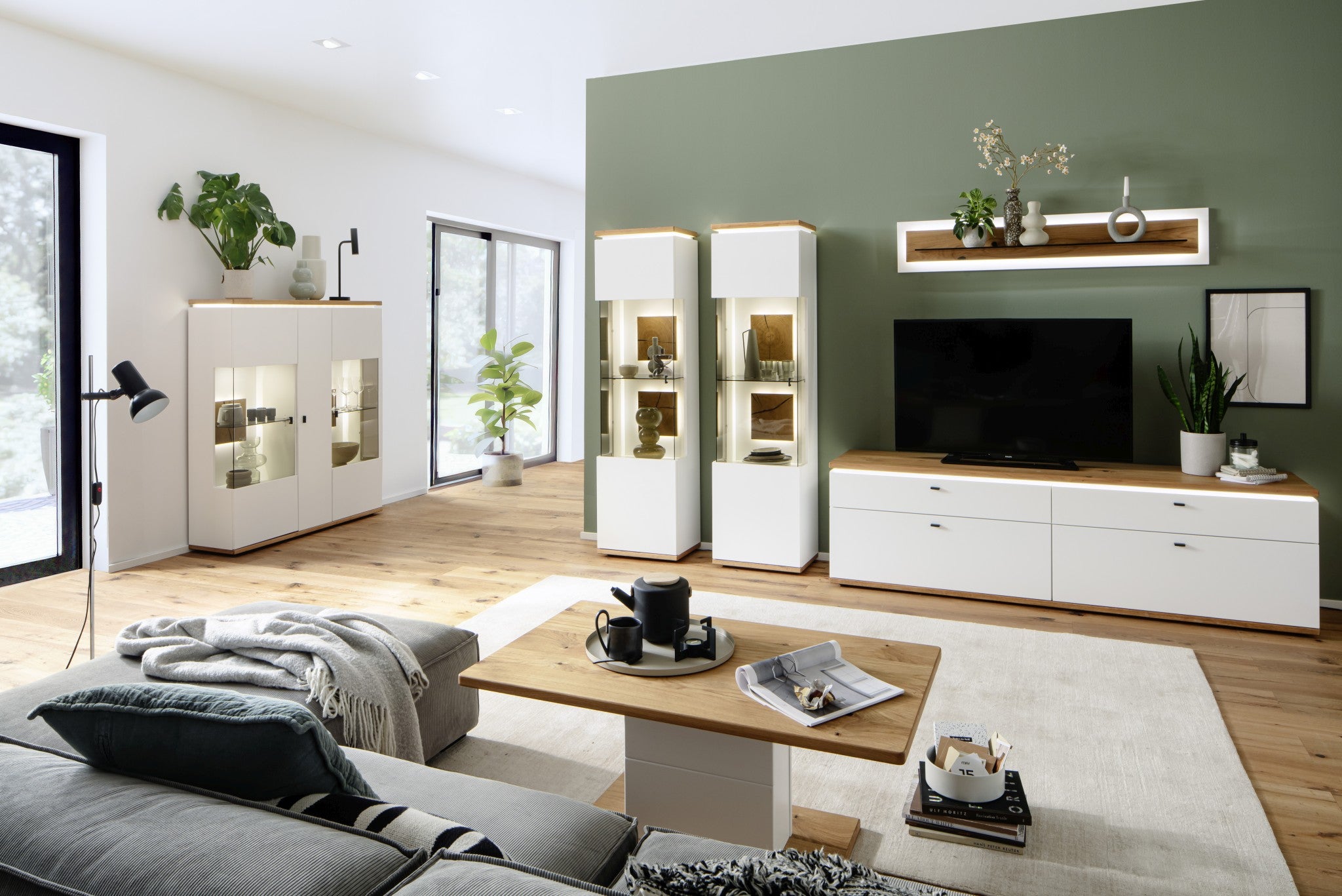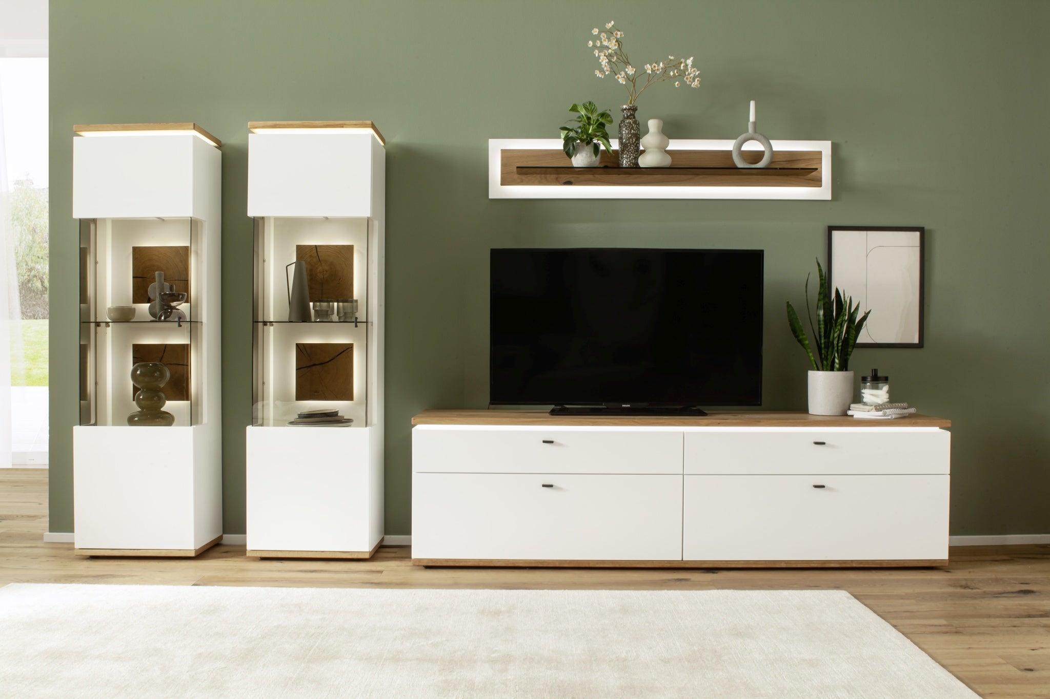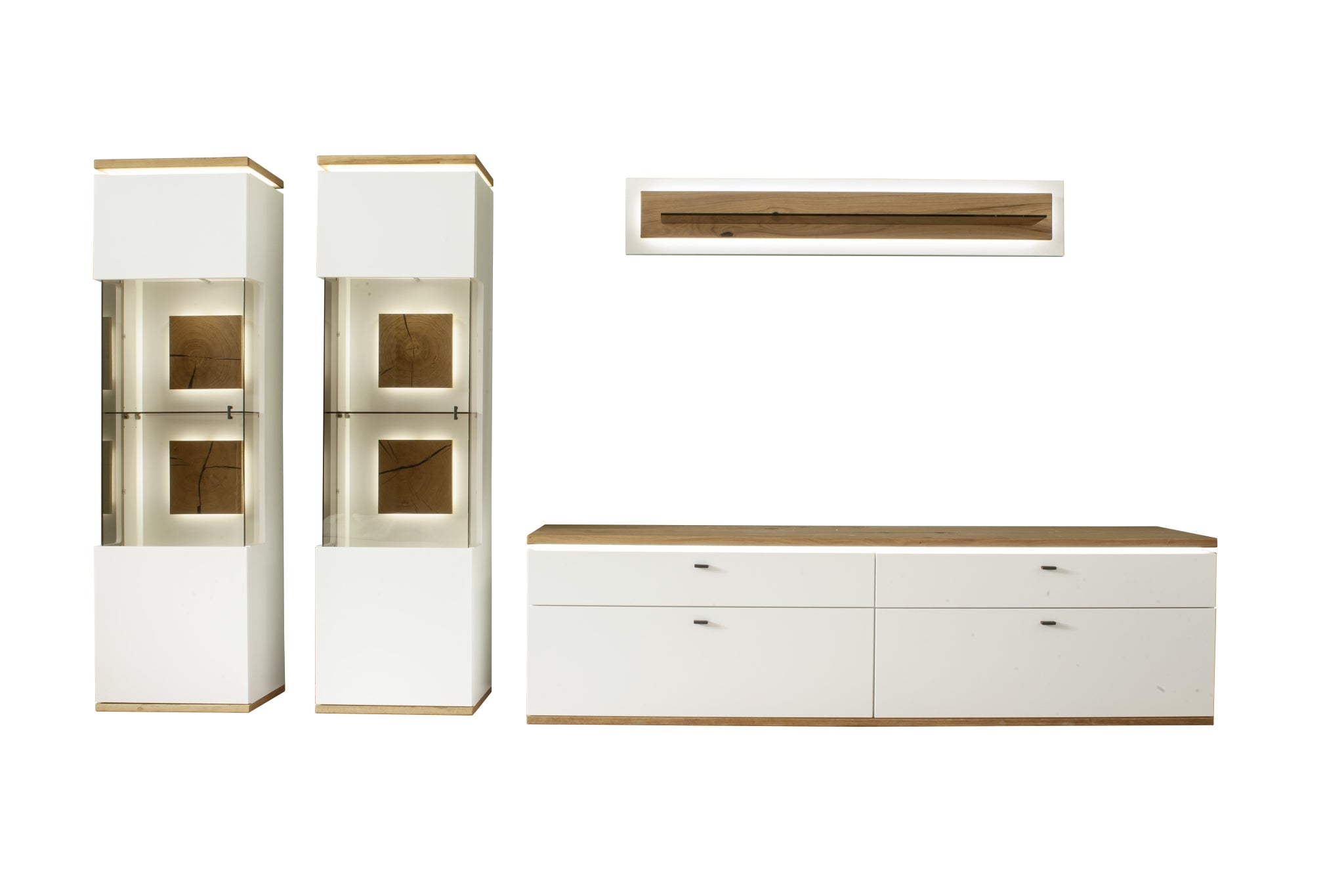 - Korpusabsetzung: Ast- /Balkeneiche furniert in Wildeiche geölt