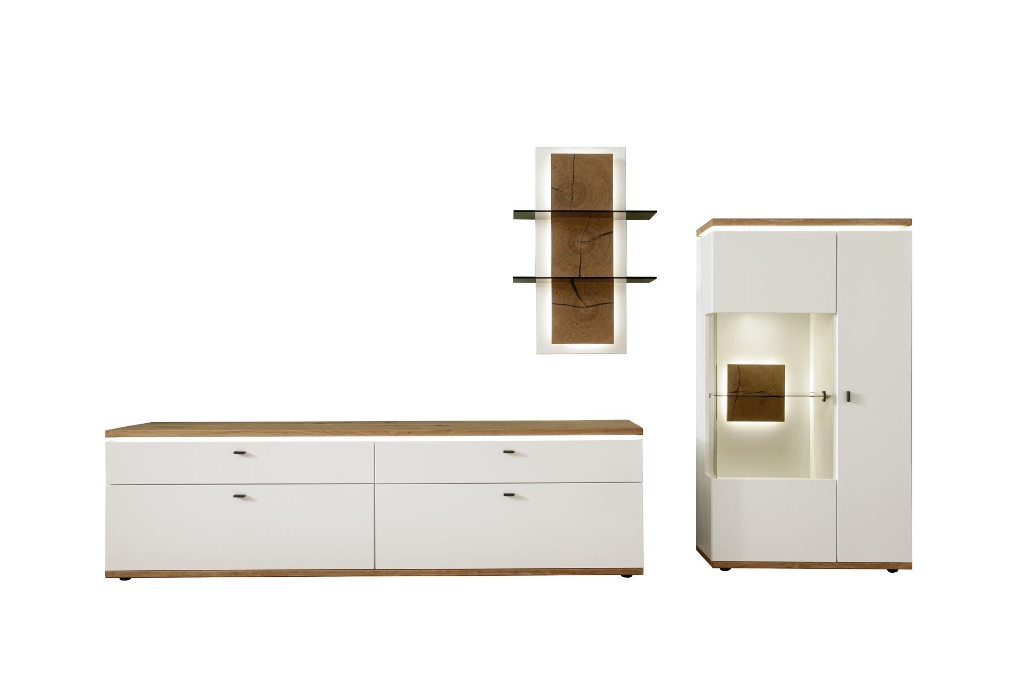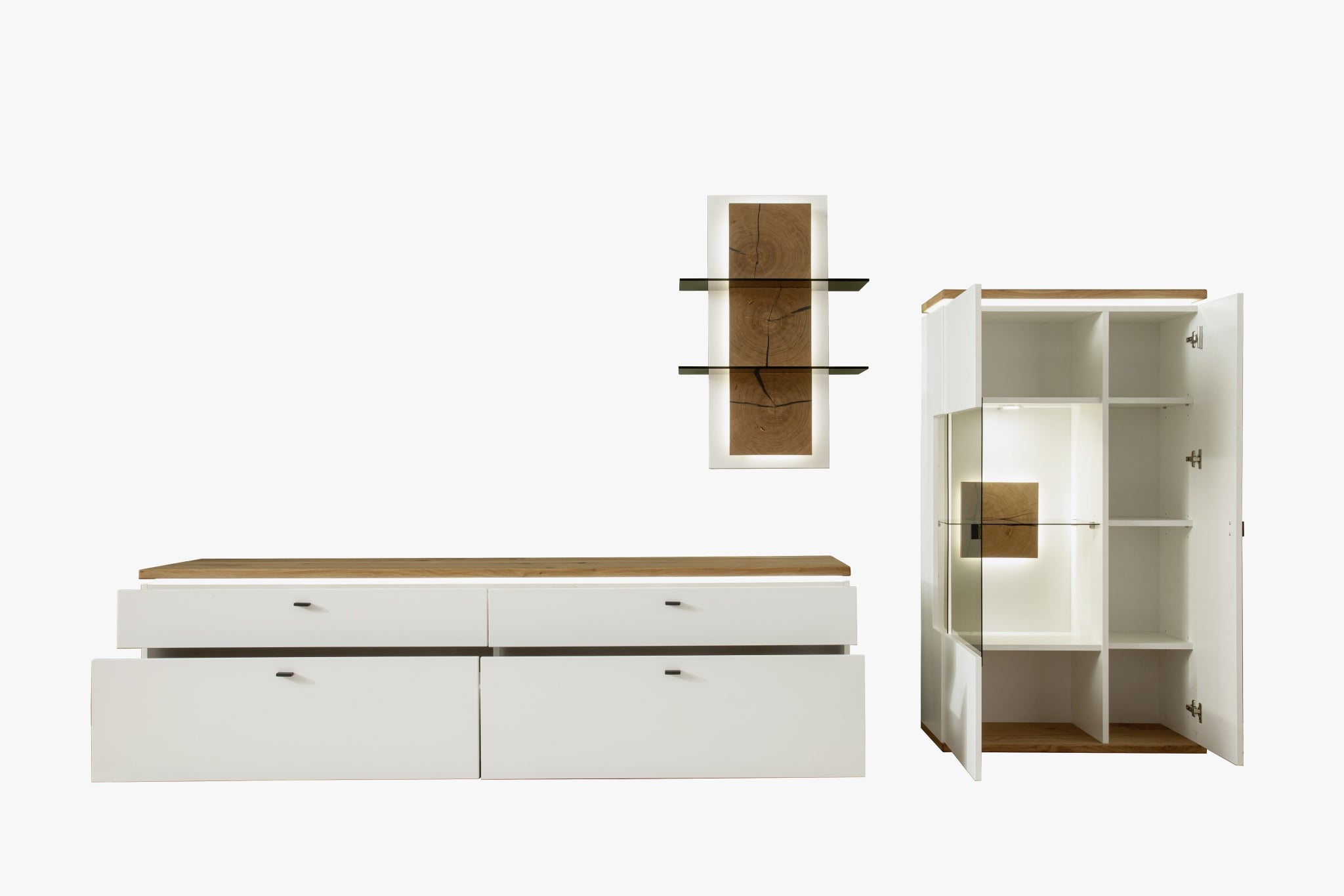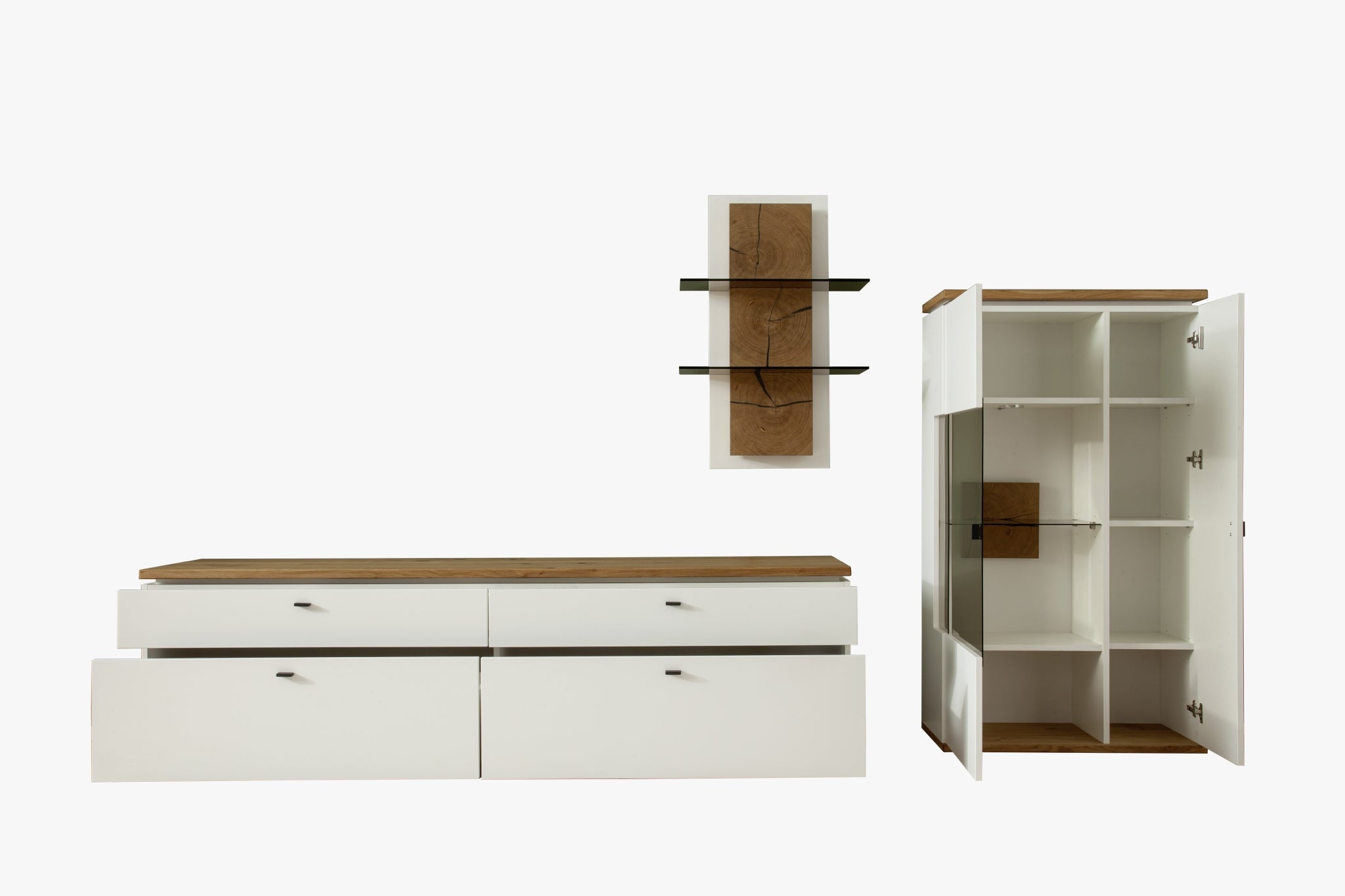 - Korpusabsetzung: Ast- /Balkeneiche furniert in Wildeiche geölt