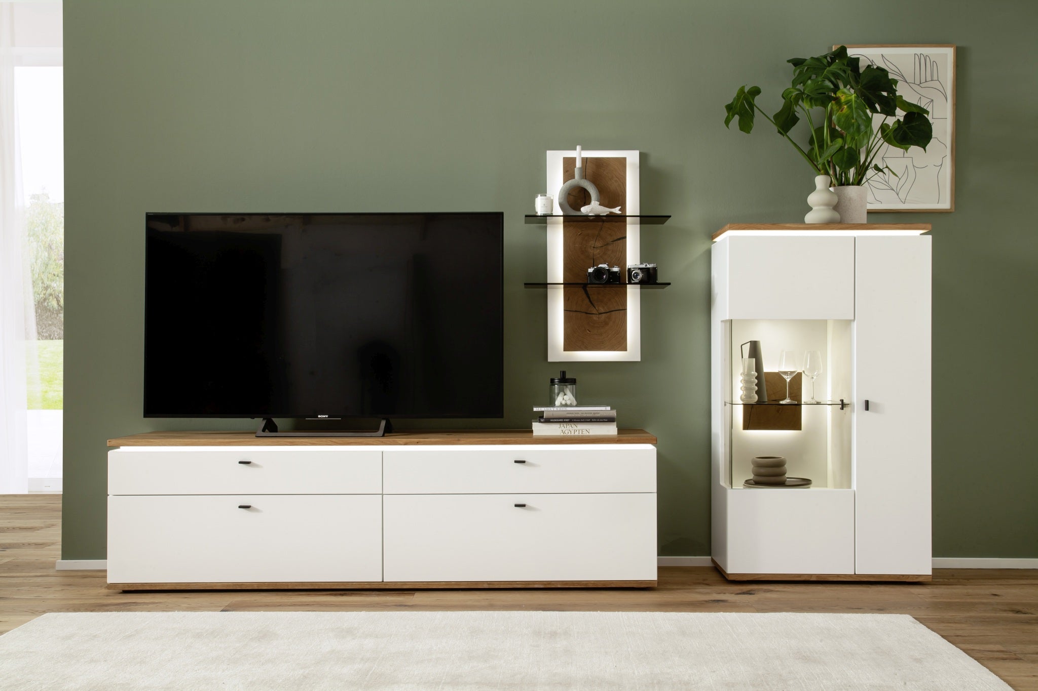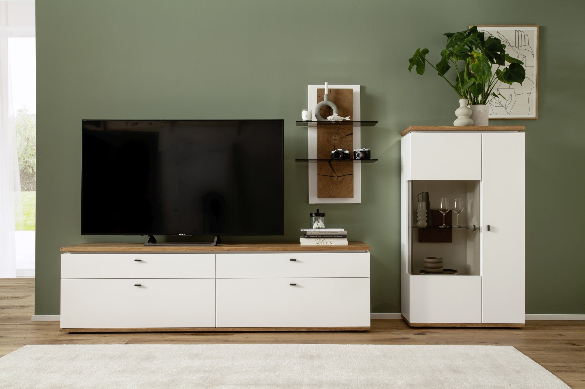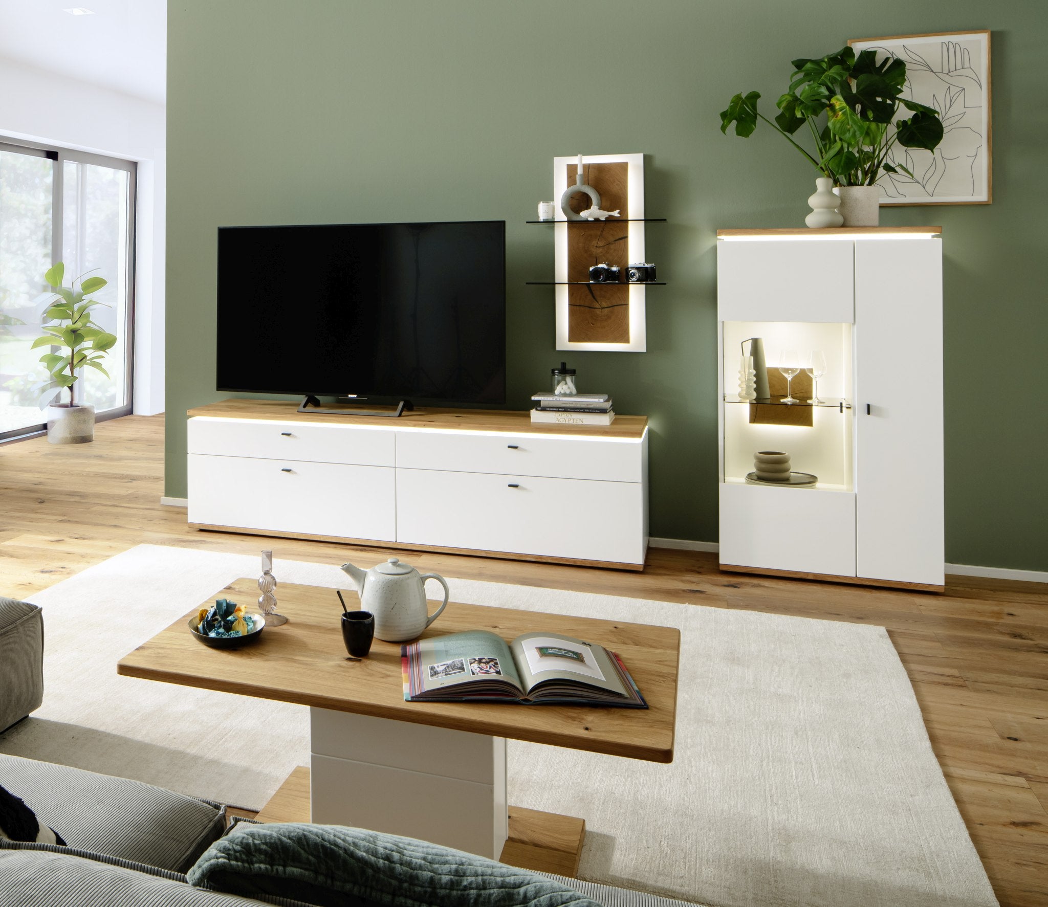- Korpusabsetzung: Ast- /Balkeneiche furniert in Wildeiche geölt