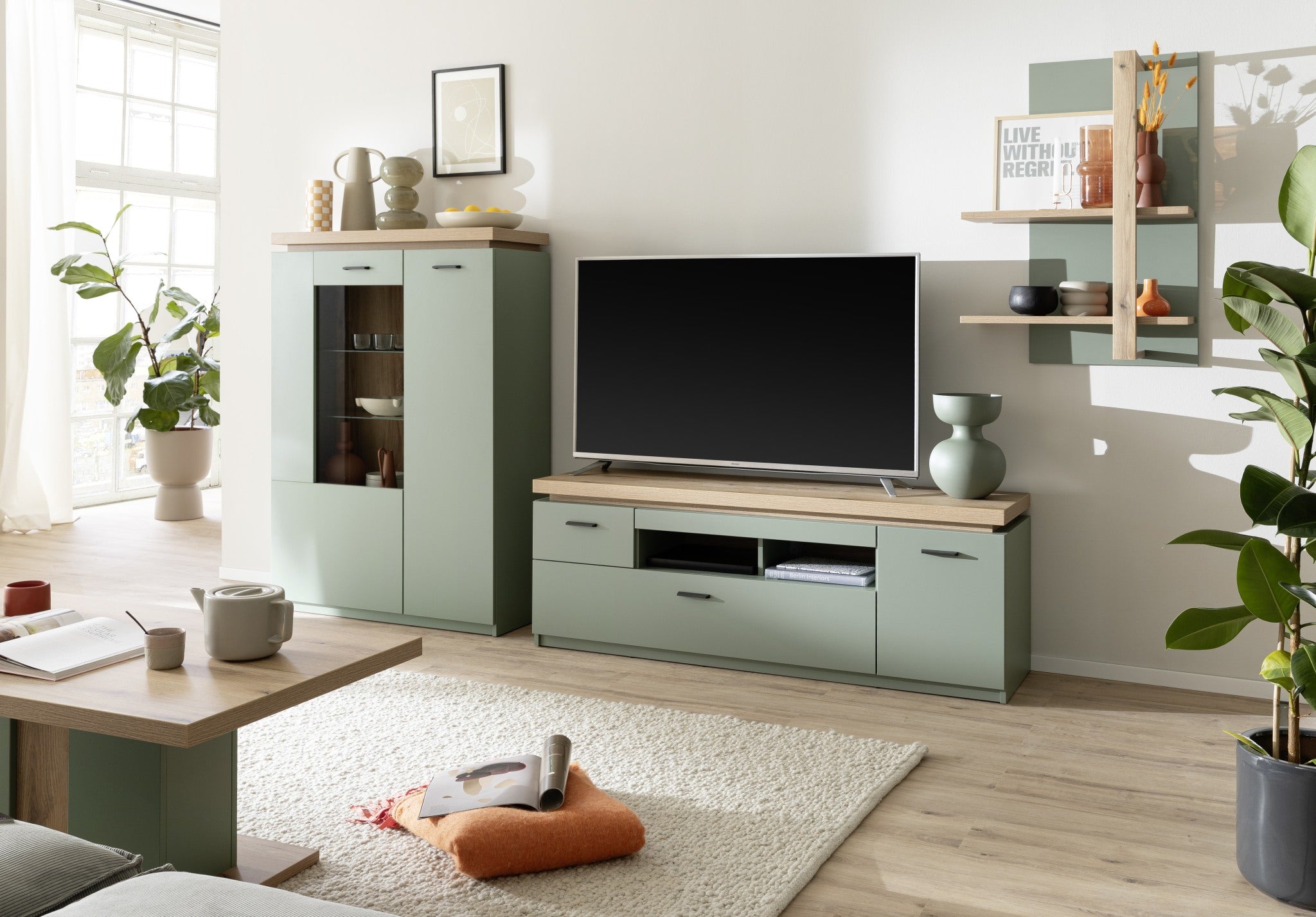 hinter Türen & Schubkästen: Eiche Evoke Nachbildung - Griffe: Metall schwarzgrau