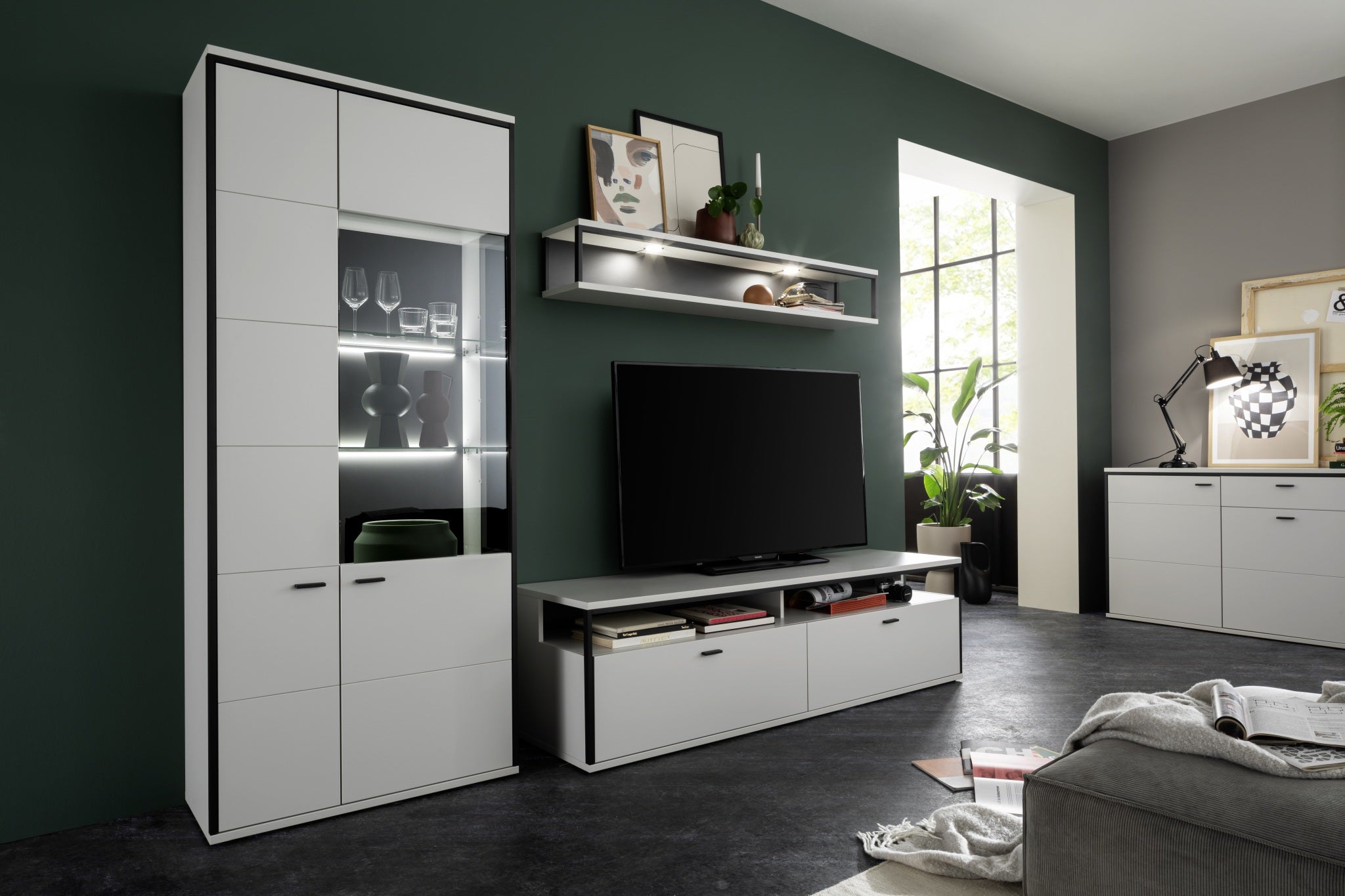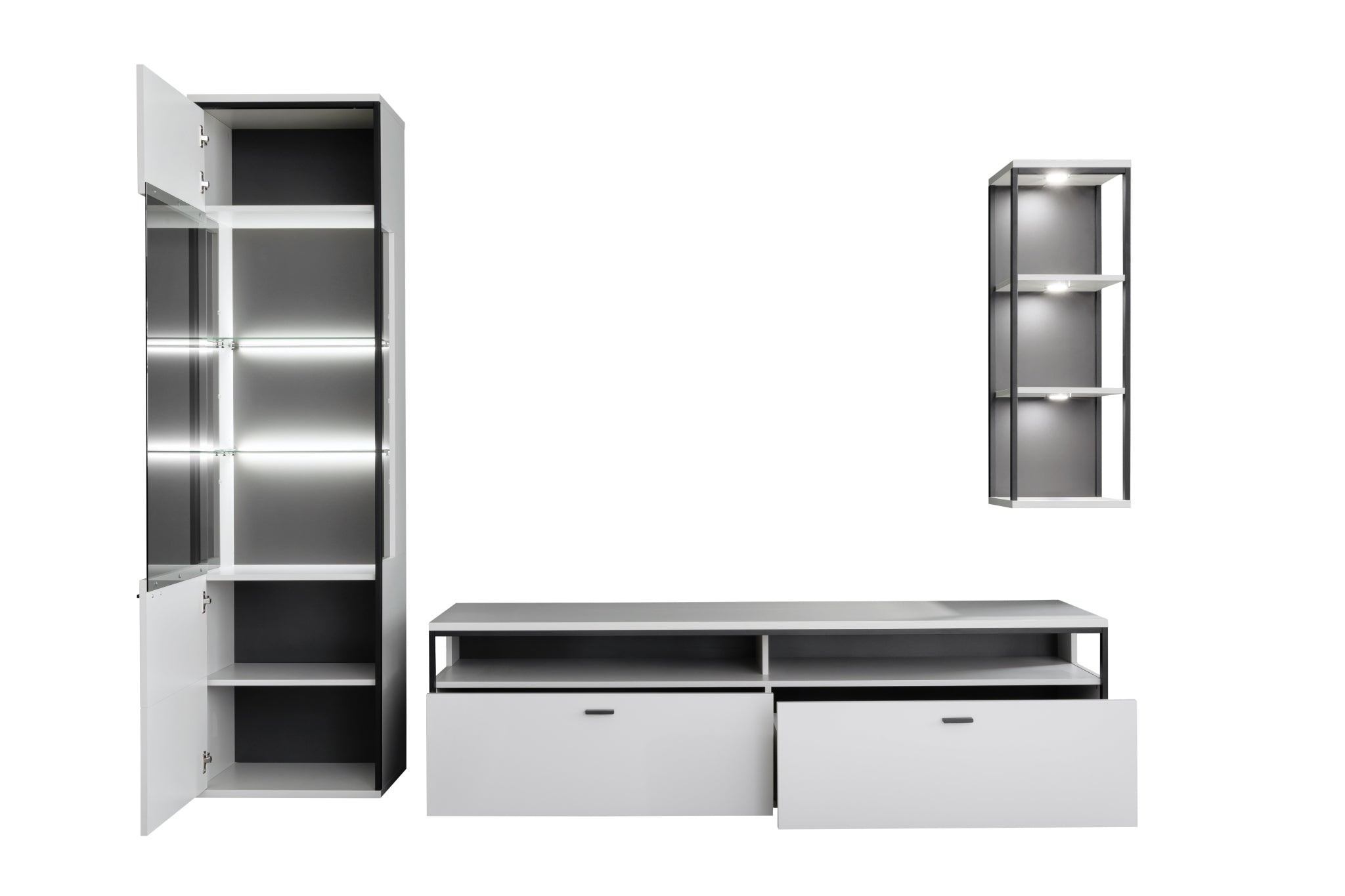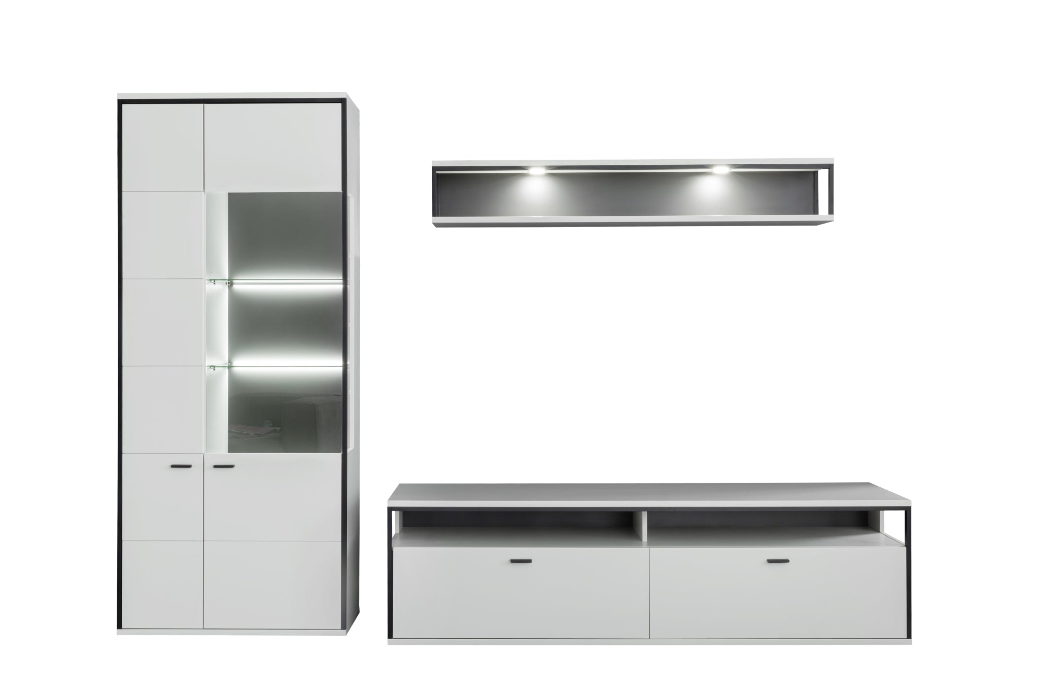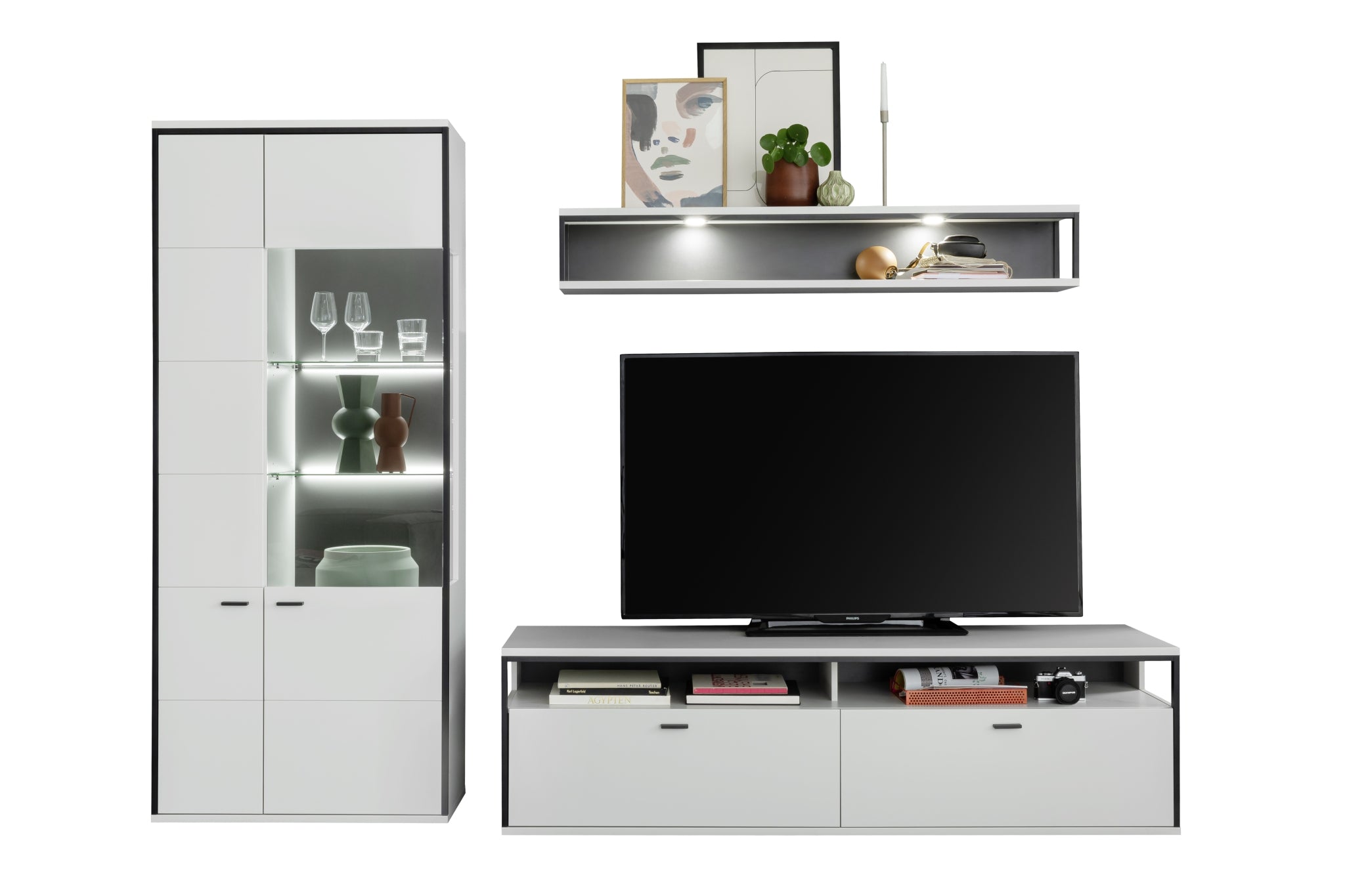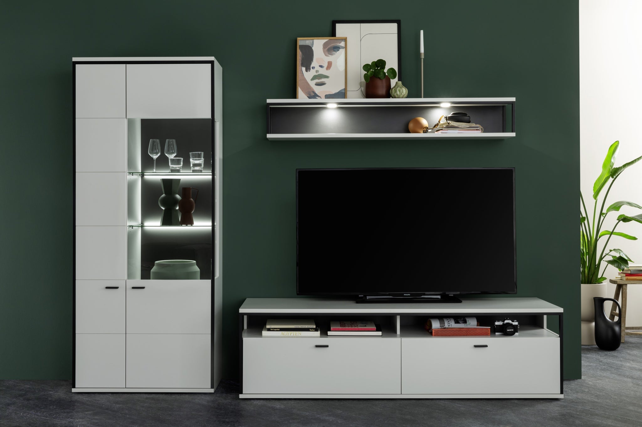 - Korpus: Modern white Melamin Nachbildung, Aluminiumprofil schwarzgrau