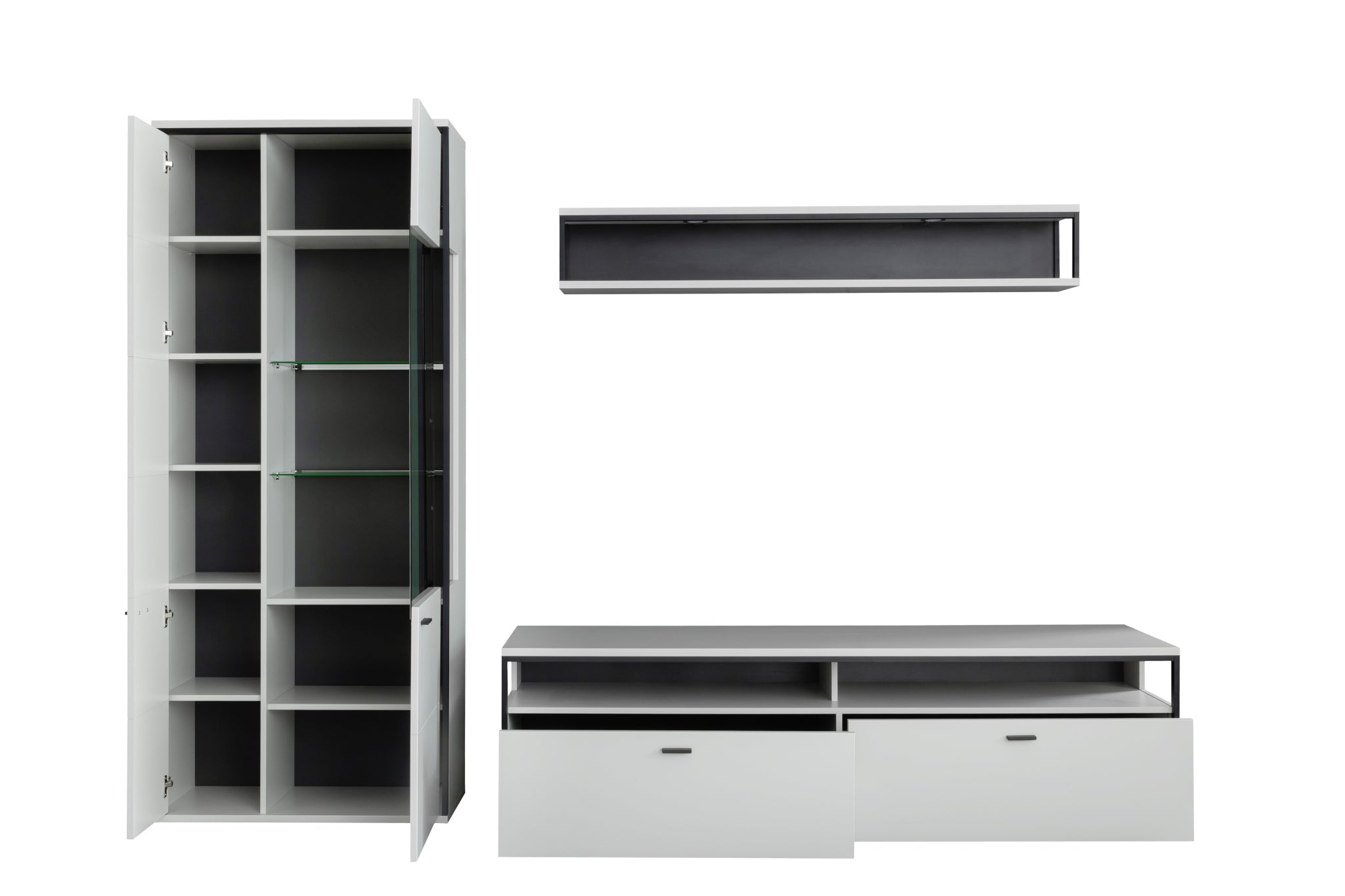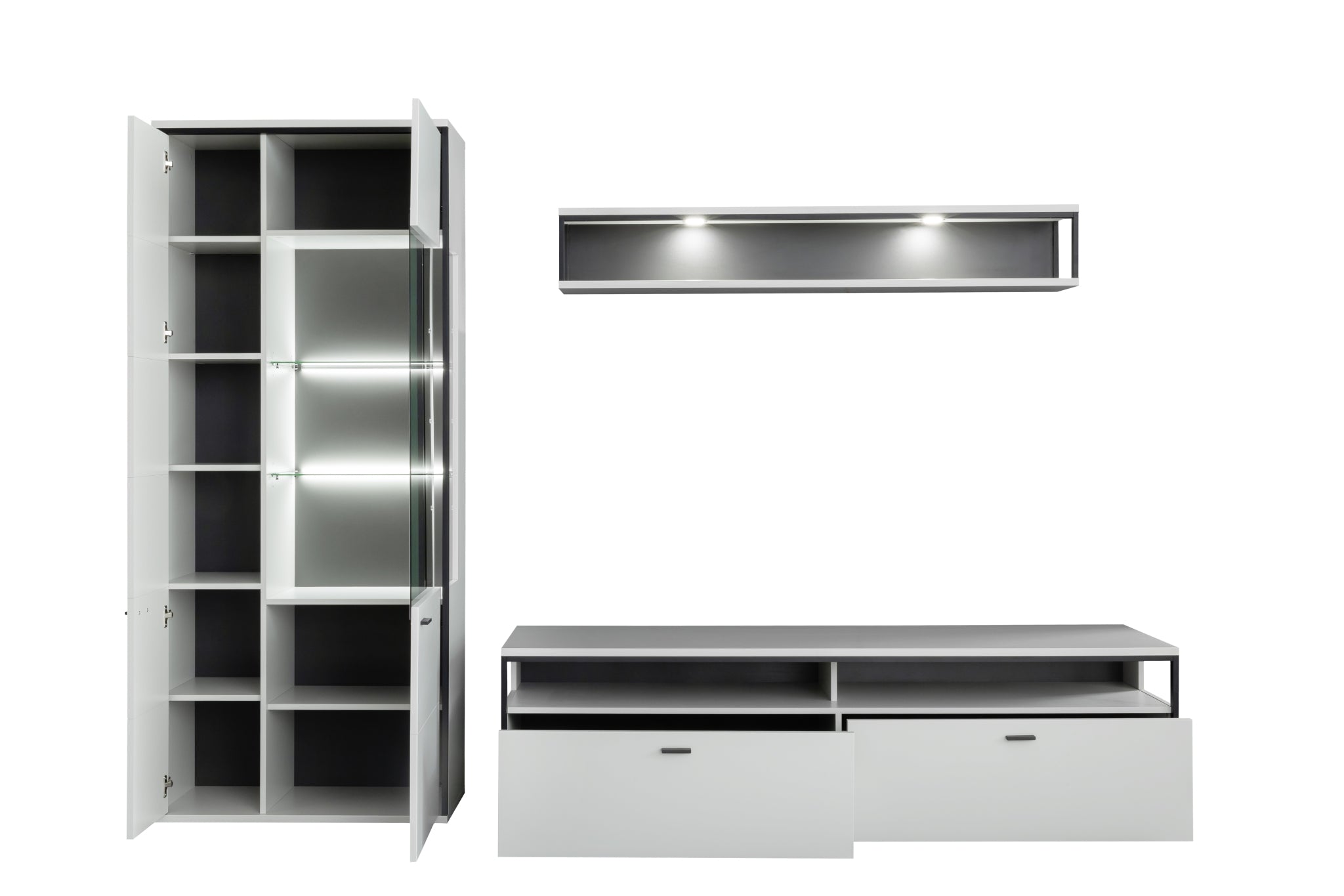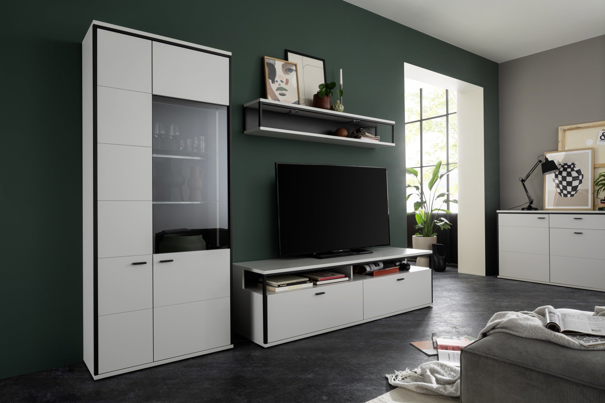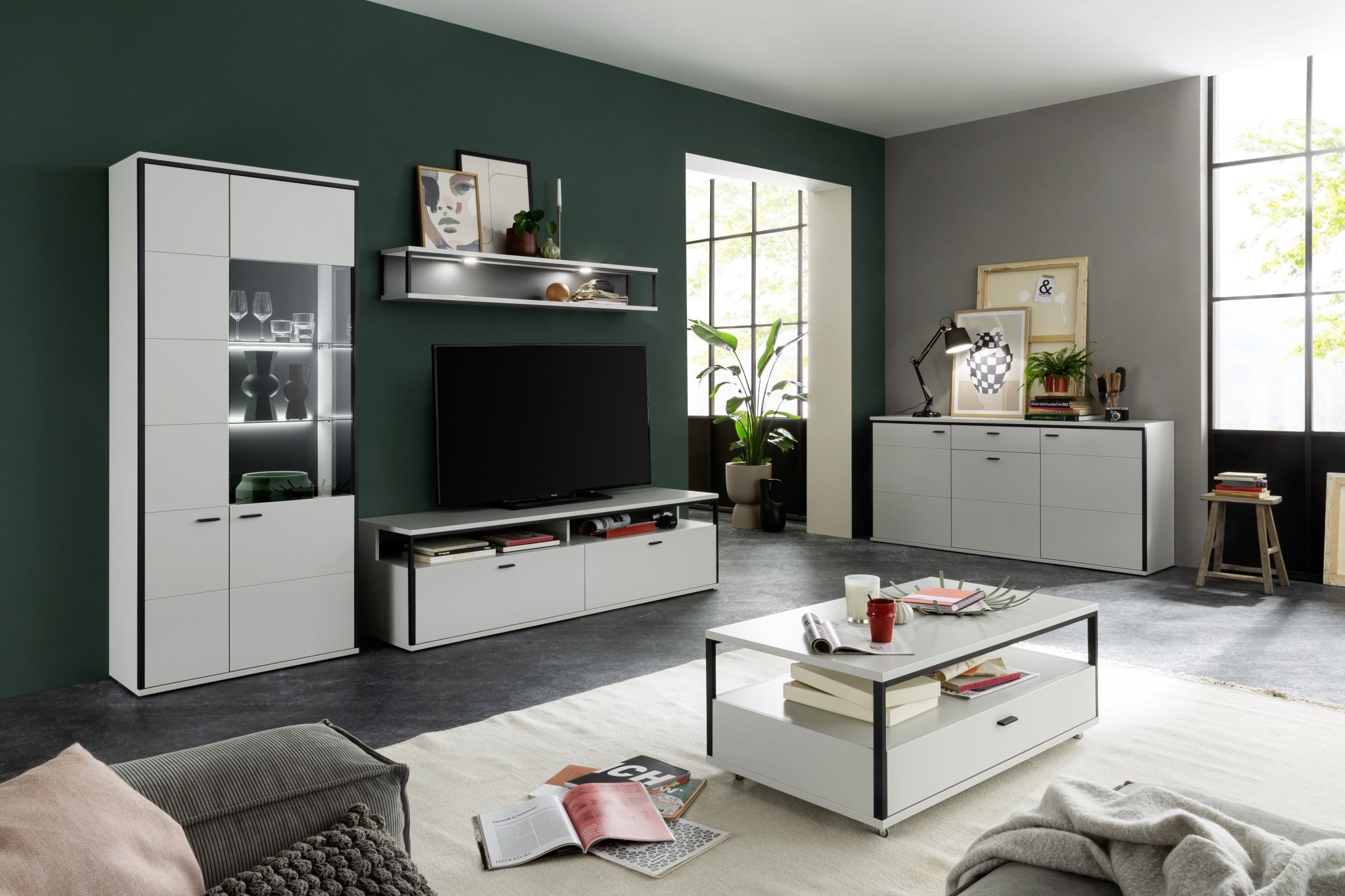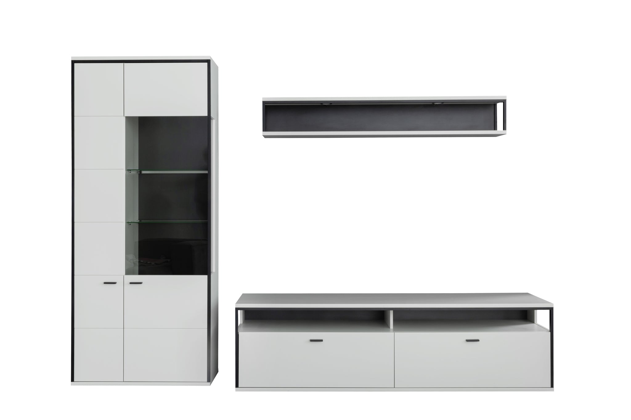 - Korpus: Modern white Melamin Nachbildung, Aluminiumprofil schwarzgrau