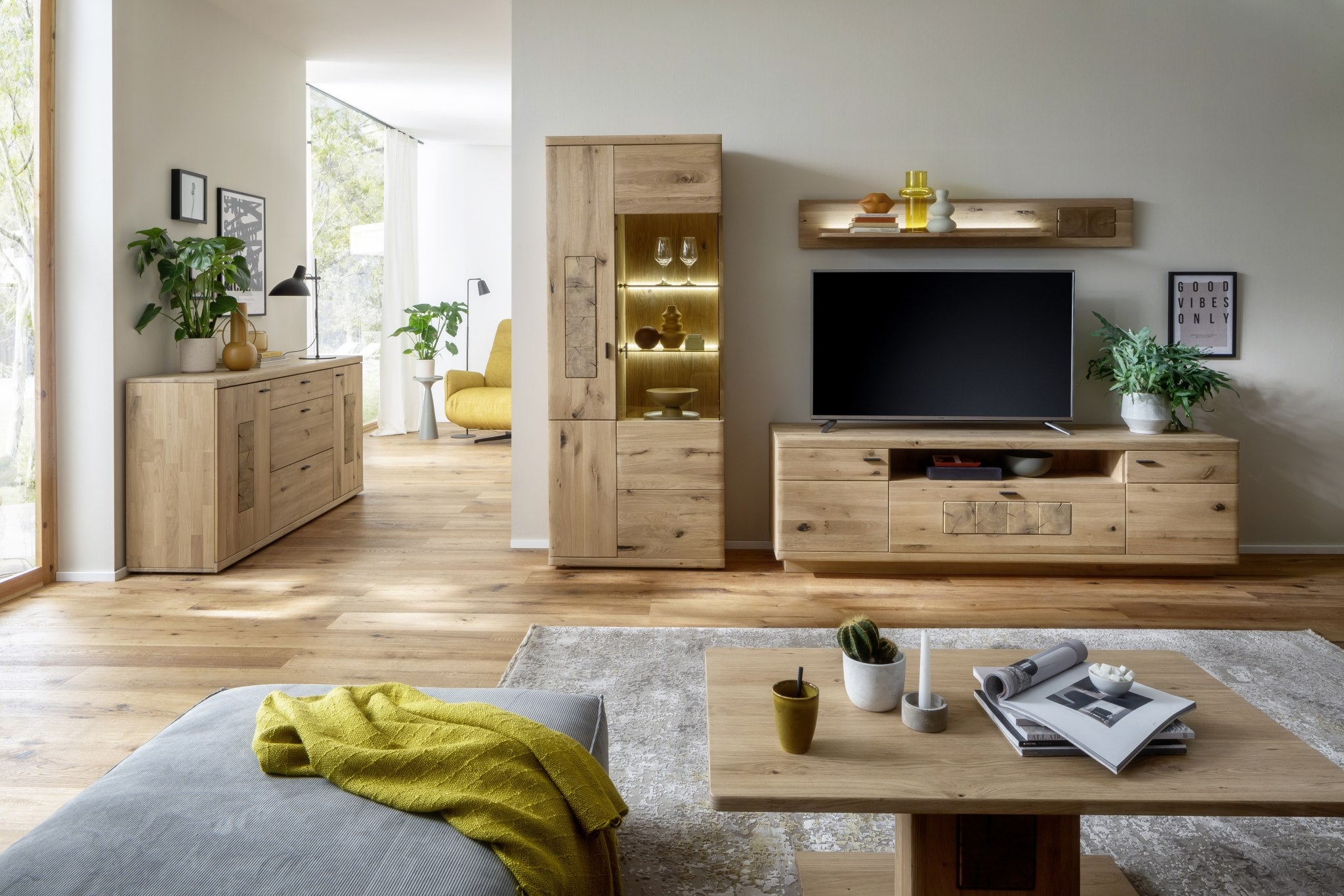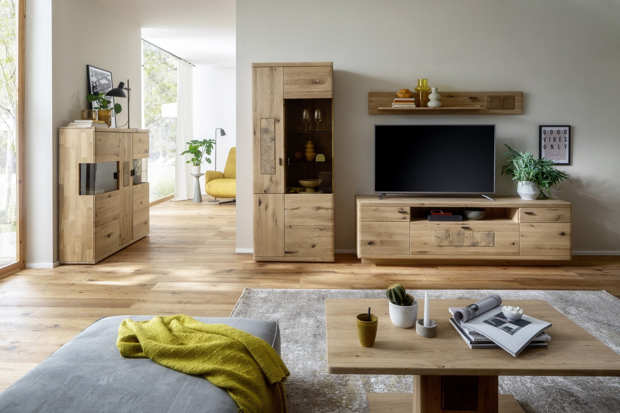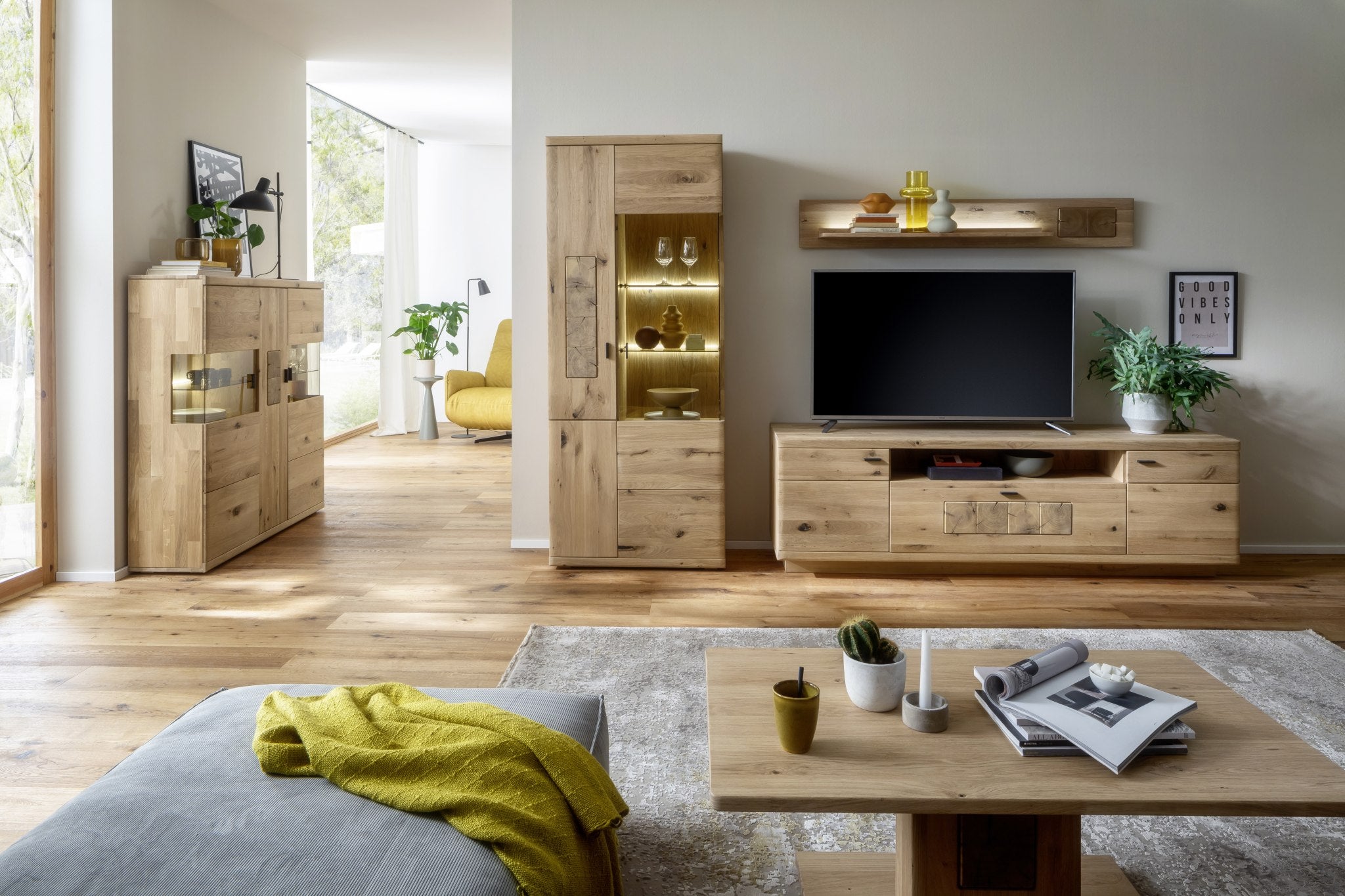 - Rückwand: Ast-/Balkeneiche furniert in Kristalleiche geölt