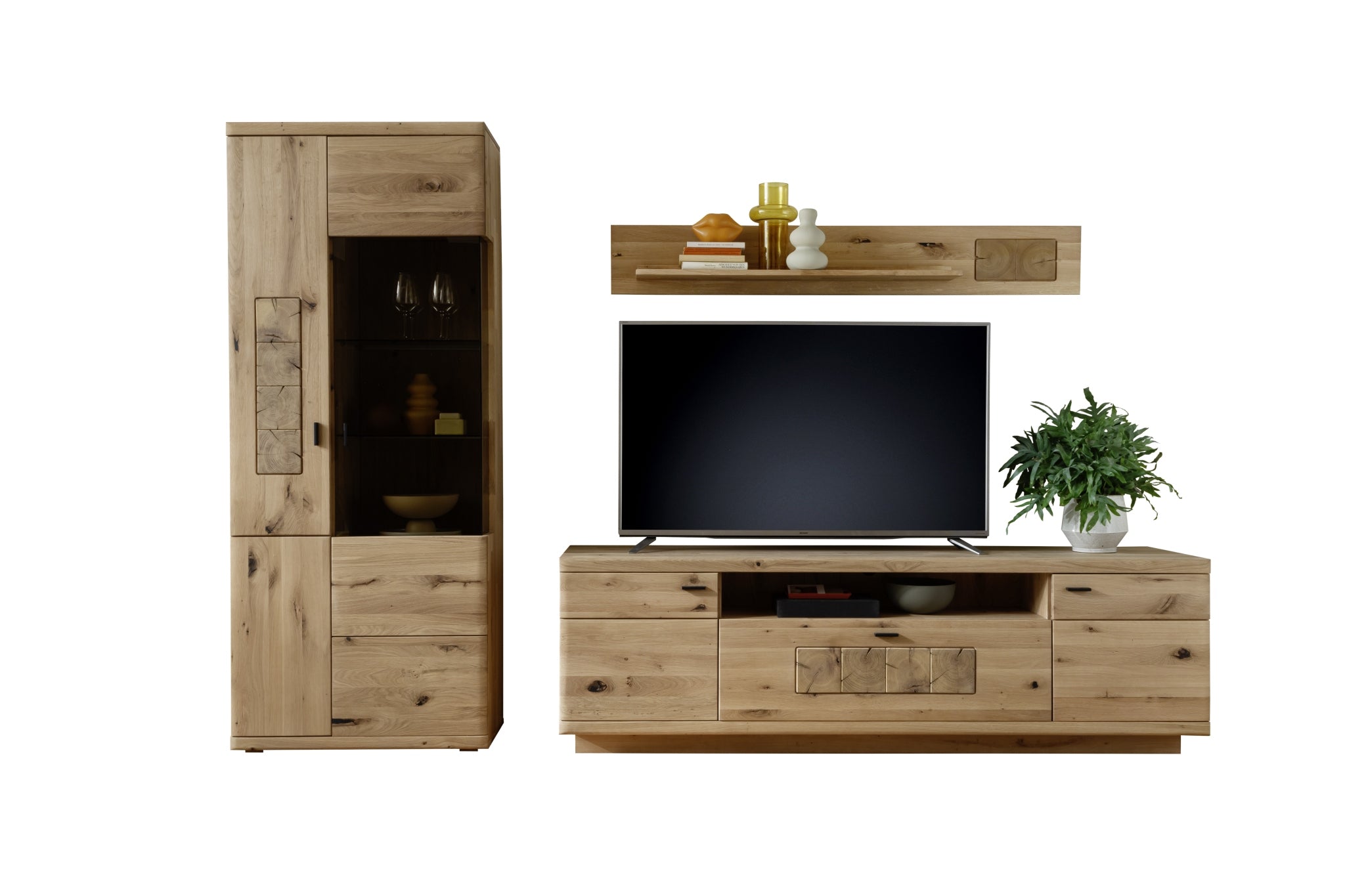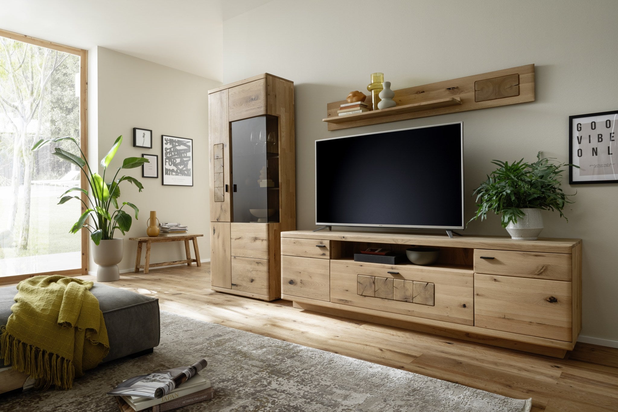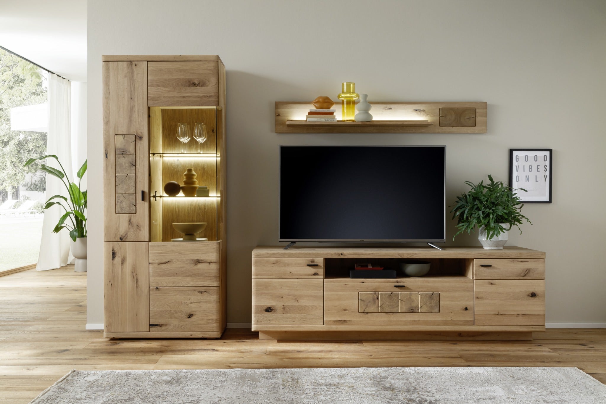 - Rückwand: Ast-/Balkeneiche furniert in Kristalleiche geölt