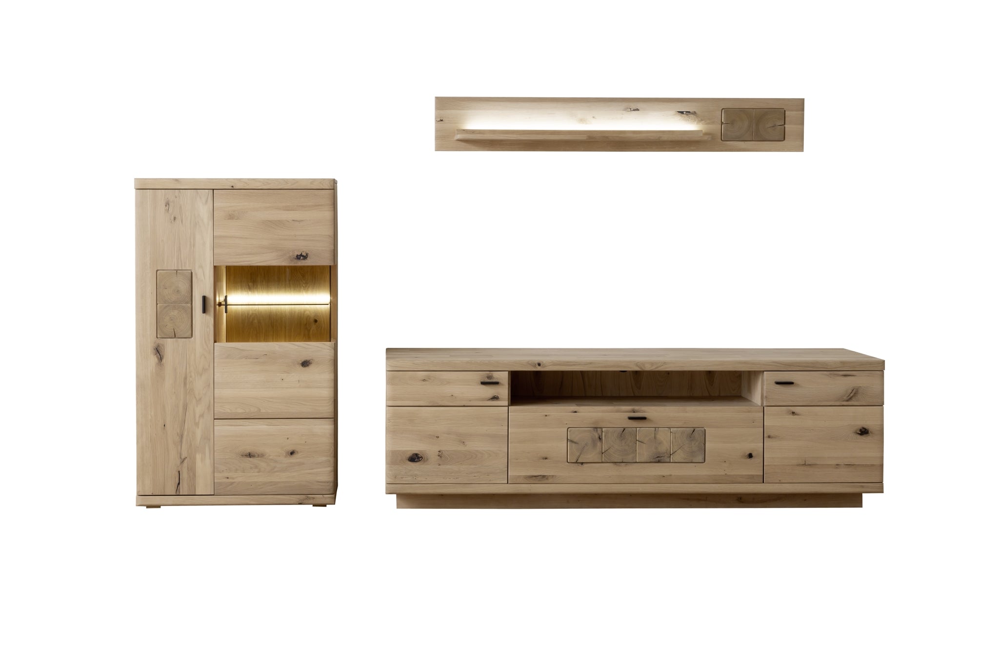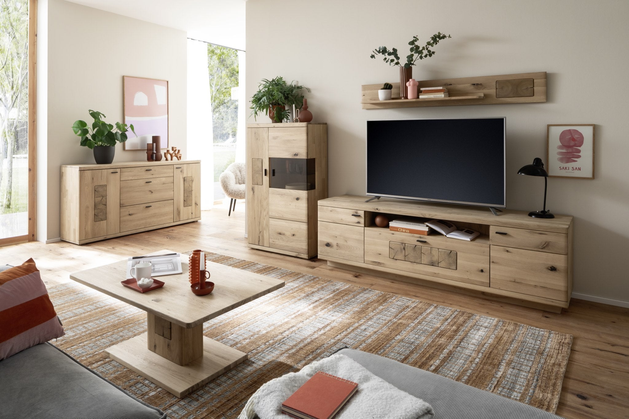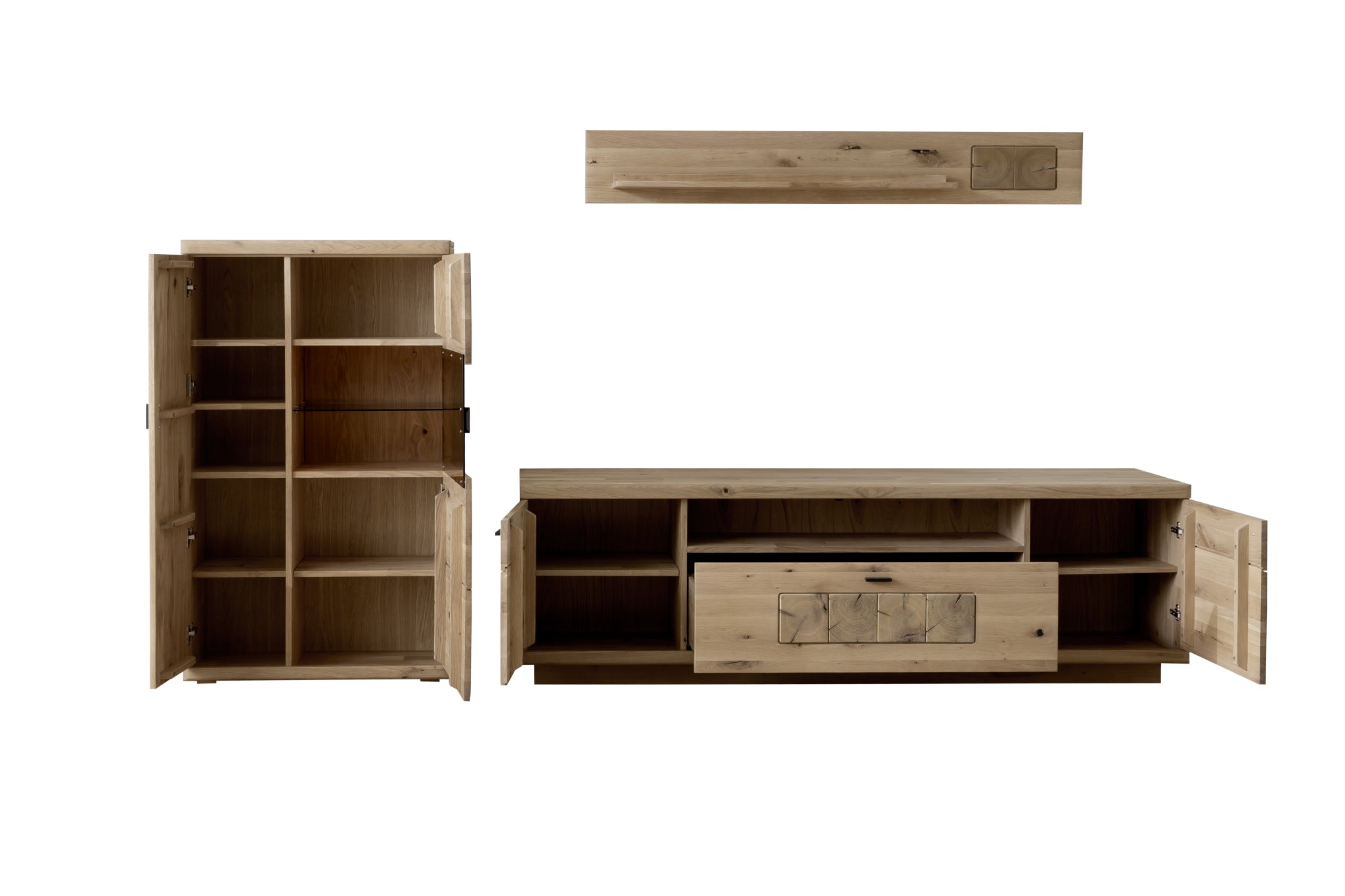 - Rückwand: Ast-/Balkeneiche furniert in Kristalleiche geölt