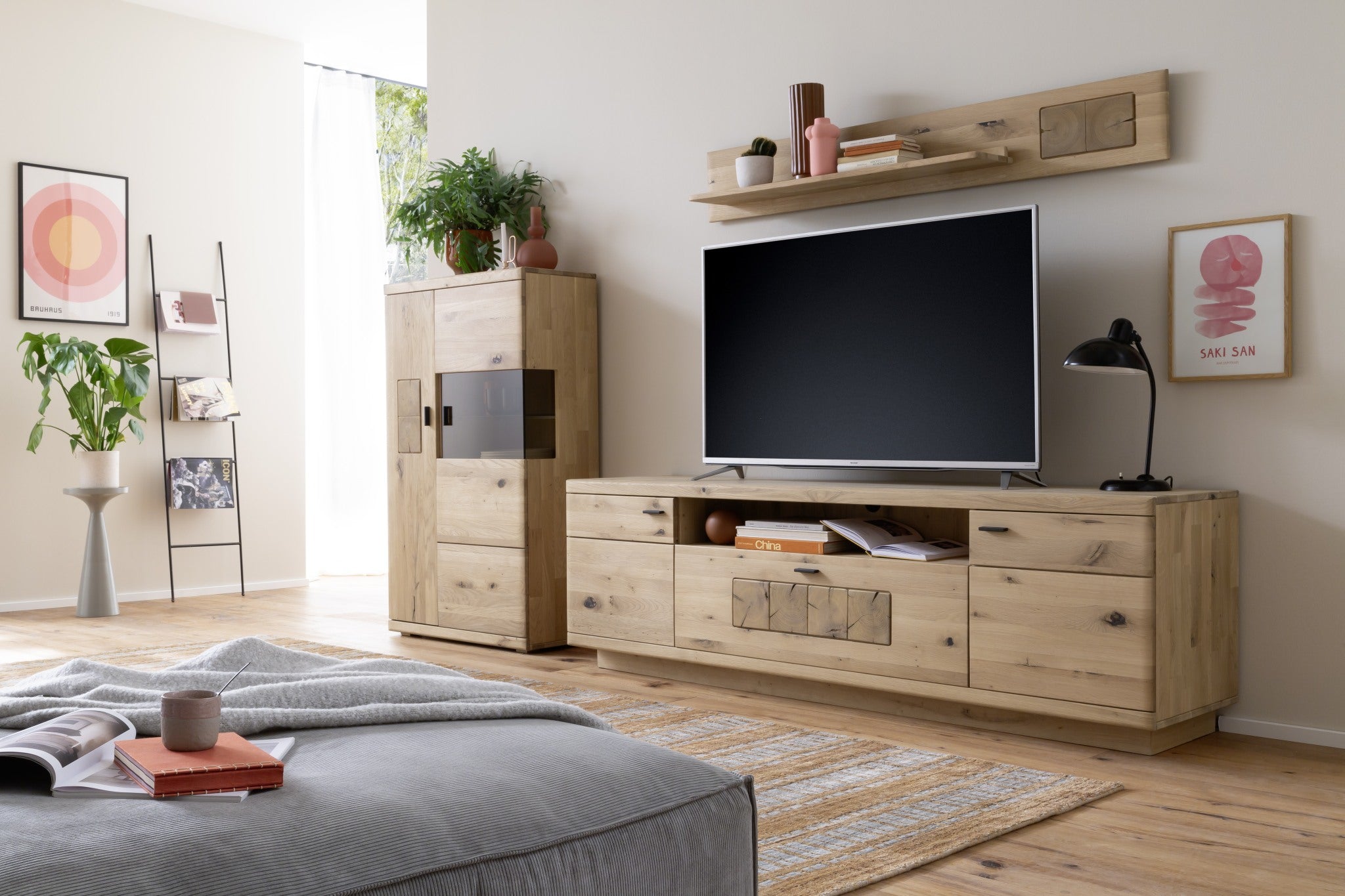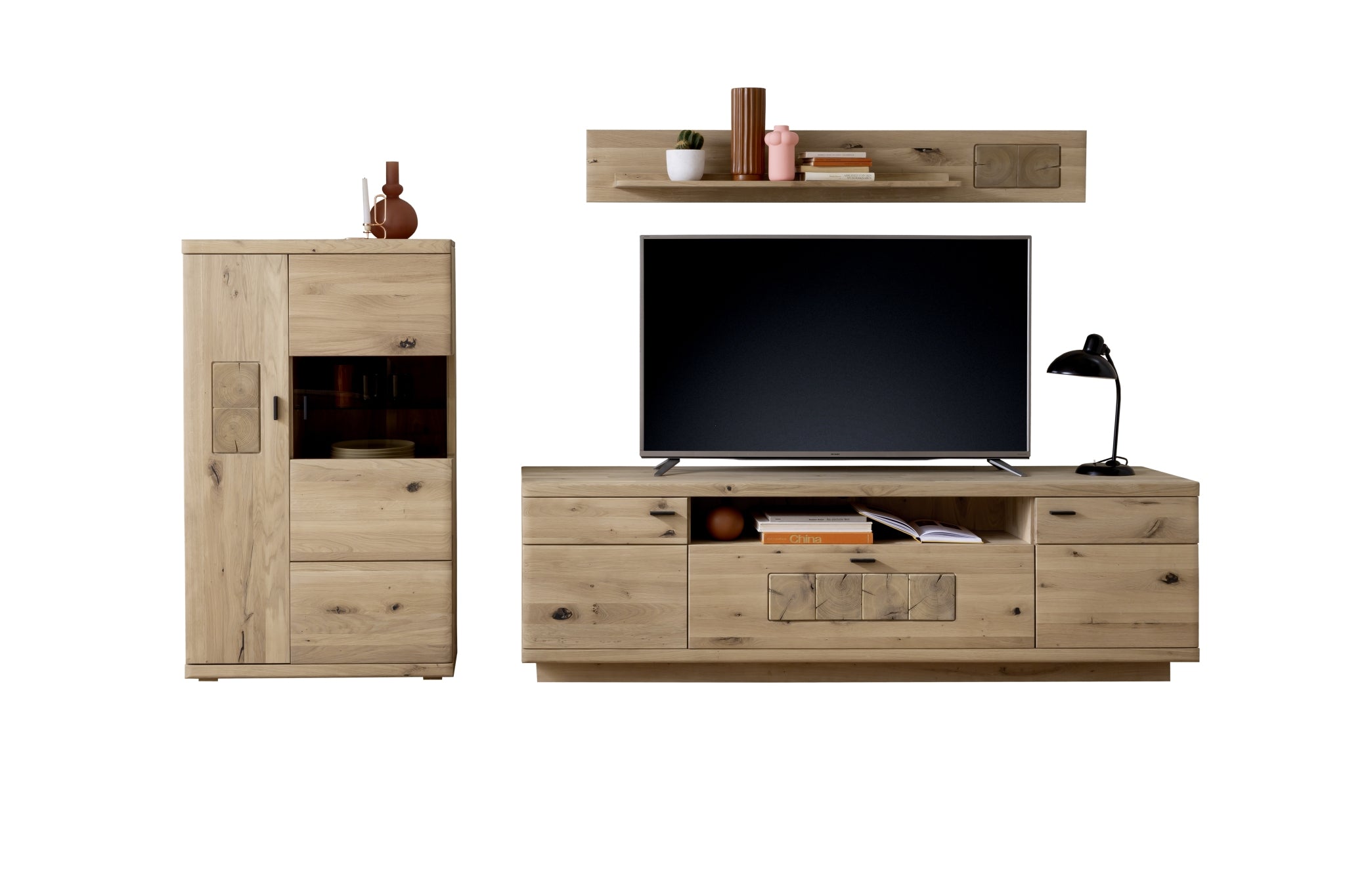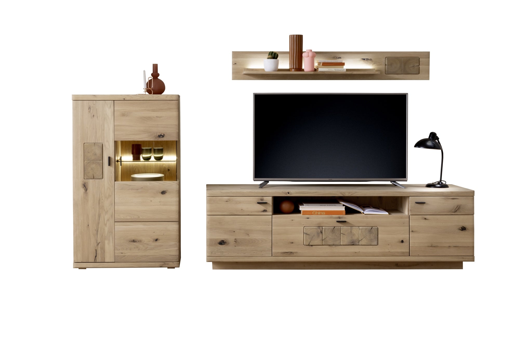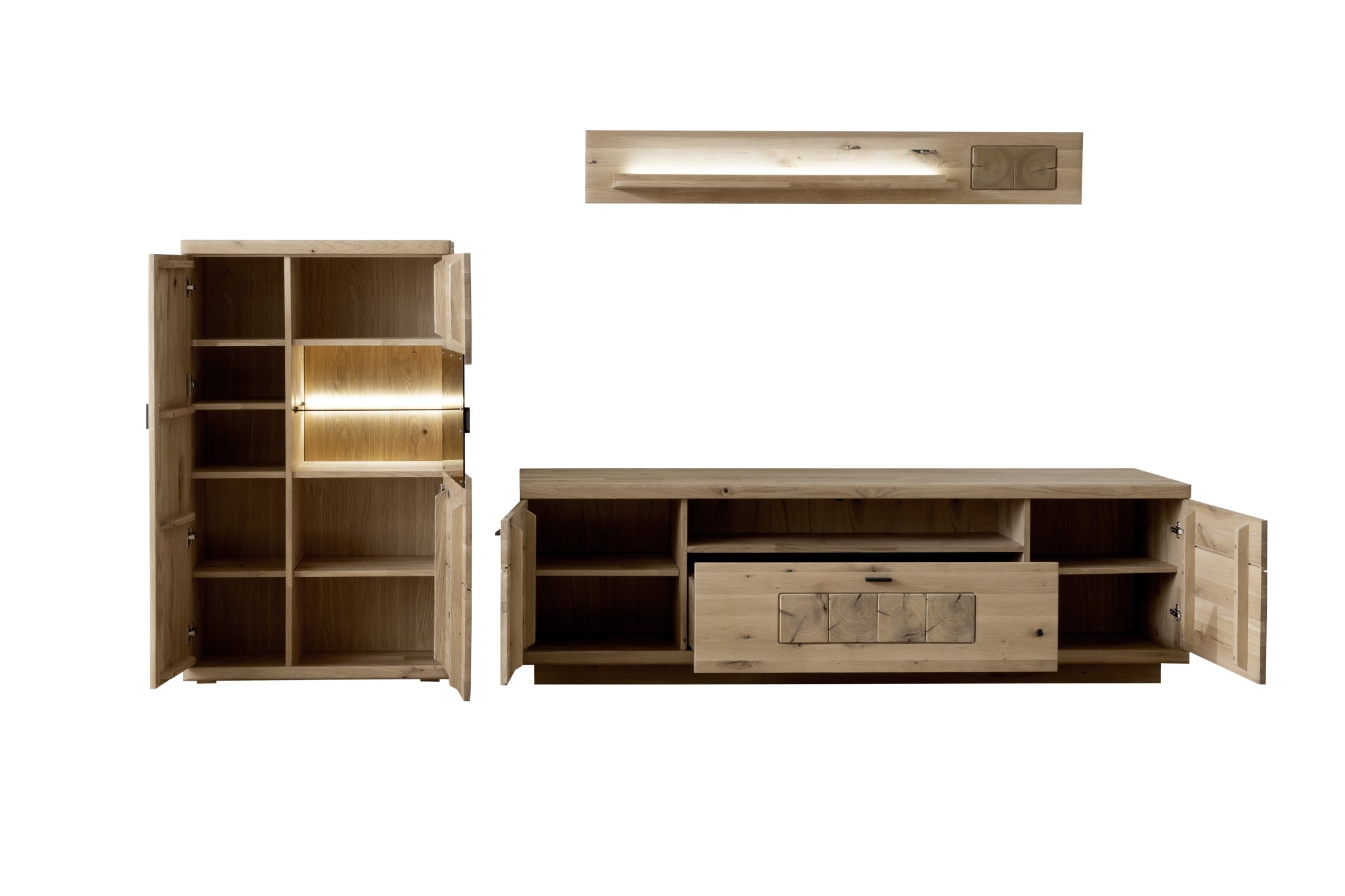 - Rückwand: Ast-/Balkeneiche furniert in Kristalleiche geölt