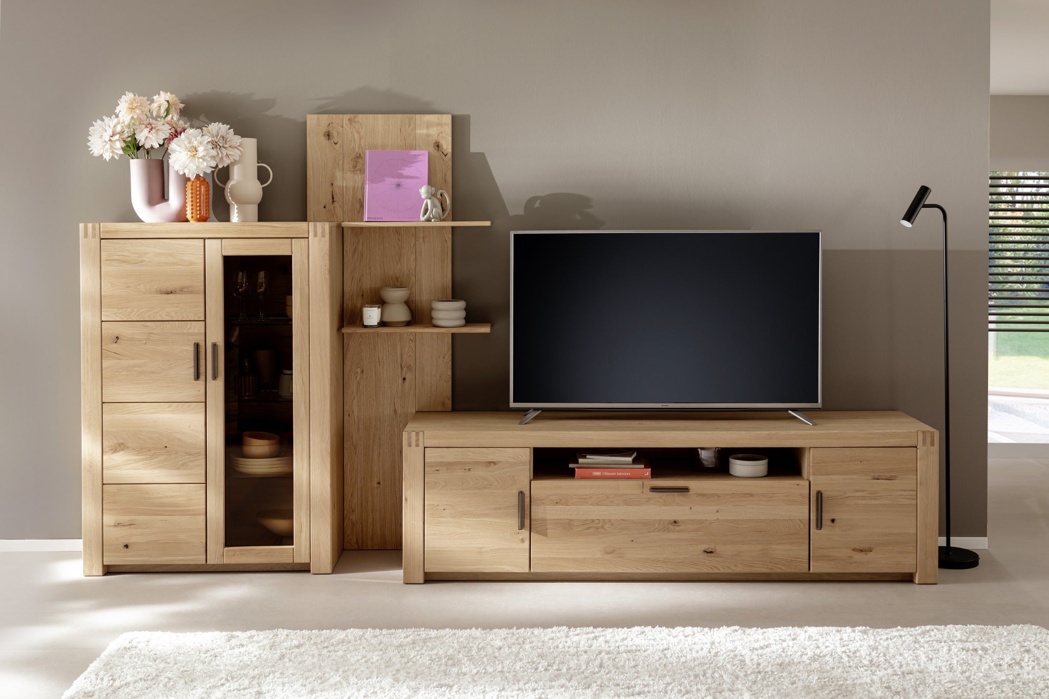 - Front: Ast-/Balkeneiche massiv durchgehende Lamelle, Kristalleiche geölt