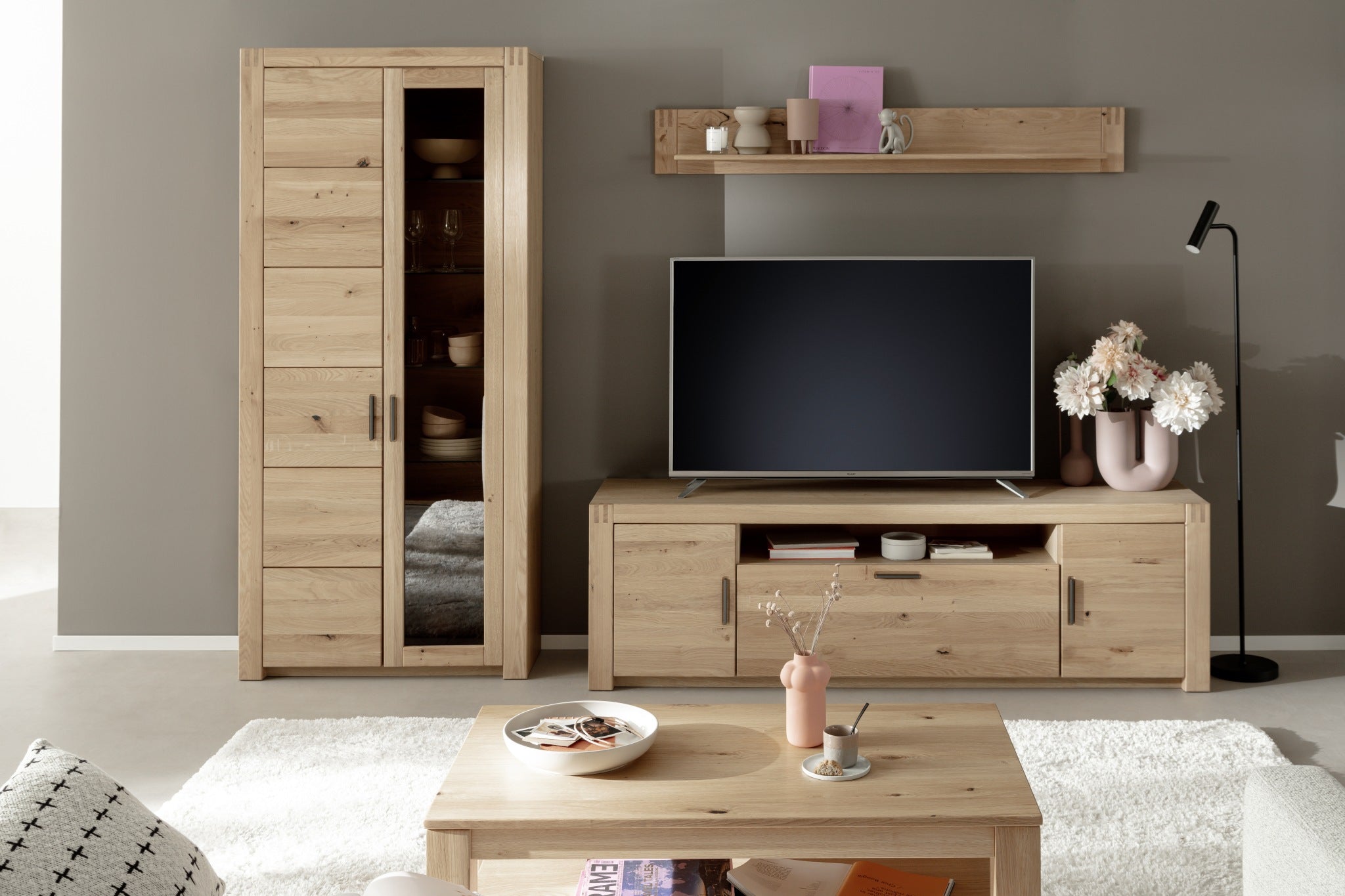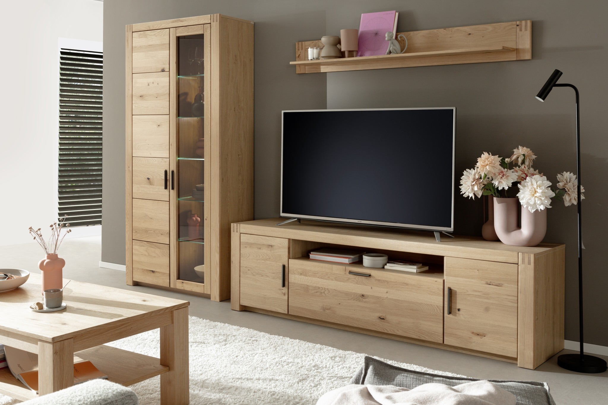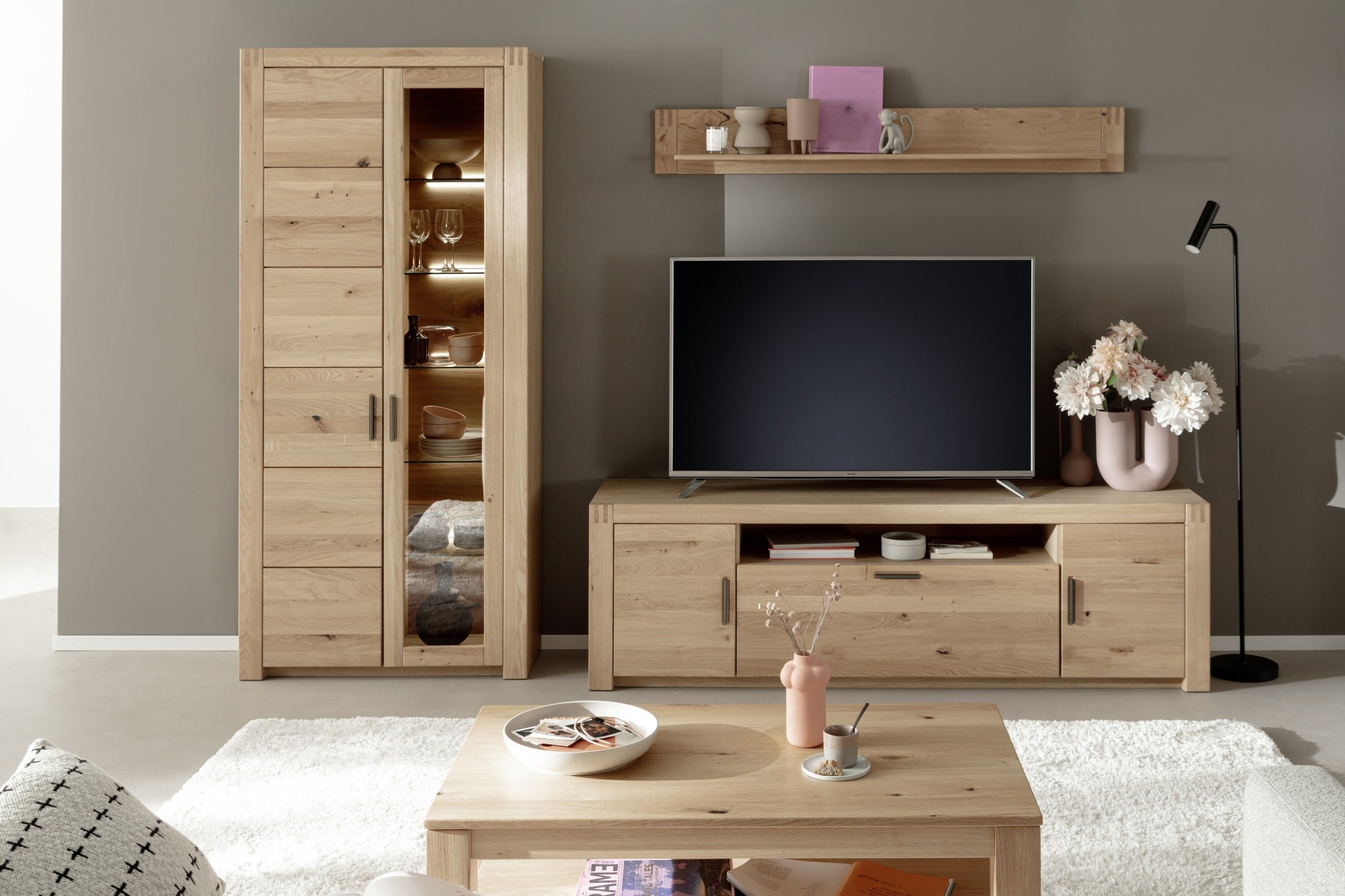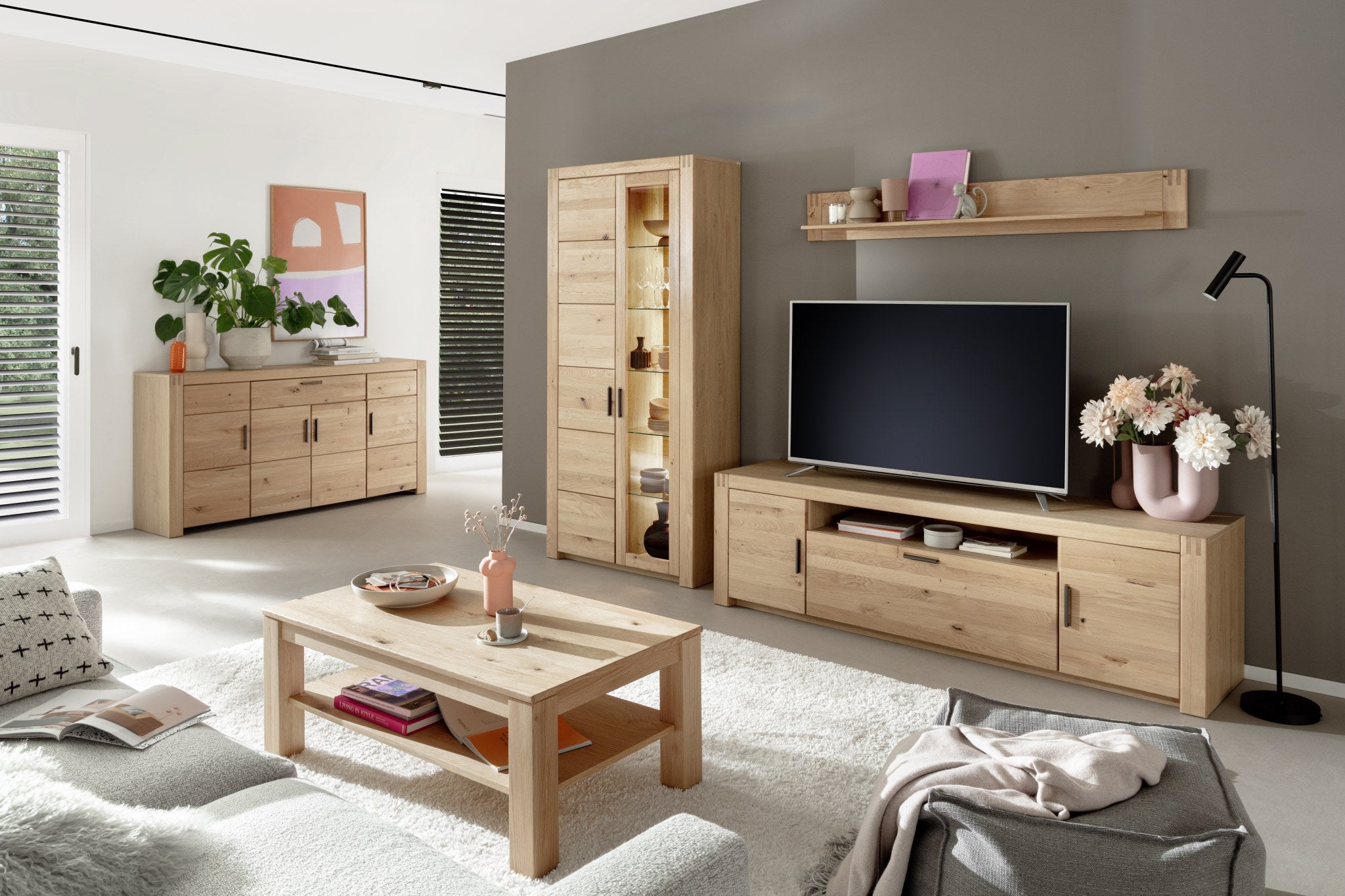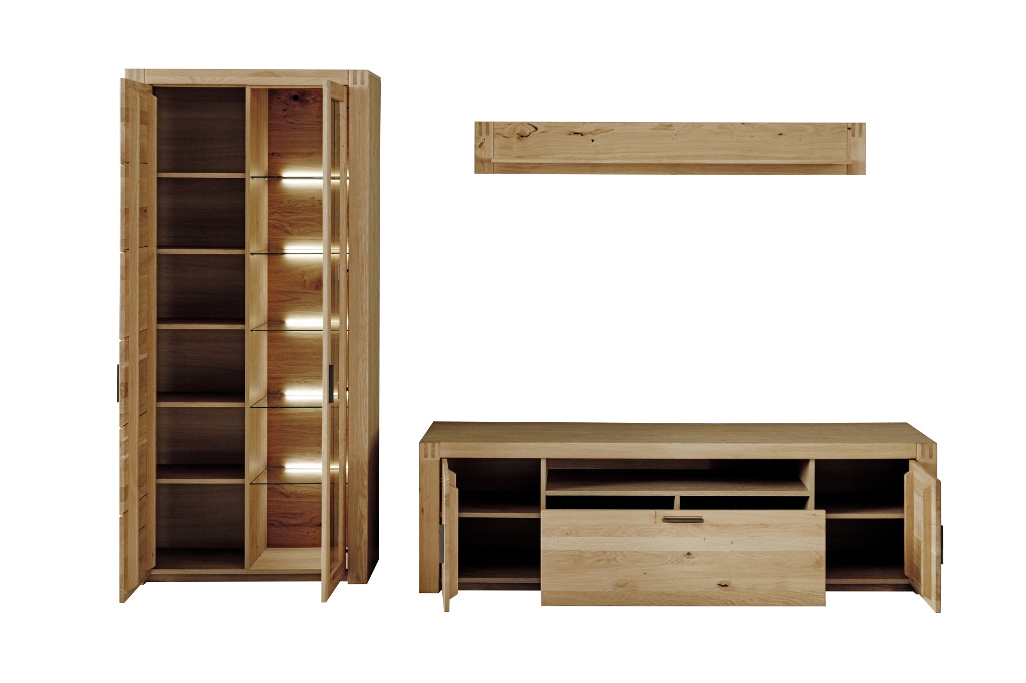 - Front: Ast-/Balkeneiche massiv durchgehende Lamelle, Kristalleiche geölt
