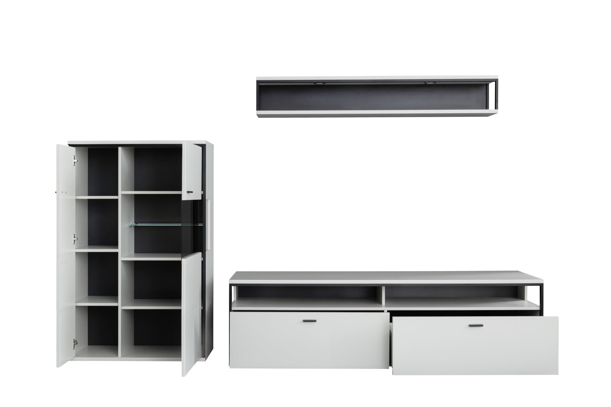 hinter Türen und Schubkästen: Eiche Bianco Nachbildung - Metallrahmen & Metallböden: schwarzgrau