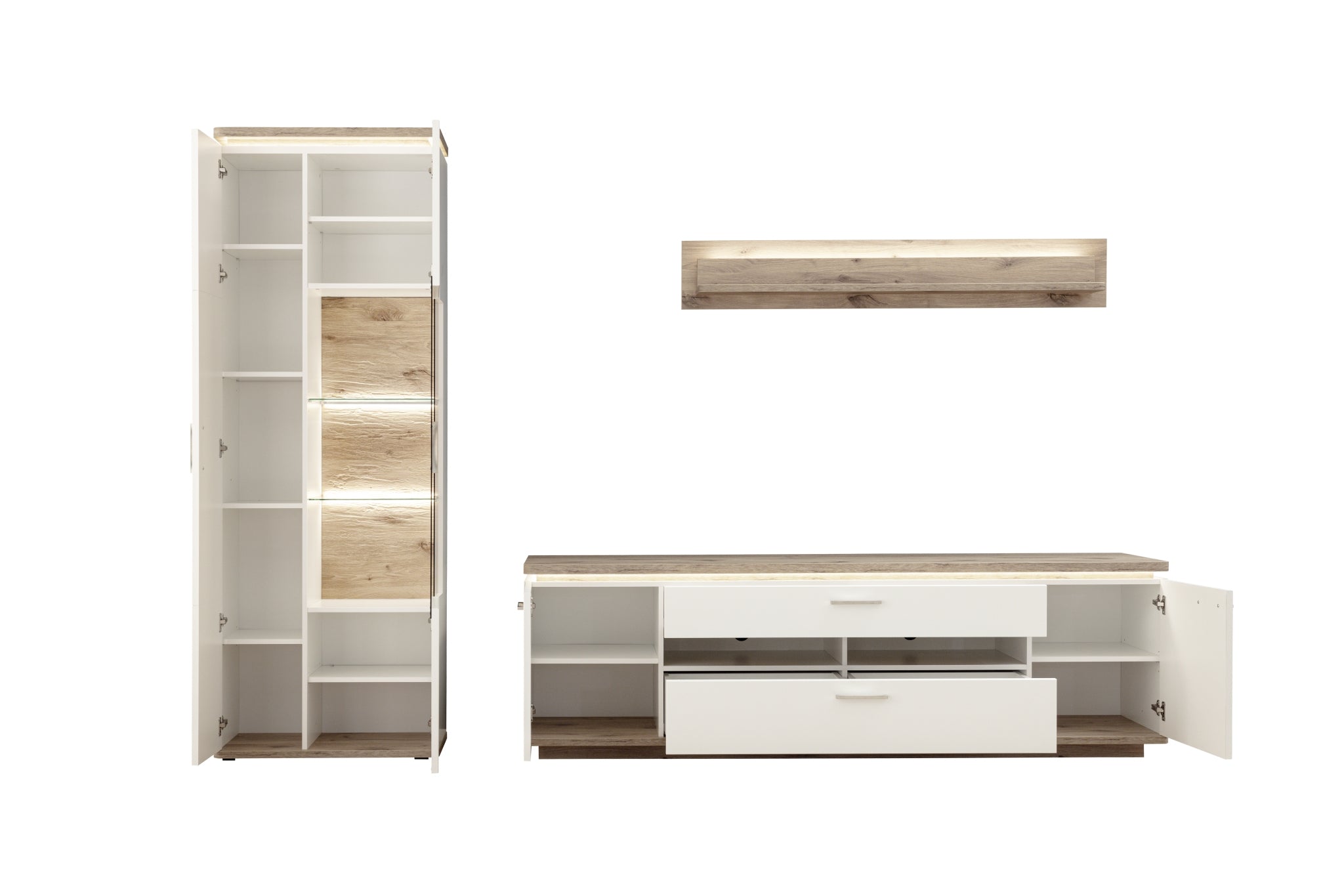 - Korpus: außen: Eiche Bianco furniert, geölt innen: Eiche Bianco Dekor Nachbildung