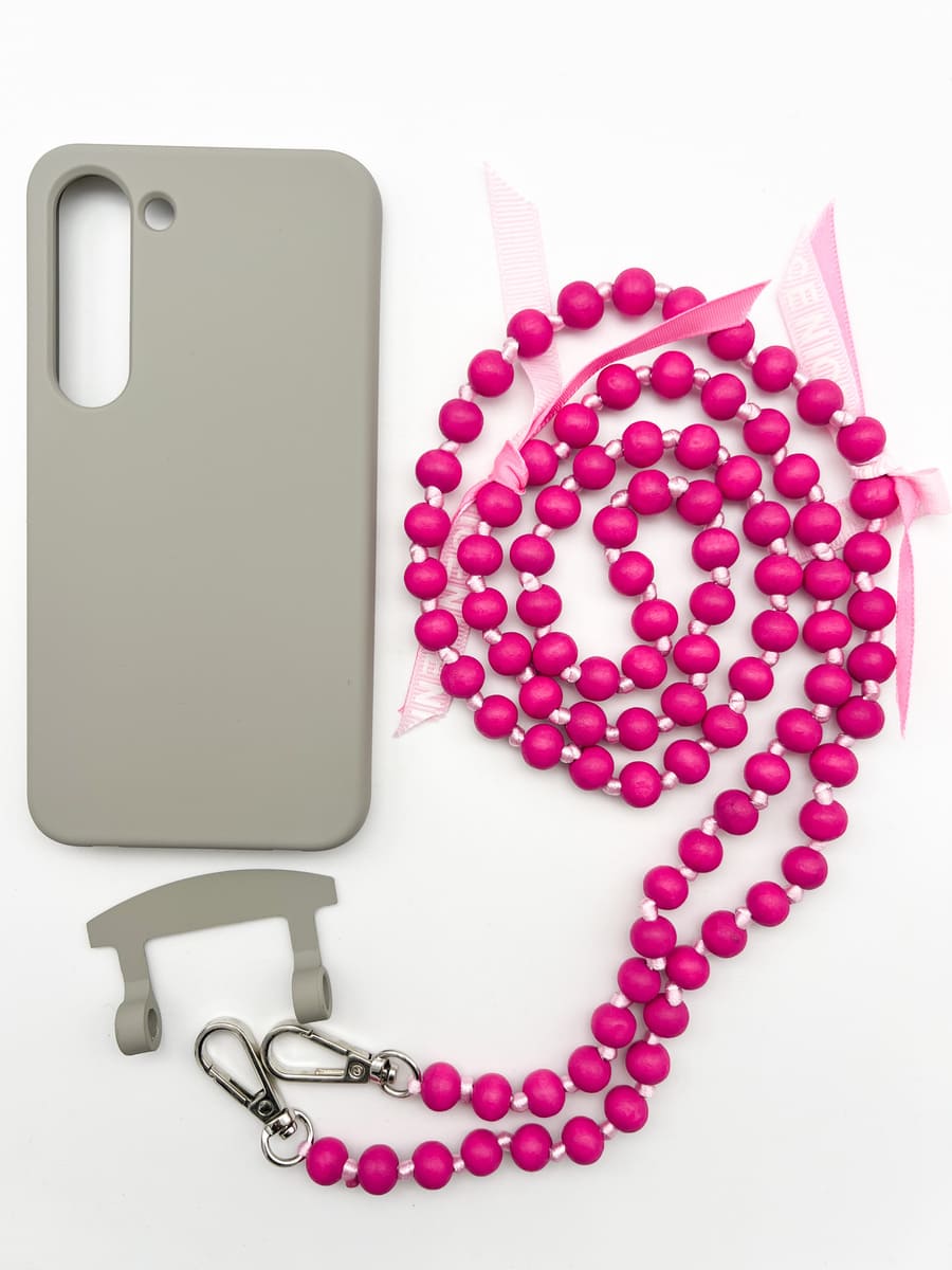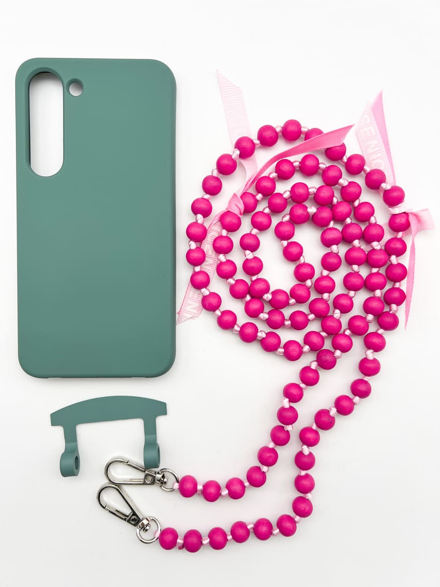 MOU MOU MUNICH macht Schluss mit dem Einheitslook der Handyketten! Ein Handgriff und Ihr entscheidet zwischen schlichter Kordel, coolem Gurt oder stylischer Holzperlenkette! Dank des modularen Designs kann die MOU MOU MUNICH IBIZA Handykette mit 2in1 Hülle mit einem Griff entweder als Necklace Case oder ohne Kordel als Schutzhülle verwendet werden.INDIVIDUELL GESTALTBAR dank der zusätzlichen Kordel BESTER SCHUTZ für das Handy durch die hochwertige und stoßfeste Hülle. Sie ist angenehm weich und liegt dennoch super in der Hand. Kompatibel mit Wireless Charging FREIE HÄNDE und Dein Handy ist dennoch stets griffbereit. Ist Euer Handymodell nicht dabei? Schreibt uns eine Mail an Maße & Material: Farbe Handyhülle: schwarz Für Samsung Modelle Kordel: hochwertiges Paracord Holzperlenkette aus 10 mm Holzperlen Länge Kordel(verstellbar): bis 160 cm Länge Holzperlenkette: ca. 115 cm Lieferumfang: Handyhülle + Kordel + Holzkette Bitte beachten: Die Schleifchen sind recht lose angebracht, damit man sie leicht entfernen kann. Solltet ihr euch für die Schleifchen entscheiden, empfehlen wir sie nochmal fest zu verknoten Die Kette wird mit der Zeit durch das Gewicht des Handys länger. Sie kann auch vorsichtig in die Länge gezogen werden um sie zu verlängern Die Farbe und das Design der Schleifchen kann von der Abbildung abweichen