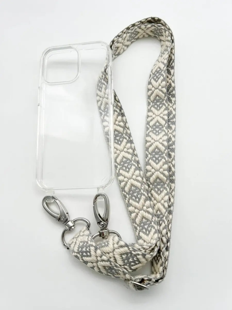 MOU MOU MUNICH macht Schluss mit dem Einheitslook der Handyketten! Ein Handgriff und Ihr entscheidet zwischen schlichter Kordel, coolem Gurt oder stylischer Holzperlenkette! INDIVIDUELL GESTALTBAR dank der wählbaren zusätzlichen Kette. Die Bänder sind von uns in München handgemacht und somit echte Unikate! BESTER SCHUTZ für das Handy durch die hochwertige und stoßfeste Hülle. Sie ist angenehm weich und liegt dennoch super in der Hand. Kompatibel mit Wireless Charging FREIE HÄNDE und Dein Handy ist dennoch stets griffbereit. Maße & Material: Farbe Handyhülle: transparent Für iPhone (teilweise mit MagSafe) und Samsung Galaxy Modelle Band: handgenäht aus Baumwolle/Polyester Länge Band (verstellbar): bis 140 cm, Breite 2,5 cm Lieferumfang: Handyhülle + Webband