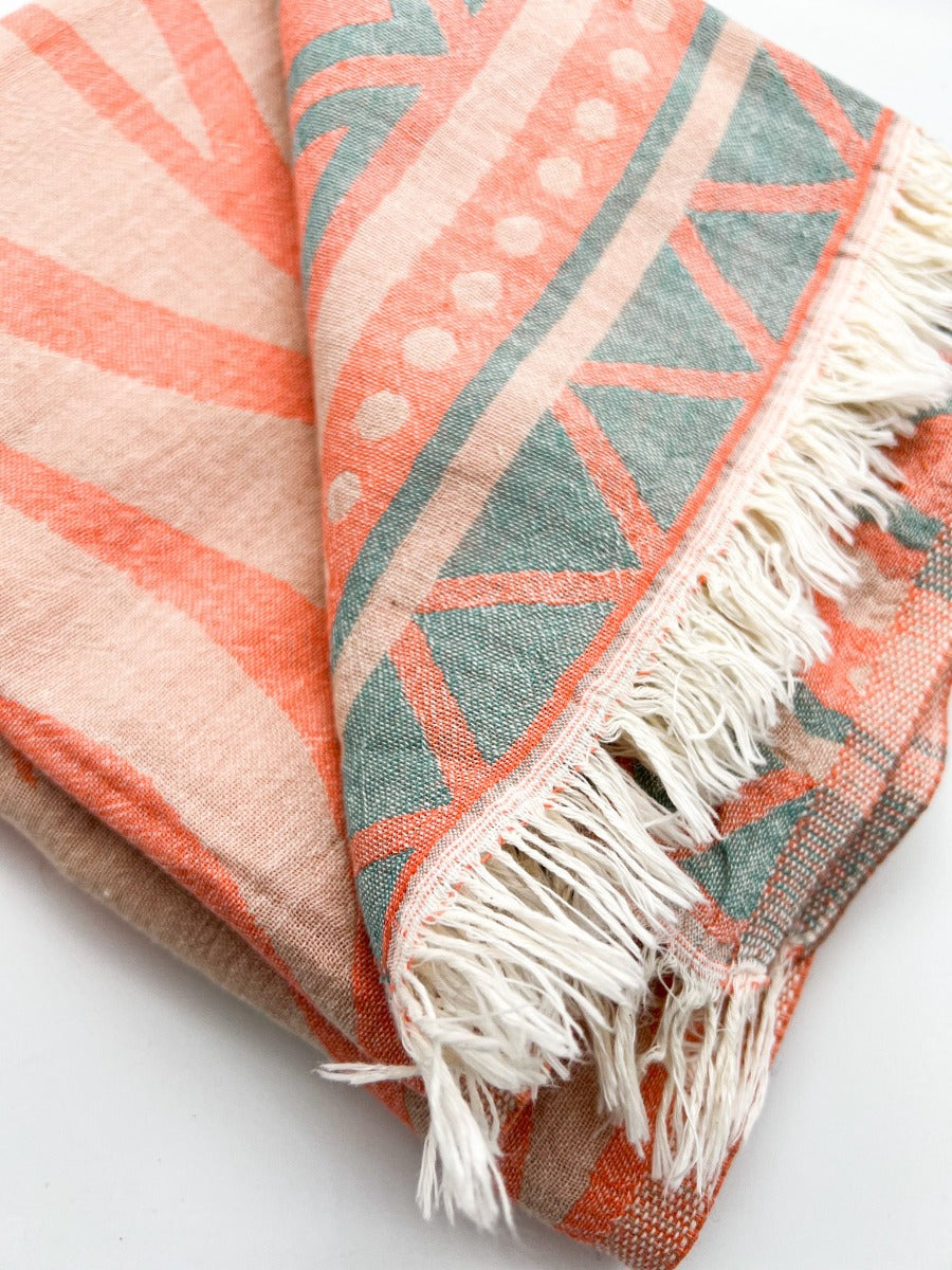 Strandtuch MILOS CORAL & EUCALIPTUS & BEIGE